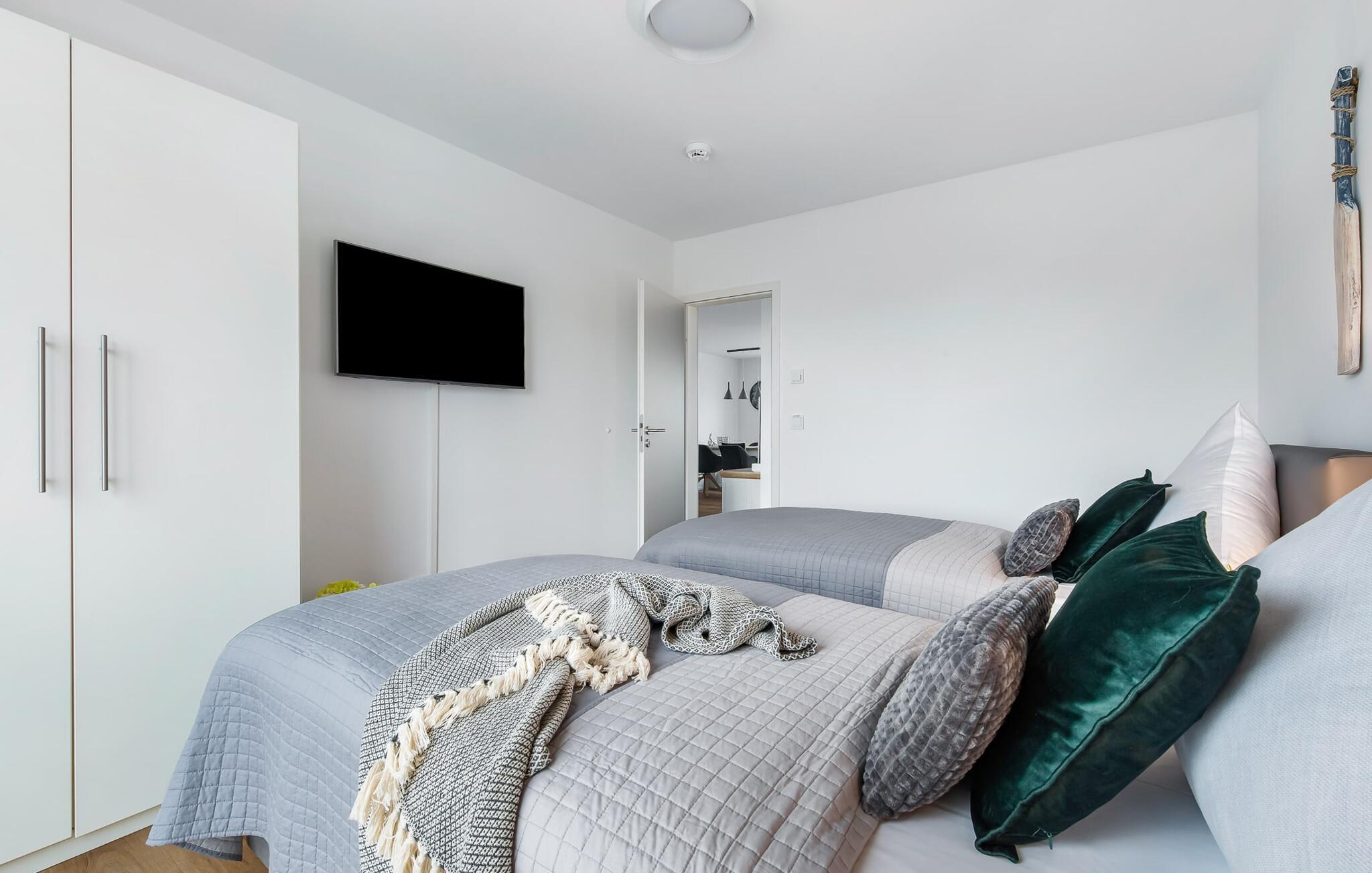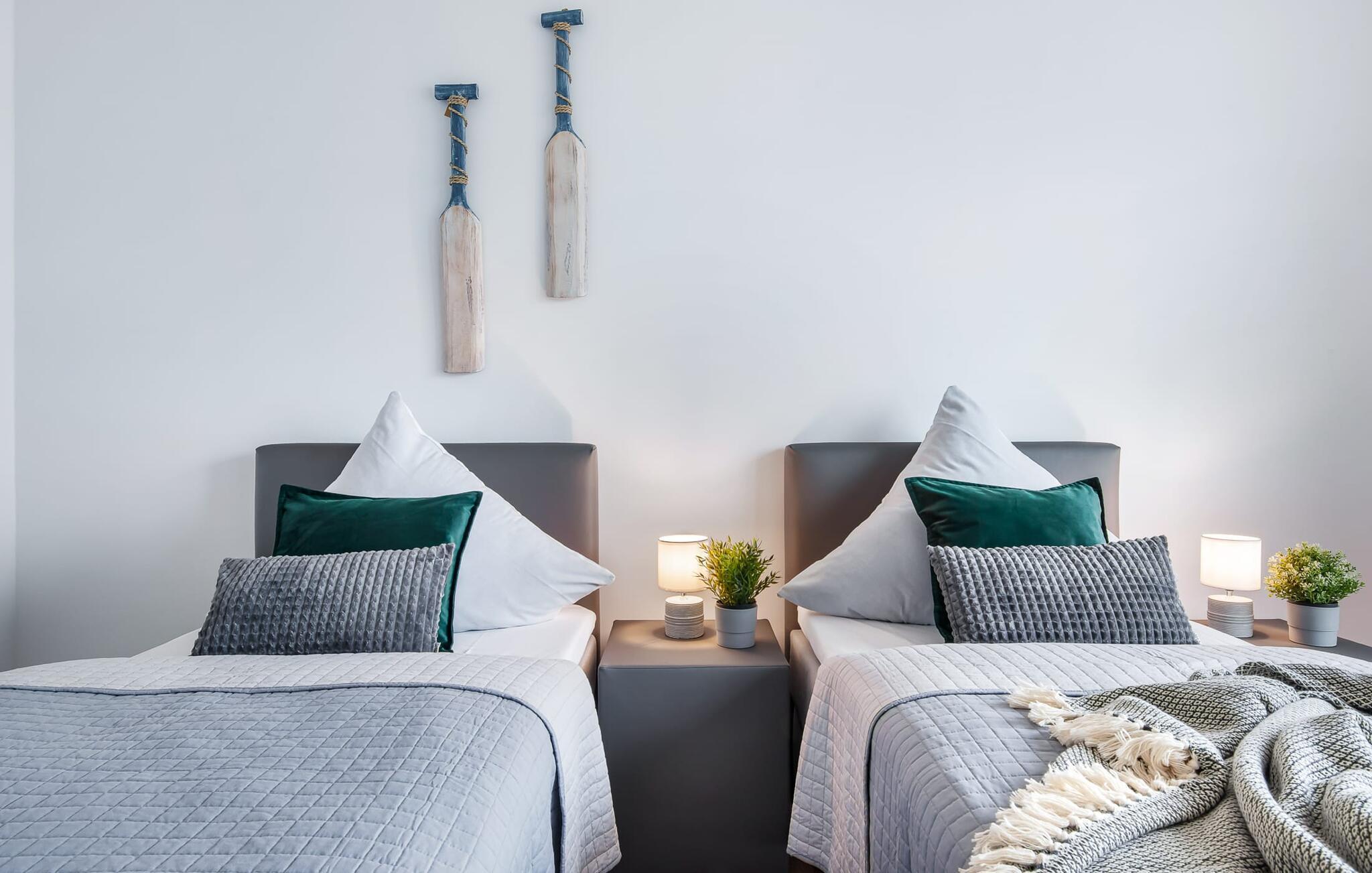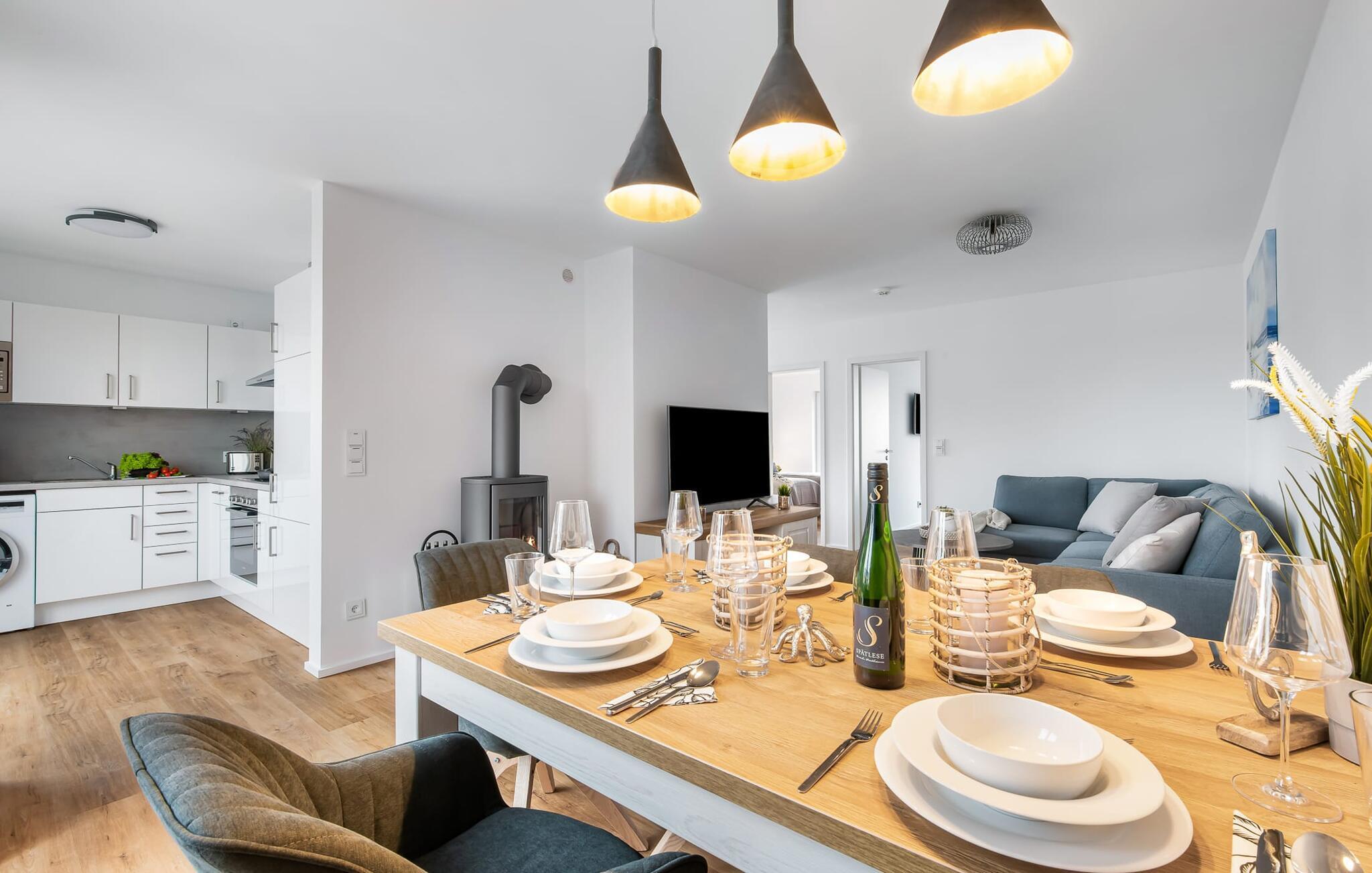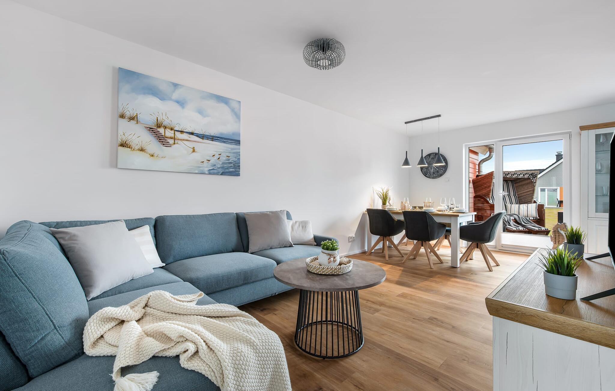 Ferie-halvt dobbelthus WIEDEBLICK imponerer med sin umiddelbare nærhed til stranden og Østersøen og er et lille paradis for op til fem personer. Sandstranden Weidefelder med strandstole, en kiosk og en restaurant ligger inden for gåafstand. Feriestunder for hele familien og ikke kun om sommeren! Minigolfbanen med maritimt tema ligger også i umiddelbar nærhed. WIEDEBLICK er designet i en maritim indretningsstil og smelter dermed sammen med sit holstenske, nedertyske navn, Weiter Blick. En gulv-til-loft vinduesfront i den åbne stue/alrum og køkken lader alt skinne i skarpt lys og indretningen emmer af hygge. Den komfortable sofa kan omdannes til en soveplads for én person på ingen tid overhovedet, og pejsen og magenta-tv sikrer en hygge-pause selv i den køligere sæson. Madlavning er en fornøjelse i det veludstyrede køkken, og at spise den tilberedte mad på den tilstødende terrasse er dobbelt så behageligt. En anden terrasse er placeret lige ved siden af husets indgang og sol er garanteret hele dagen lang. Begge soveværelser er indrettet med tv og boksmadrasser. I har valget mellem en dobbeltseng eller to enkeltsenge. Uanset hvad I vælger, vil I sove godt i begge. Badeværelset med brusebad i gulvniveau og infrarød kabine lader intet tilbage at ønske. Wellness elskere kan slappe vidunderligt af, hvad enten det er efter en dag på stranden eller efter en lang gåtur i dårligt vejr. Parkeringspladsen lige foran huset sikrer også feriekomfort. Det aflåselige cykelskur er også ideelt, da det kan rumme mere end bare cykler. Og for virkelig at nyde WIEDEBLICKEN, bør I også planlægge en cykeltur i dette smukke område. Vores favoritsted: en lang gåtur på Weidefelder Strand, uanset hvornår på året... Bemærk venligst: OstseeResort Olpenitz er meget populært, og der bygges fortsat i parken. Ikke desto mindre kan I se frem til en 5-stjernet standard og et førsteklasses ophold. Byggeaktiviteterne kommer ikke til at forstyrre jer på ferien, og derfor gives der ikke yderligere afslag i prisen.