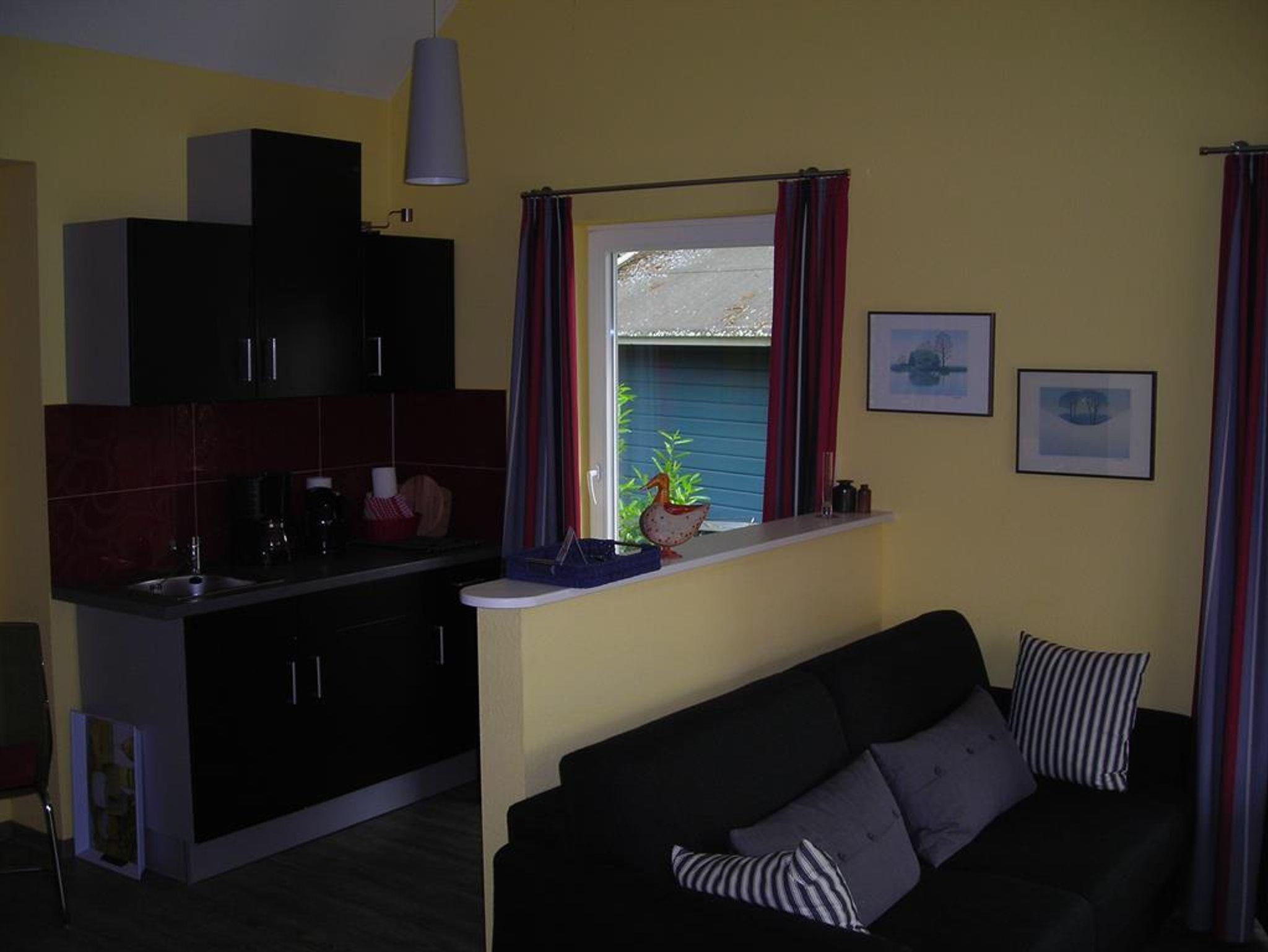 Hochwertige Komfort-Ferienwohnung mit 3 Sternen. Sie verfügt über einen separaten Eingang, eine Terrasse und einen Grillplatz am Gartenteich. Neben dem Eingang befindet sich das Badezimmer mit begehbarer Dusche. Links kommen Sie zur Küche mit Sitzgelegenheiten. Die Küchenzeile und der Wohnbereich sind mit einem Tresen abgetrennt. Neben dem Wohnbereich befindet sich das Schlafzimmer mit Doppelbett und Kleiderschrank. Sie haben direkten Blick auf die Terrasse und den Garten.