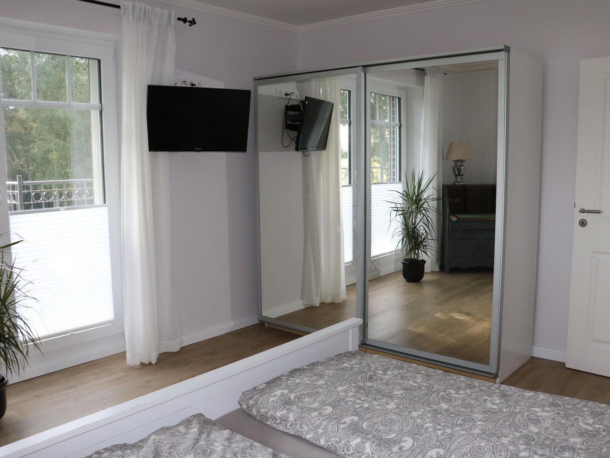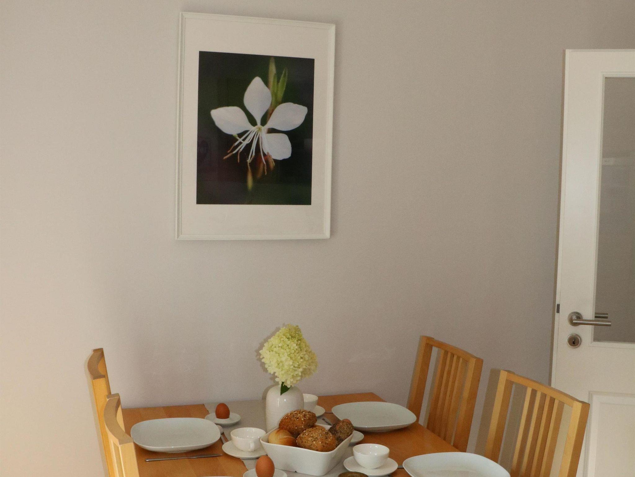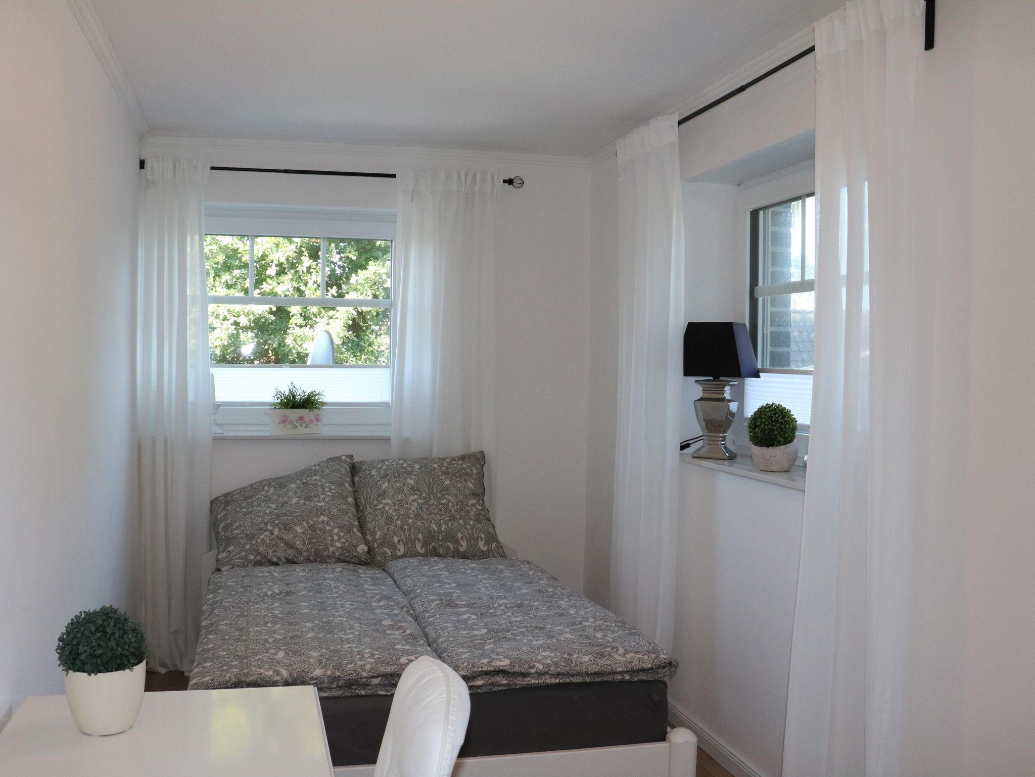 Die Ferienwohnung mit separatem Eingang wurde im Sommer 2022 neu eingerichtet und eröffnet. Sie erstreckt sich über das gesamte Obergeschoss des Zweifamilienhauses. Vom Treppenhaus gelangen Sie in den Flur und von dort aus in alle Zimmer. Seit 01.11.2025 verfügt die Wohnung über einen Anschluss an das Glasfasernetz.