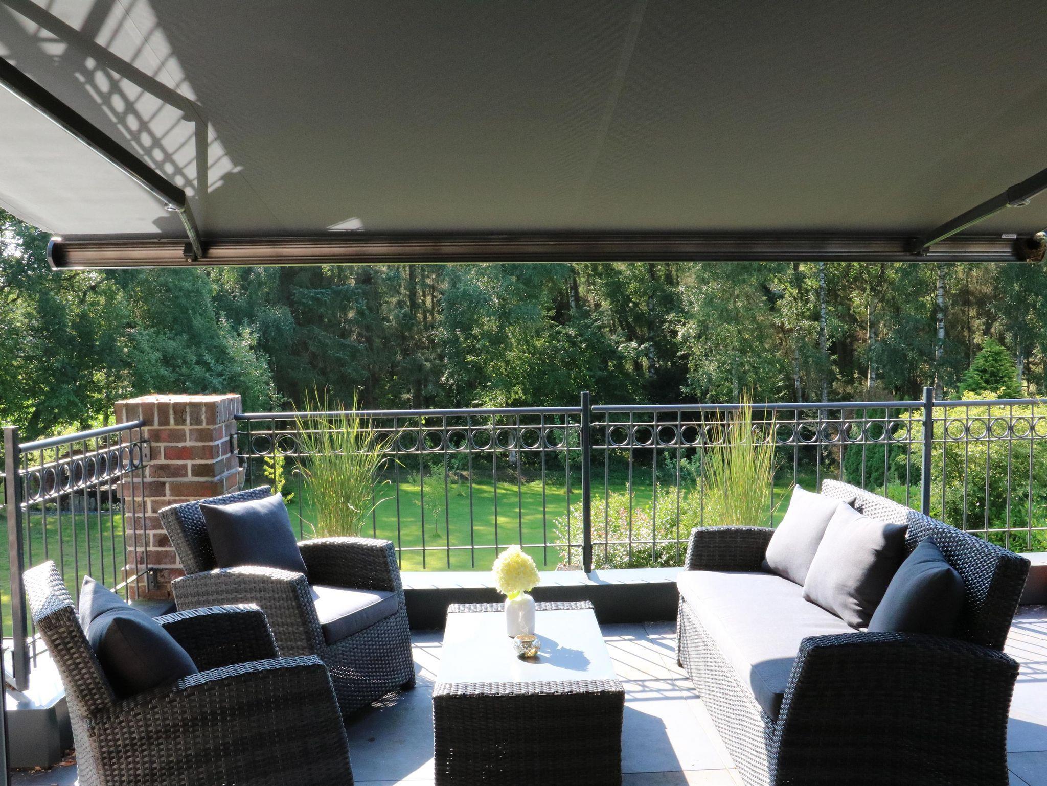 •Die Dachterrasse ist nach Süden ausgerichtet, eine elektrische Markise spendet Schatten über den gemütlichen Loungemöbeln. Bei Bedarf stellen wir