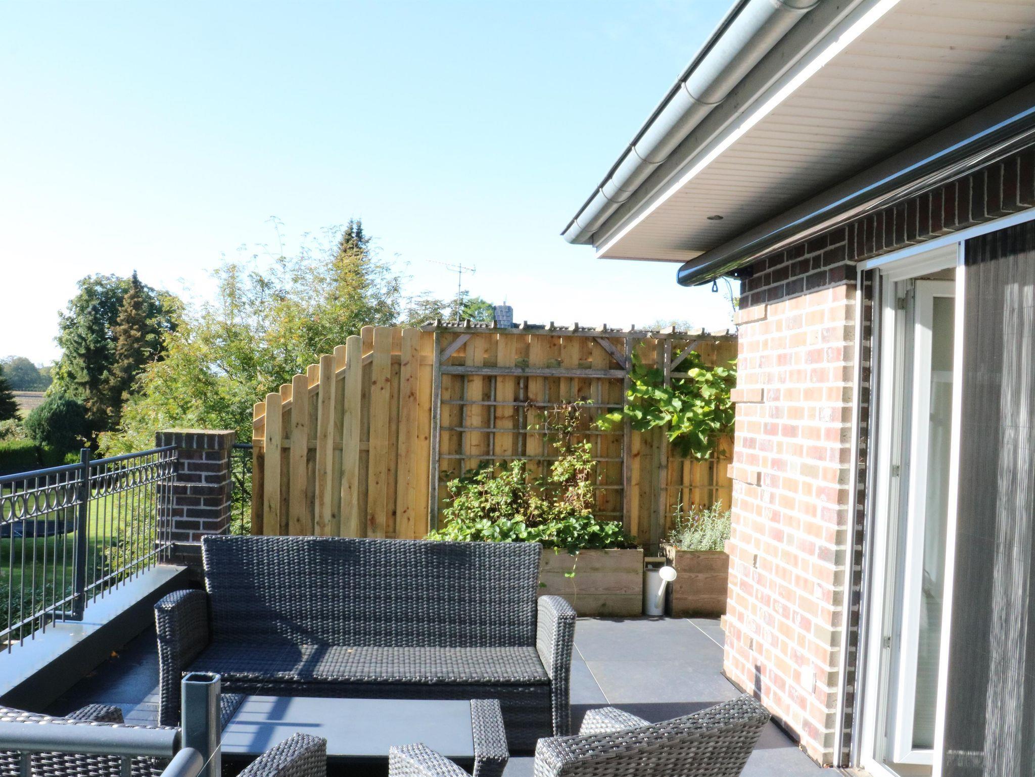 Aus Küche, Wohnzimmer und Schlafzimmer gelangen Sie direkt auf die 50 m² große Dachterrasse mit Blick auf Wald und Wiesen. Genießen Sie von dort aus in Ruhe den Sonnenaufgang, Ihren Kaffee aus dem Kaffeevollautomaten, das Vogelgezwitscher oder ein gemeinsames Essen.