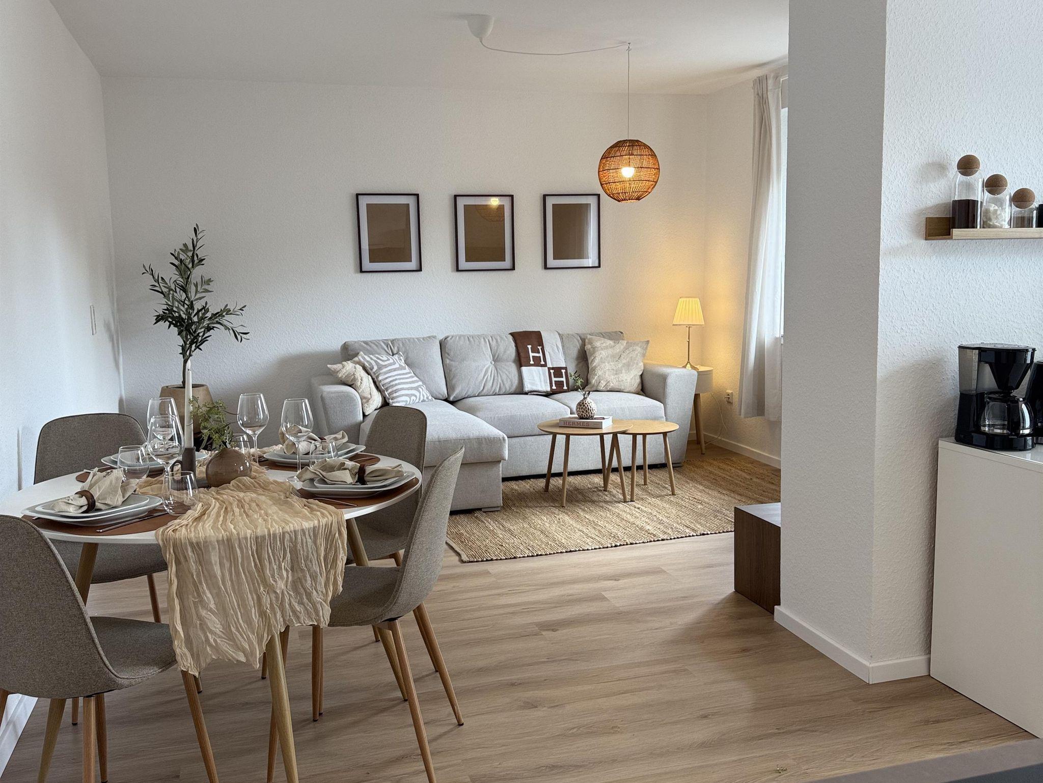 Diese stilvoll eingerichtete Ferienwohnung verbindet mediterranes Flair mit einem modernen Boho-Stil und bietet auf 65?qm ein helles, einladendes Ambiente. Ideal für Paare, kleine Familien oder Freunde.