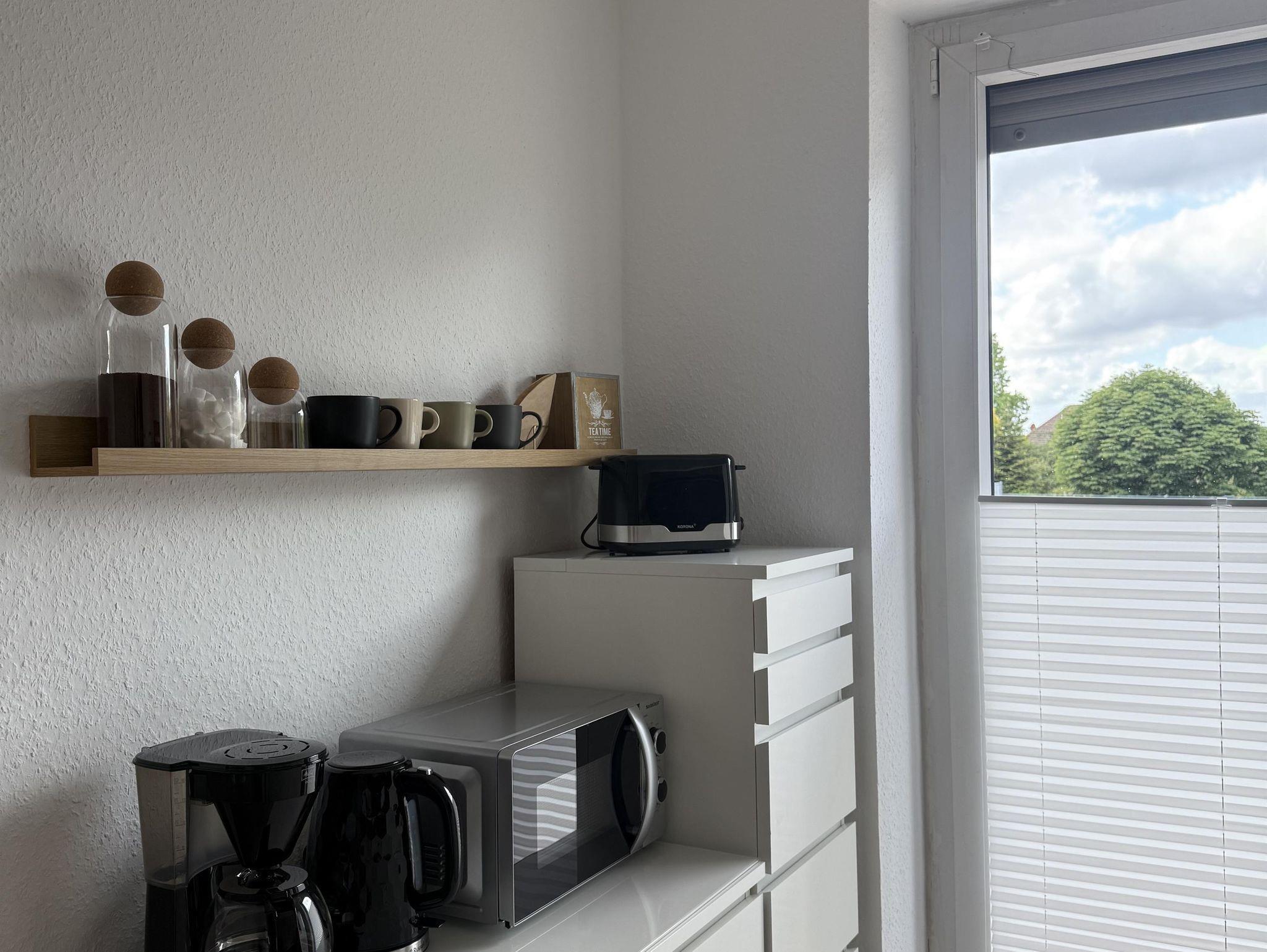 • Voll ausgestattete Küche mit: Spülmaschine, Mikrowelle, Toaster, Kaffeemaschine, Wasserkocher, Geschirr, Besteck, Kochutensilien u.?v.?m.