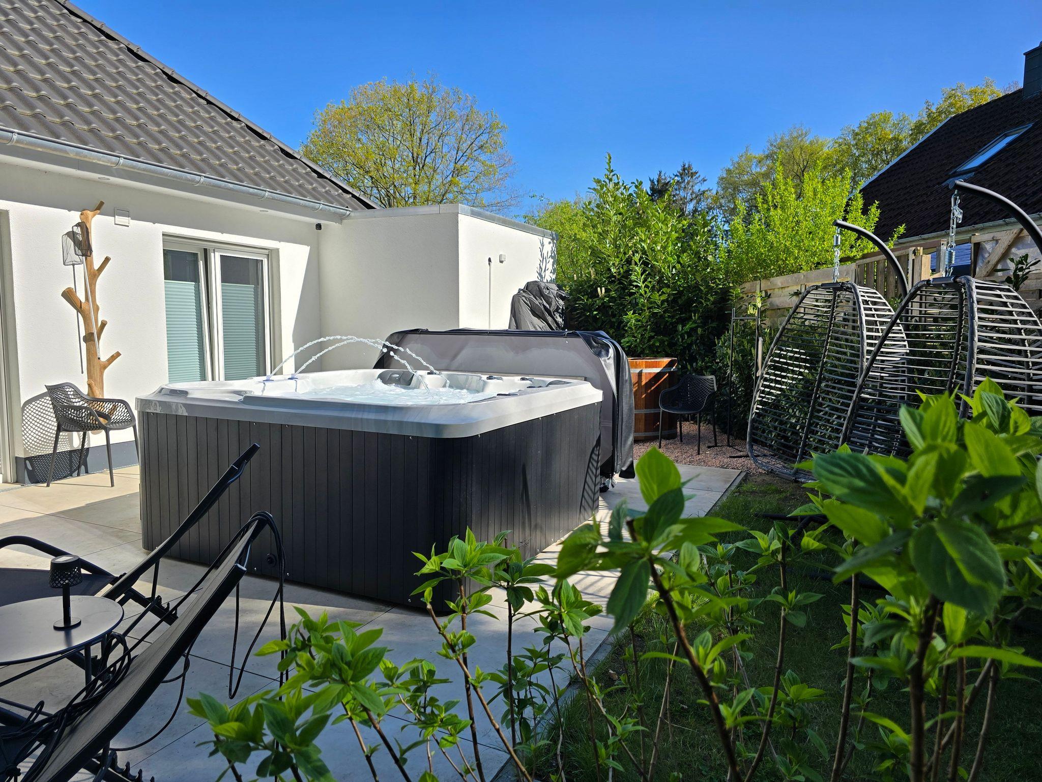 Lass den Tag ausklingen auf einer der beiden Terrassen mit Blick in die spannende Natur oder relaxe im beleuchteten Whirlpool. Ein Grillabend könnte deinen Sommer bereichern. Eine Outdoortischtennisplatte mit Zubehör könnte dich und deine Familie zu einem Turnier motivieren. Für Elektrofahrräder gibt es eine Außensteckdose.