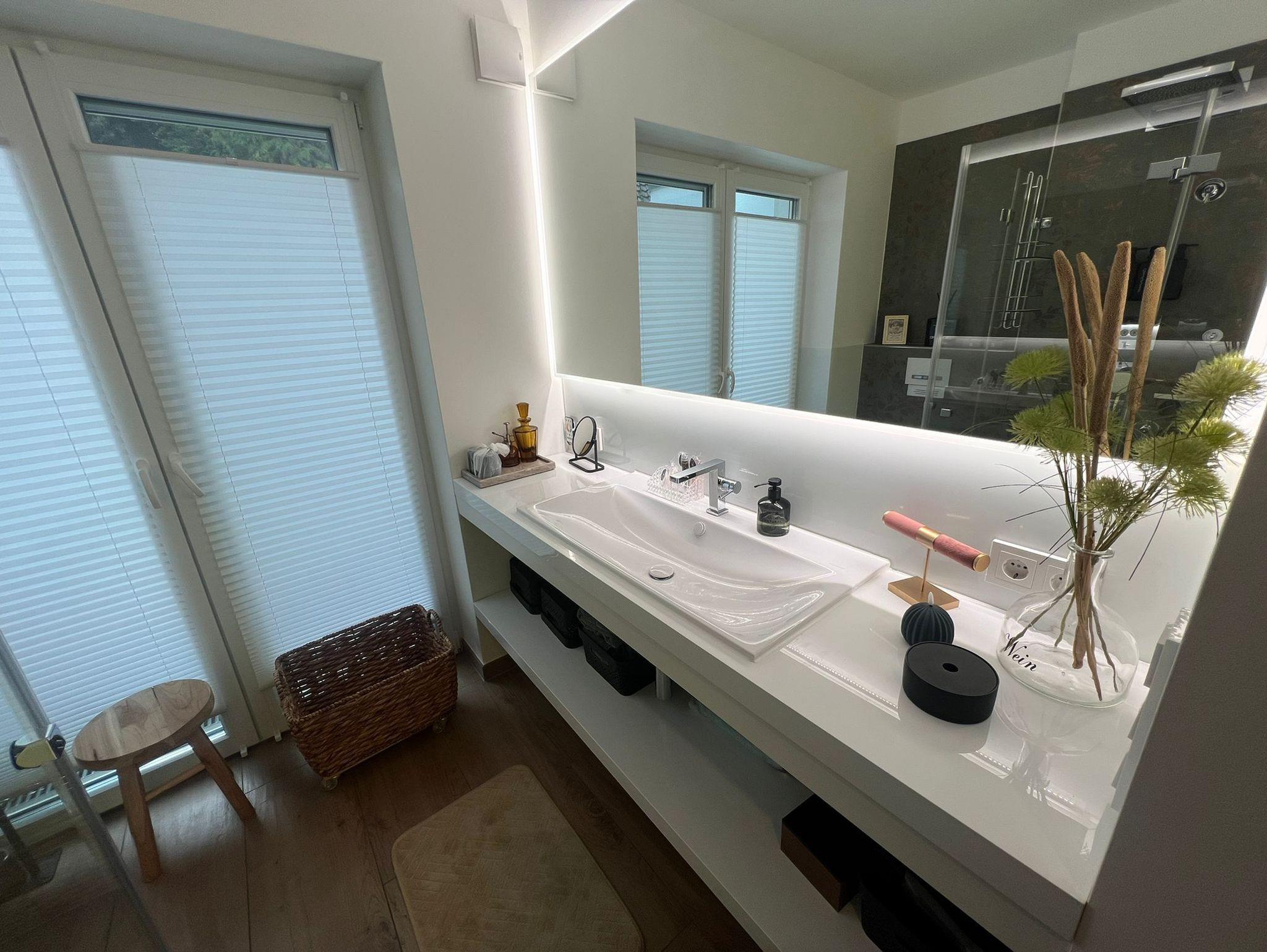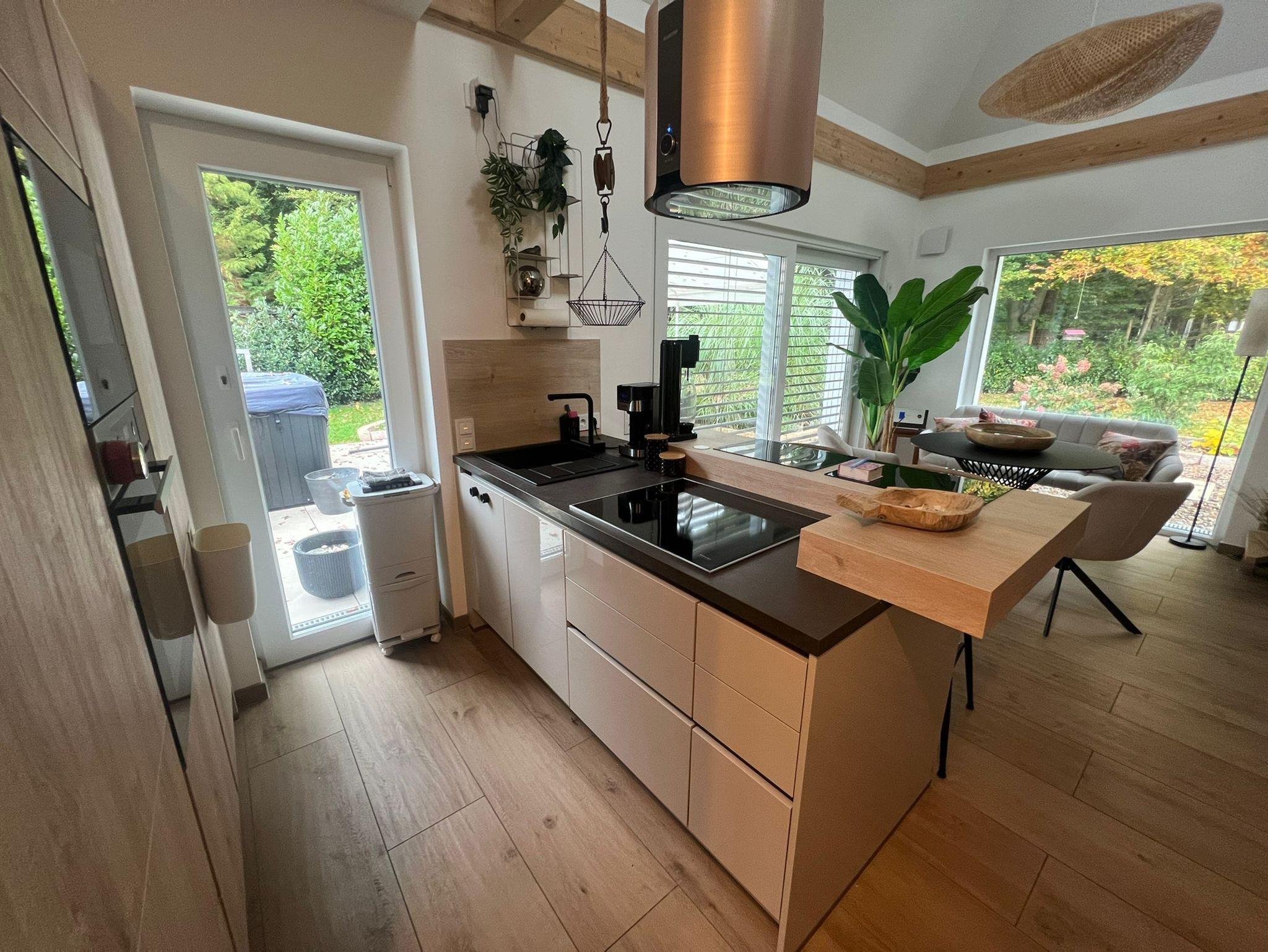 Es empfängt dich ein helles, freundliches Haus mit offenem Wohn-Ess- und Kochbereich. Die Ausstattung in Design, Geräten und Mobiliar lässt keine Wünsche in dem vor kurzem fertiggestellten Haus offen. Als Willkommensgruß stehen alkoholische und nichtalkoholische Getränke im Kühlschrank.