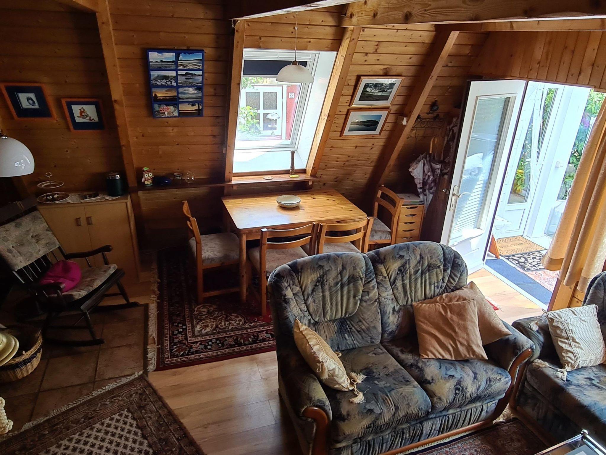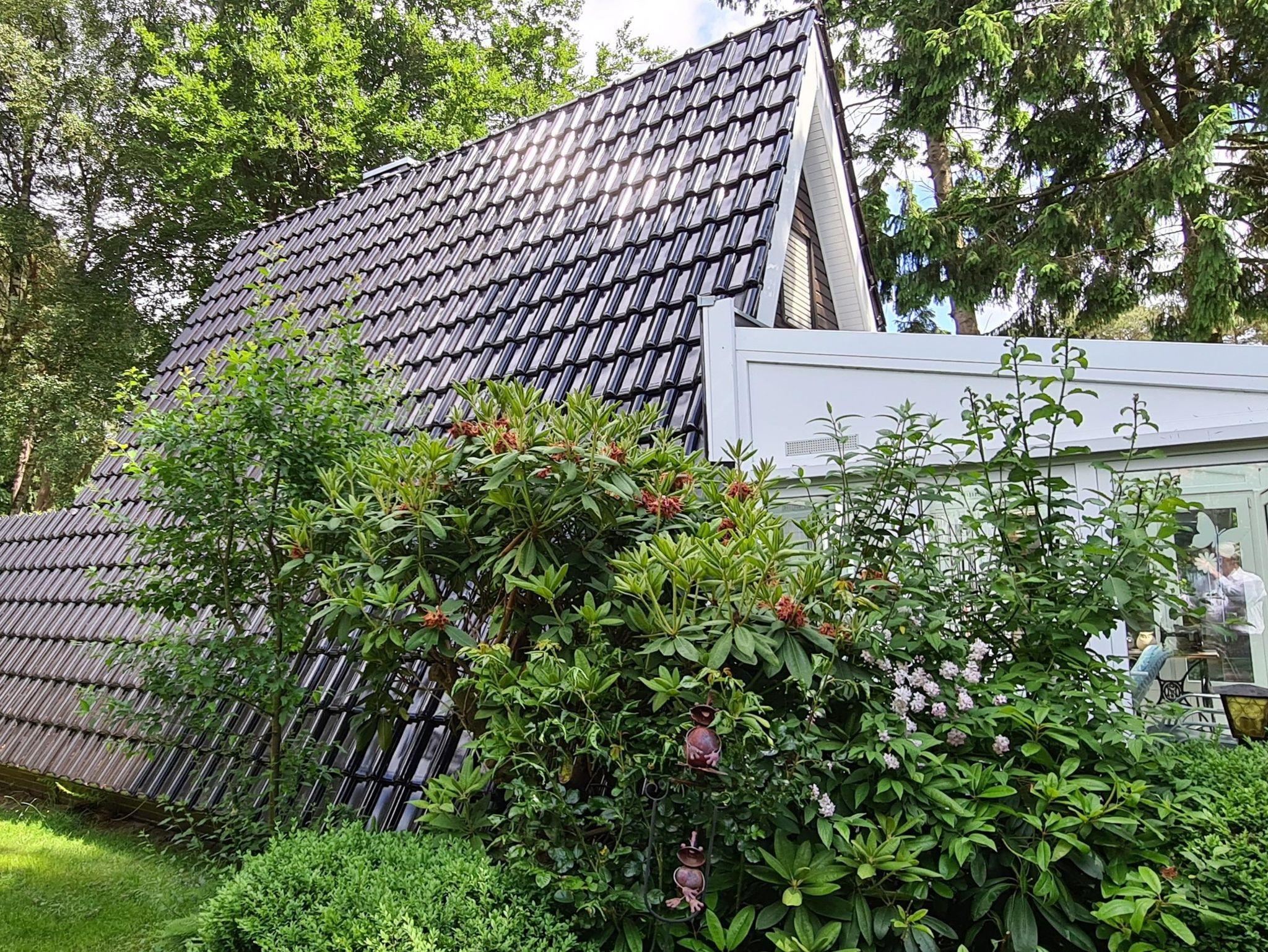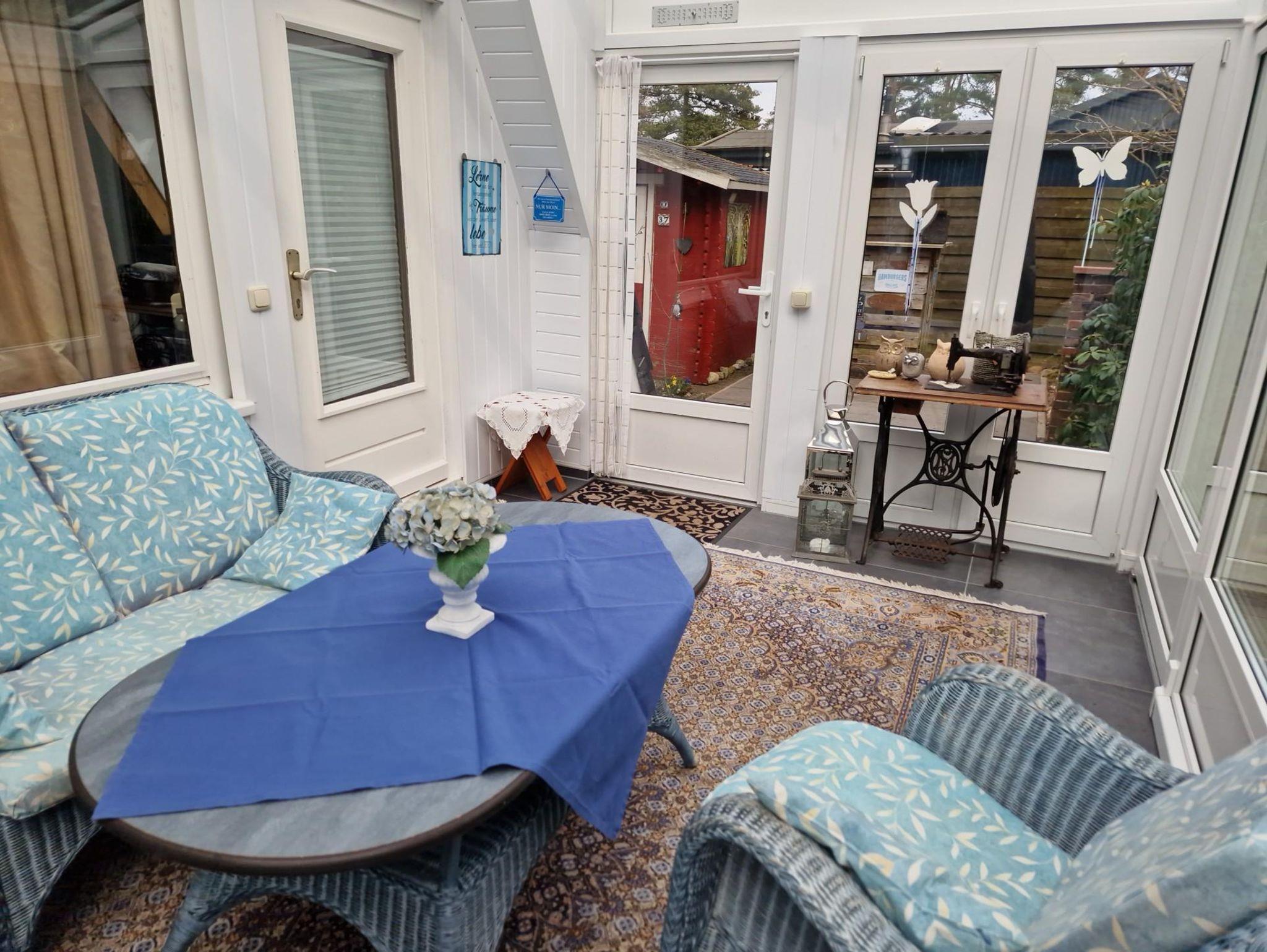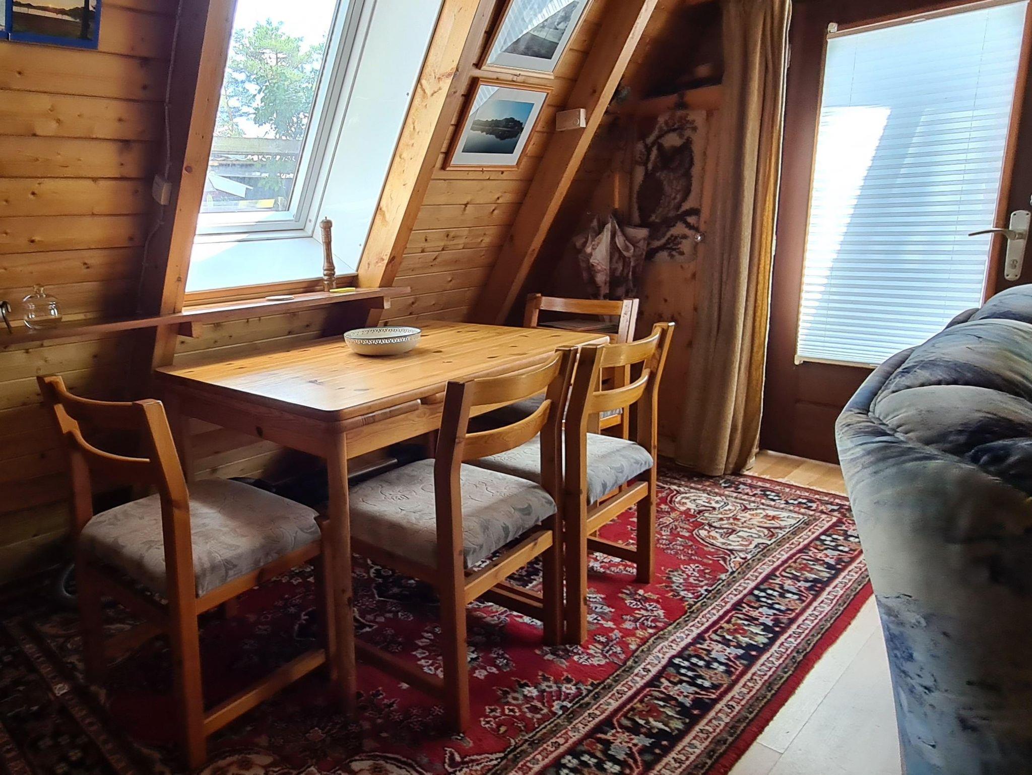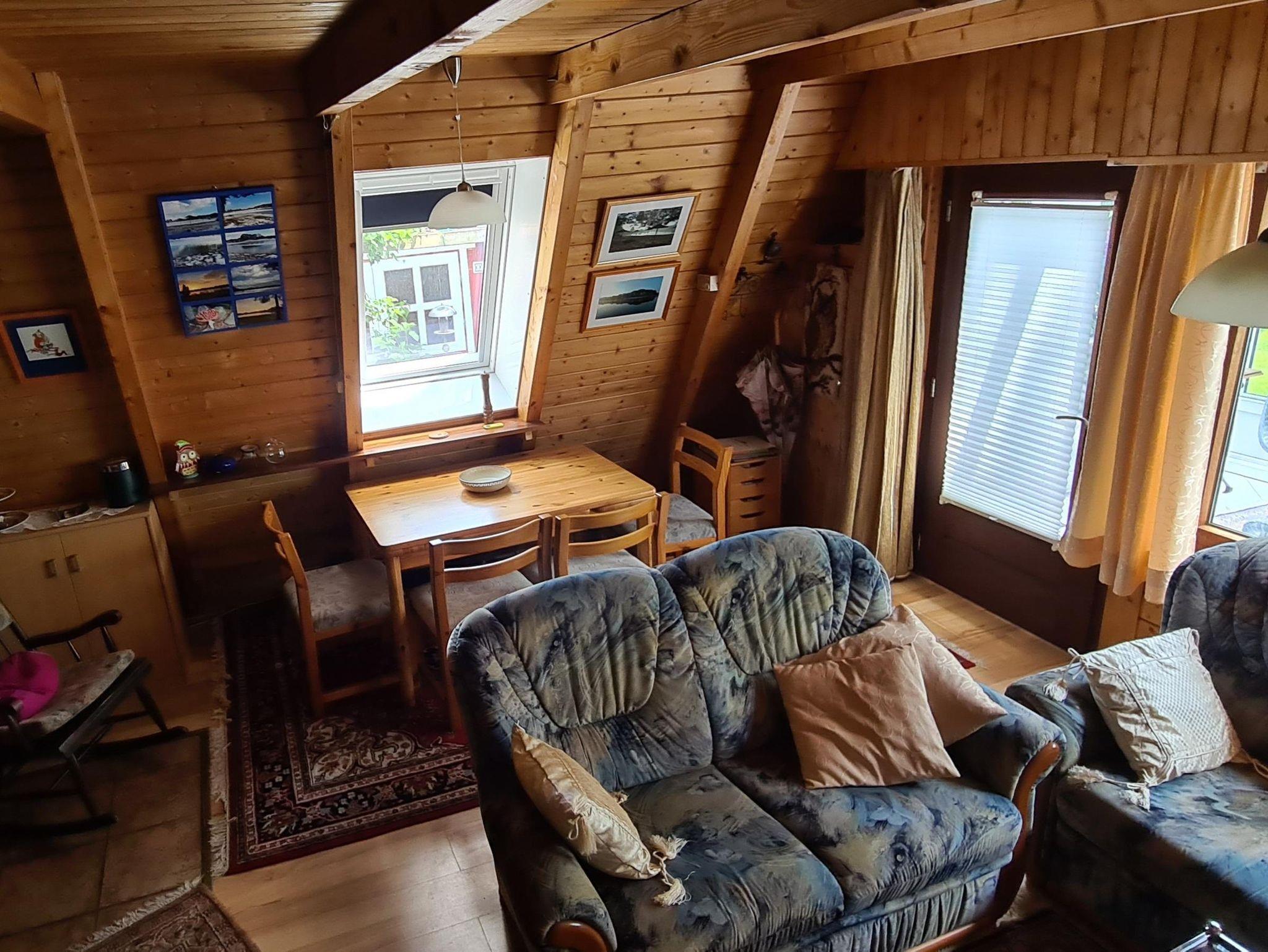 Es handelt sich um ein Nur-Dach-Haus mit angebautem Wintergarten und Carport. Das idyllische Feriendomizil verfügt über zwei Schlafzimmer mit jeweils zwei Einzelbetten, sowie einem Badezimmer, einer Küche und einem separaten Wohnzimmer.