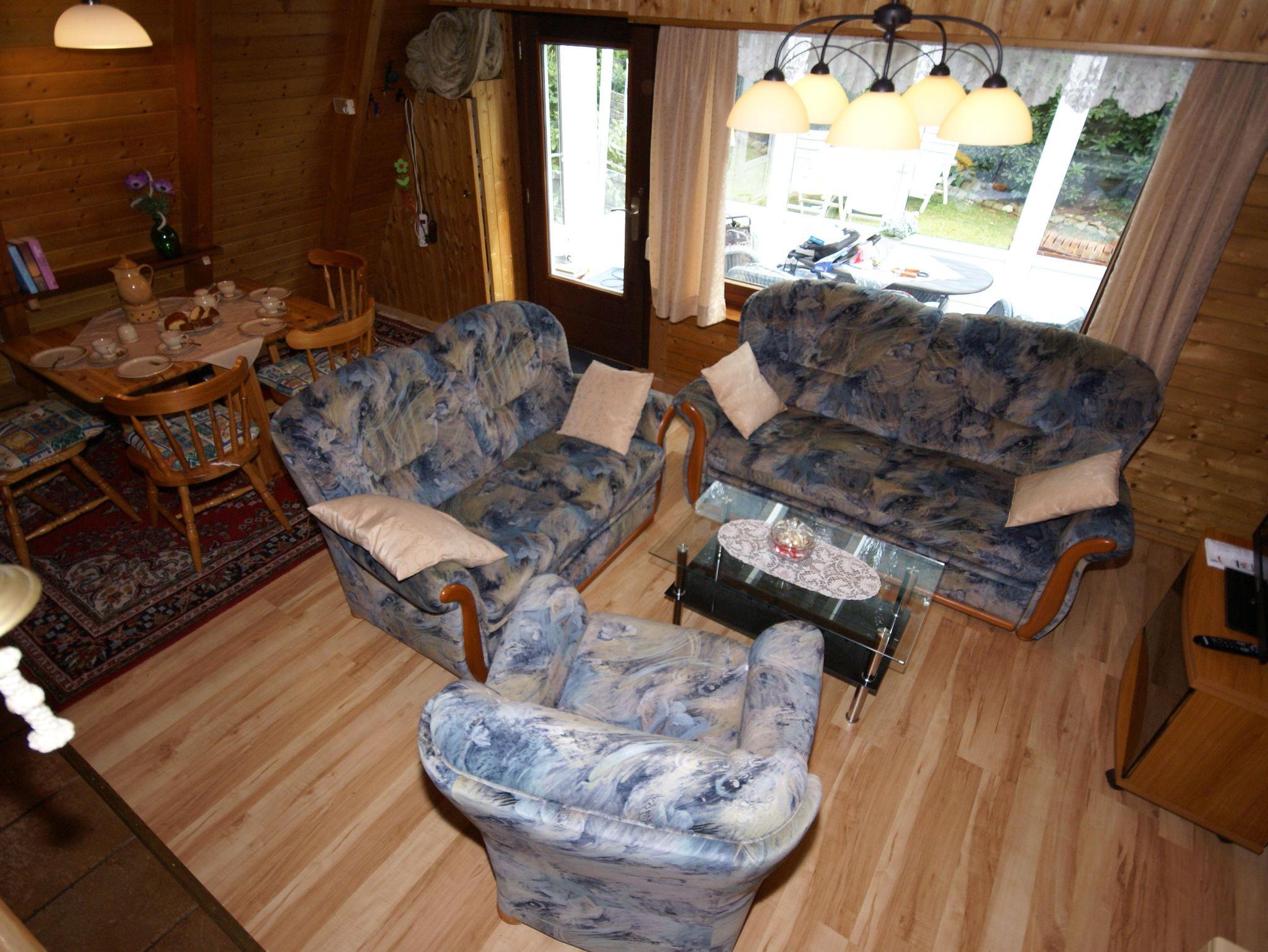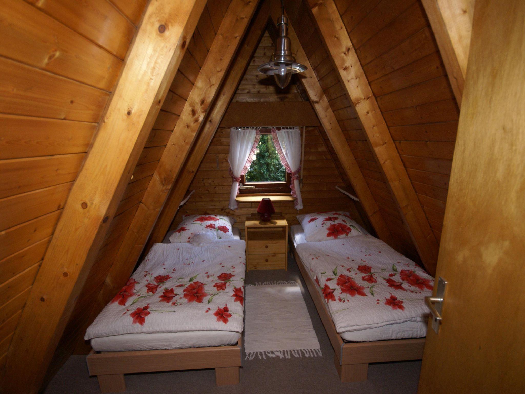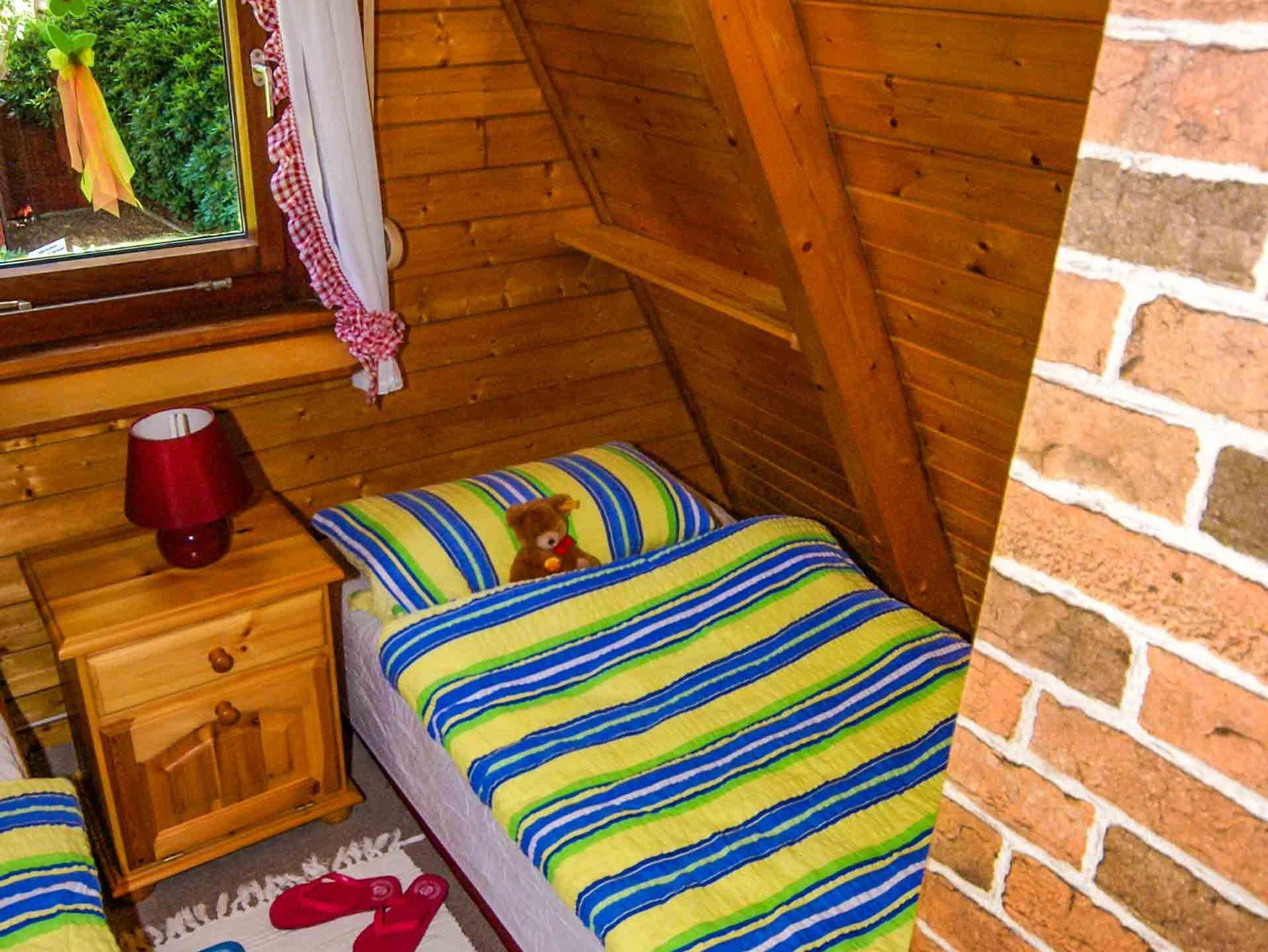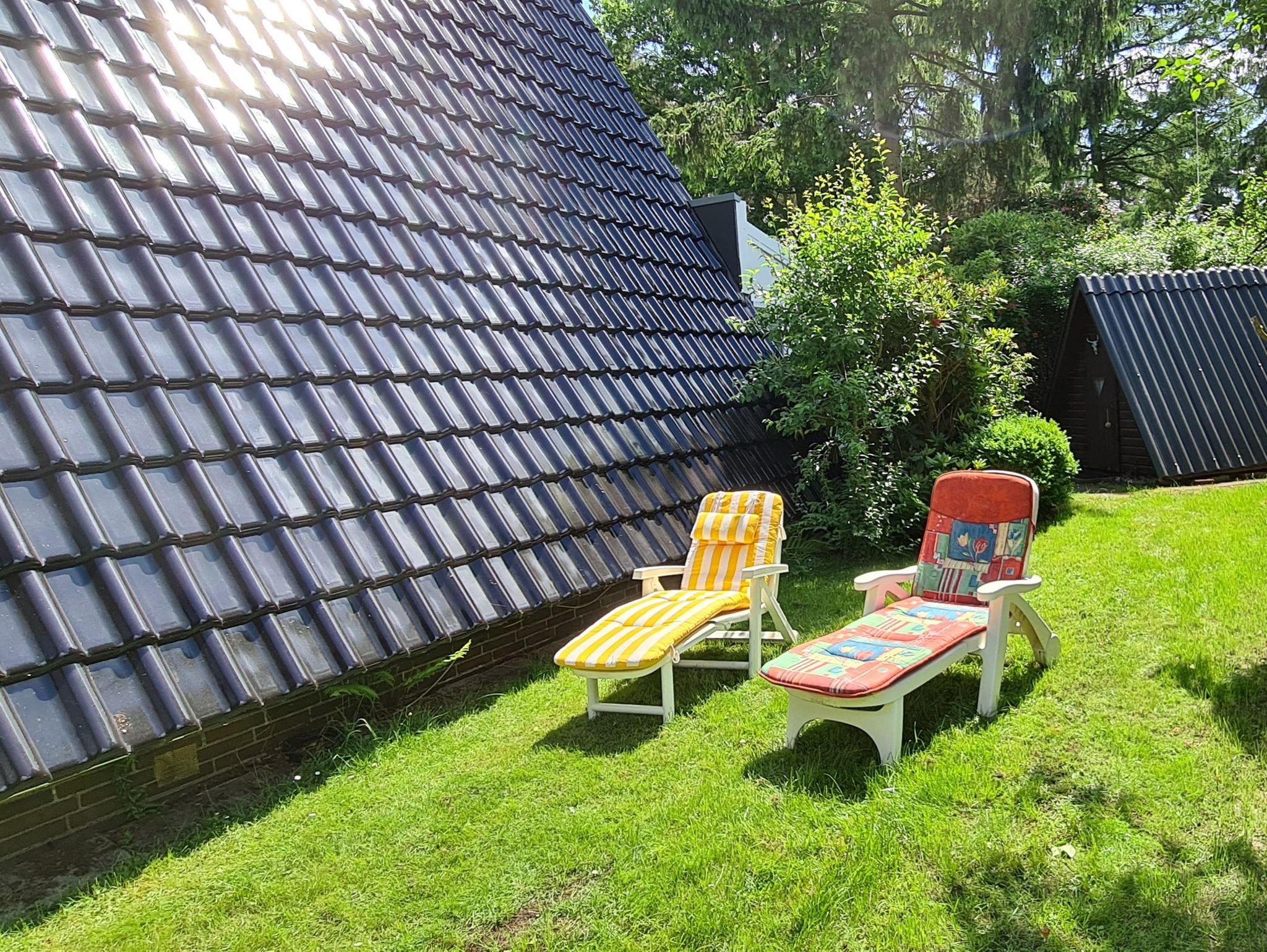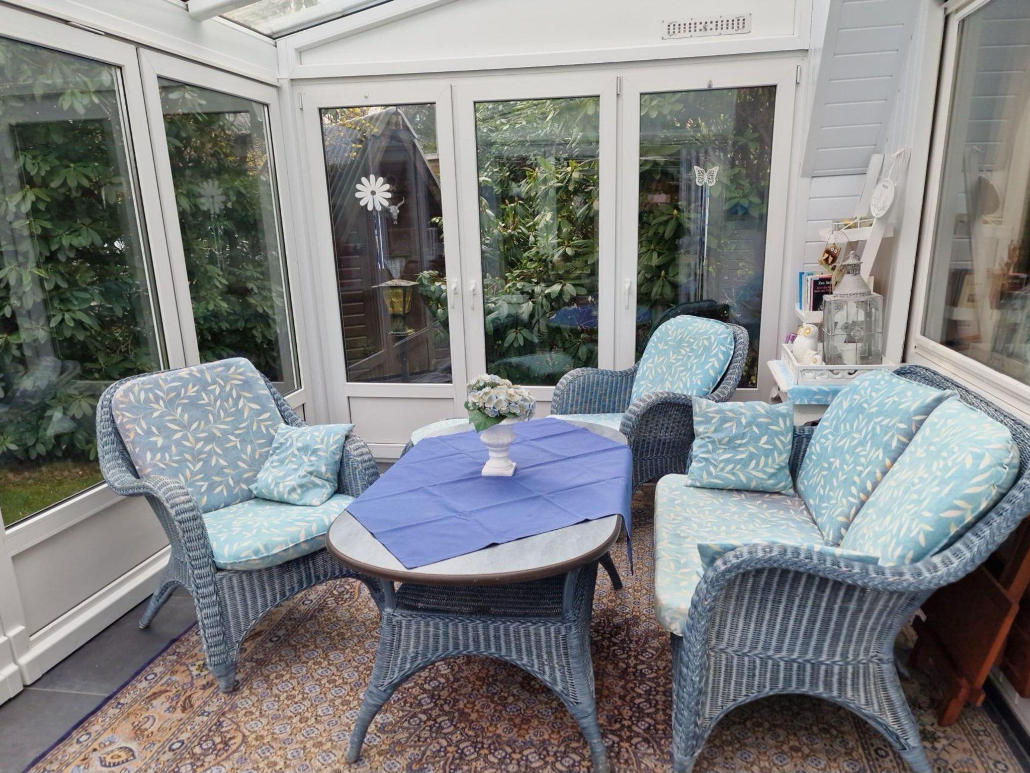 Es handelt sich um ein Nur-Dach-Haus mit angebautem Wintergarten und Carport. Das idyllische Feriendomizil verfügt über zwei Schlafzimmer mit jeweils zwei Einzelbetten, sowie einem Badezimmer, einer Küche und einem separaten Wohnzimmer.