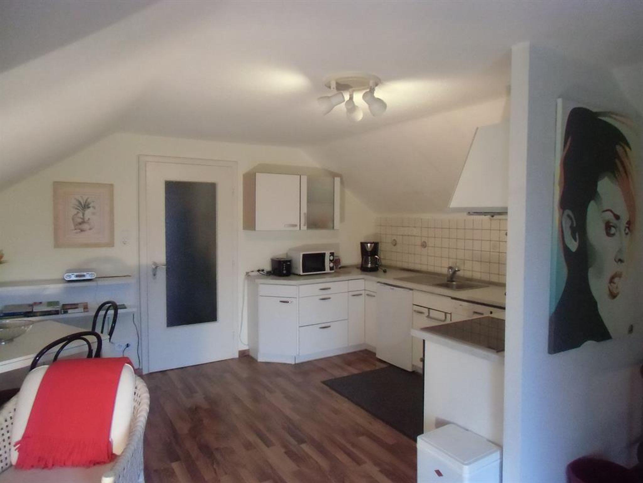 Die Ferienwohnung von ca. 54 qm Größe liegt im 1. Stock und ist über eine Wendeltreppe im Garten erreichbar. Die Ferienwohnung liegt direkt im Ortskern von Wiefelstede aber ruhig in einer Wohnsiedlung. Sie verfügt über eine Wohnküche inkl. Geschirrspülmaschine sowie einem separaten Schlafzimmer, Badezimmer mit Dusche, einem Balkon und einer Sauna.