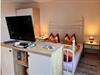 Stueetage: (Køkken(elkedel, komfur, kaffemaskine, ovn, mikrobølgeovn, opvaskemaskine , køleskab(+ fryser)), Stue/soveværelse(king size-seng, Fjernsyn(parabol), spisebord(4 personer), sofahjørne, radio), soveværelse(2x enkeltseng), badeværelse(bruser, håndvask, toilet), enkeltfoldeseng, varme, barneseng, barnestol) vaskemaskine(betalt), terrasse(deles med andre gæster), have(deles med andre gæster, indhegnet), havemøbler, grill, parkering, Parasol, legeredskaber(deles med andre gæster)