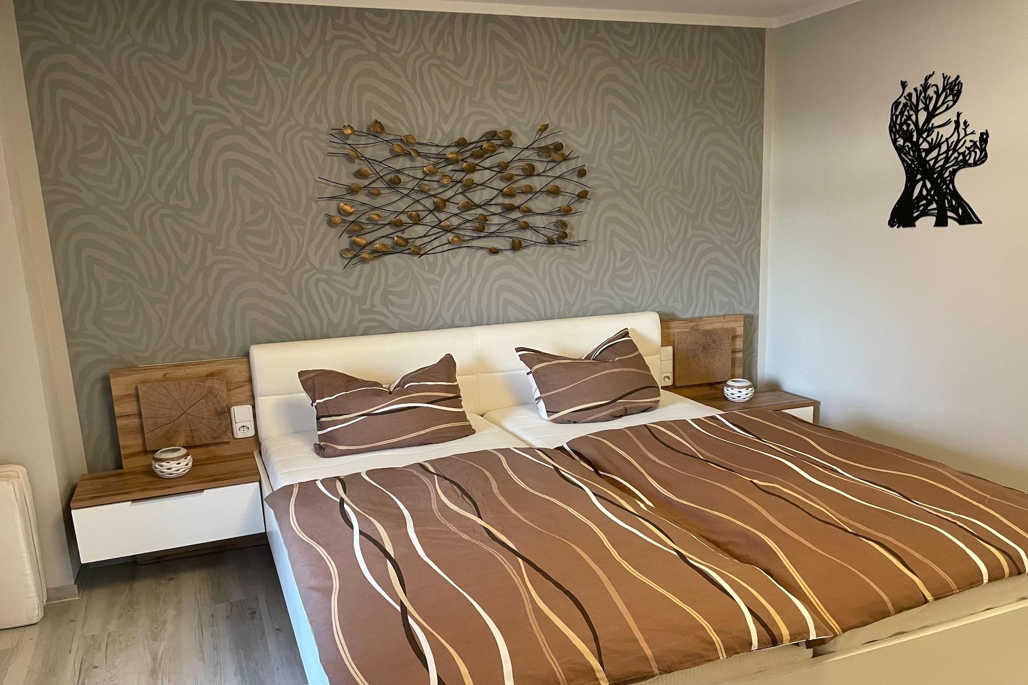 Denne ferielejlighed uden kæledyr i Wiek auf Rügen er et hyggeligt tilflugtssted kun 100 meter fra Østersøen. Ideel til par, det er placeret på første sal og tilbyder en fredelig base for at udforske øens nordlige kyst. Den nærliggende havn og promenade inviterer til afslappede gåture, mens den historiske kridtlæsebro og udsigten over Wieker Bodden tilføjer lokal charme. Kap Arkona og fiskerlandsbyen Vitt er også inden for rækkevidde for naturskønne dagsture. Lejligheden har en lys åben planløsning med keramisk kogeplade, mikroovn, kaffemaskine og køleskab med fryser. Opholds-/soveområdet omfatter en kingsize-seng, fladskærms-tv, spisebord til to og et komfortabelt opholdsområde. Et moderne badeværelse med bruser og gulvvarme sikrer komfort året rundt. Gæsterne kan slappe af på den private terrasse med havemøbler og liggestole. Fælles faciliteter omfatter en vaskemaskine, tørretumbler og sikker cykelopbevaring. Wiek er omgivet af natur og kystskønhed og tilbyder fremragende spisning kun få skridt væk. Nyd solide tyske retter på Gaststätte Wiek Huus eller frisk fisk og skaldyr på Jacobs Fischgaststätte. Den nærliggende strand ved Juliusruh er perfekt til solbadning, mens skovstierne og vandsporten ved Wieker Bodden giver udendørs eventyr. Denne lejlighed er en charmerende base for en afslappende baltisk flugt.