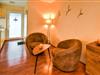 På 1. etage: (åbent køkken(brødrister, komfur(glaskeramisk), emhætte, kaffemaskine, mikrobølgeovn, køleskab(+ fryser)), Stue/soveværelse(king size-seng(180 x 200 cm), Fjernsyn(fladskærm), spisebord(2 personer), sofahjørne), badeværelse(bruser, håndvask, toilet), tremmeseng, varme(gulvvarme), terrasse, havemøbler, solstole, barnestol) tørretumbler(deles med andre gæster), vaskemaskine(deles med andre gæster), cykelopbevaring, parkering