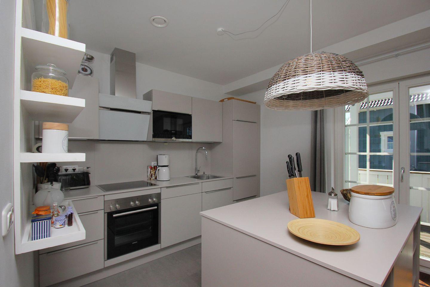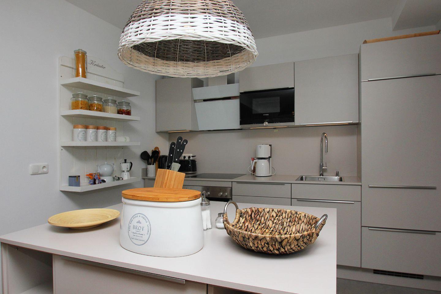 KÜCHE // offene Küche, 4-Platten Ceranfeld, Spülmaschine, Kühlschrank mit Gefrierfach, Backofen, Mikrowelle, Toaster, Wasserkocher, Kaffeemaschine, reichlich Besteck, Geschirr und Küchenutensilien ++