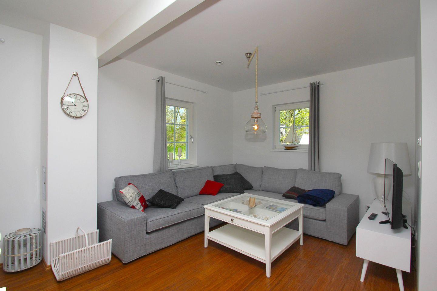 WOHNEN // Wohnraum mit Essbereich, Sitzgarnitur mit bequemer Couch, Flachbild-TV (Kabel), Radio, CD-Player ++