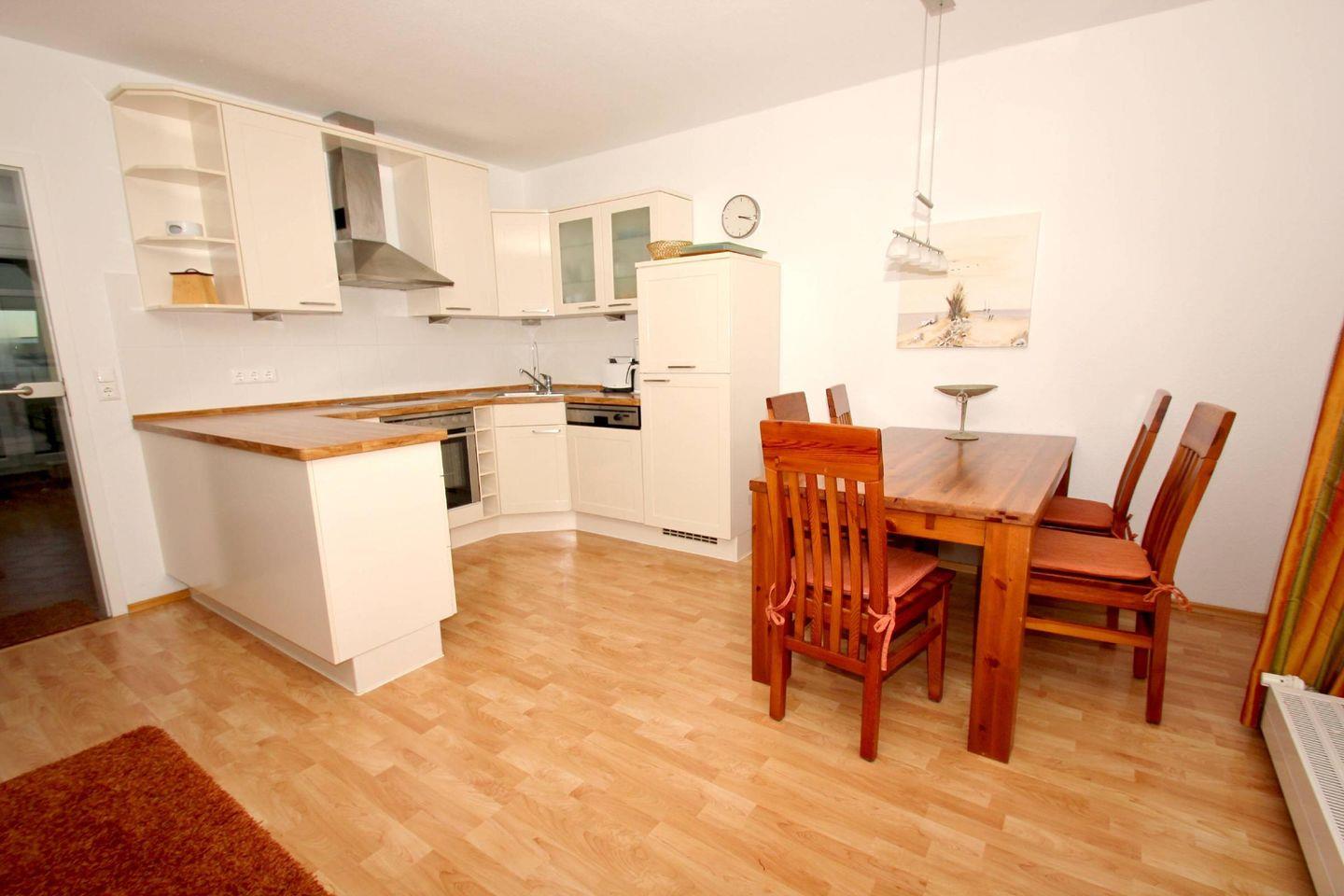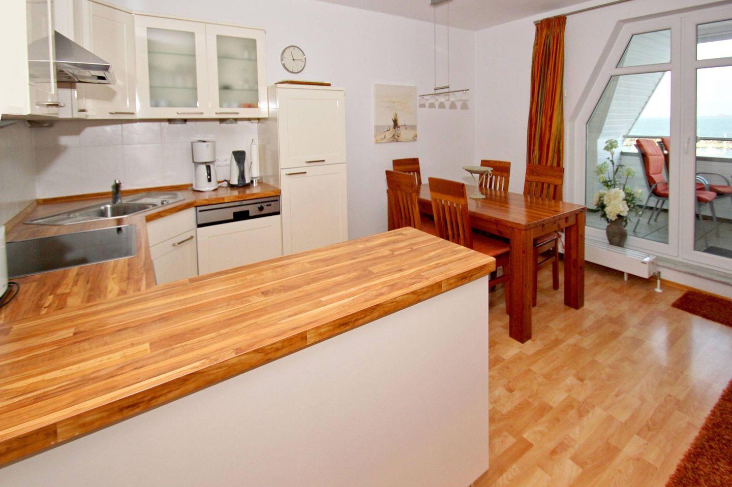 KÜCHE // offene Küche, 4-Platten Ceranherd, Spülmaschine, Kühlschrank mit Gefrierfach, Backofen, Toaster, Wasserkocher, Kaffeemaschine, reichlich Besteck, Geschirr und Küchenutensilien ++