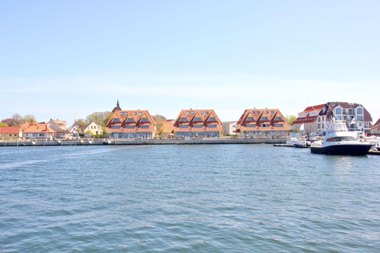 Traumhafter Meerblick-Urlaub in den Hafenhäusern in Wiek! Die Hafenhäuser bieten Ihnen in jeder Wohnung einen unvergleichlichen Blick über den Yachthafen, den Wieker Bodden und die Ostsee. Bei guten Sichtverhältnissen können Sie sogar bis zur Nachbarinsel Hiddensee sehen!