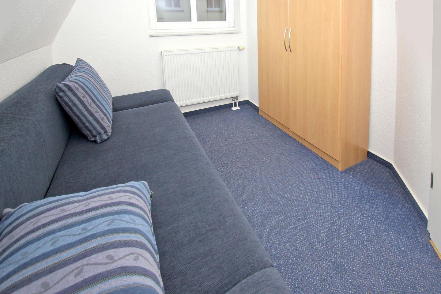 SCHLAFEN // ein Schlafzimmer mit bequemem Doppelbett, ein kleines Schlafzimmer mit Schlafcouch ++