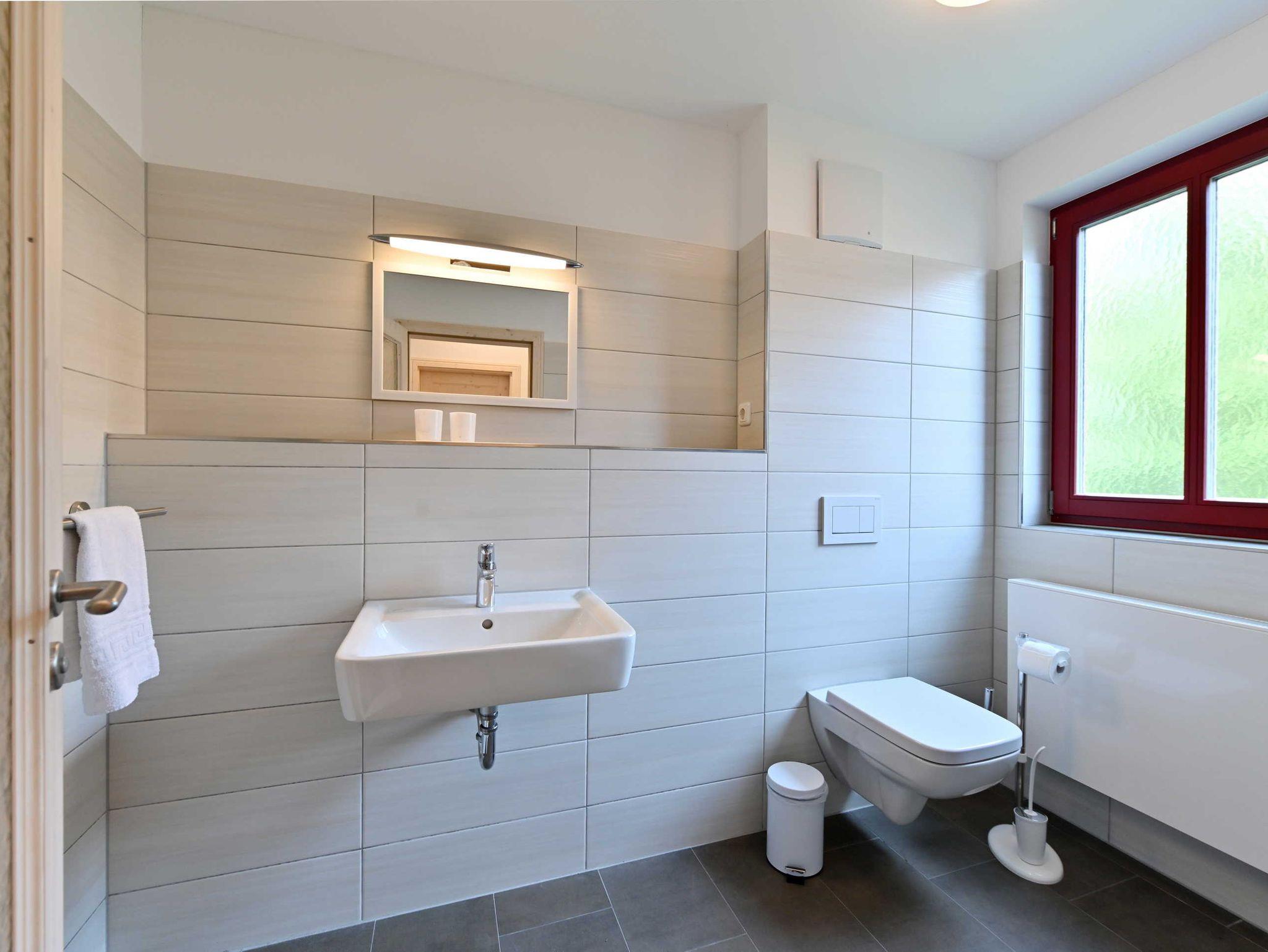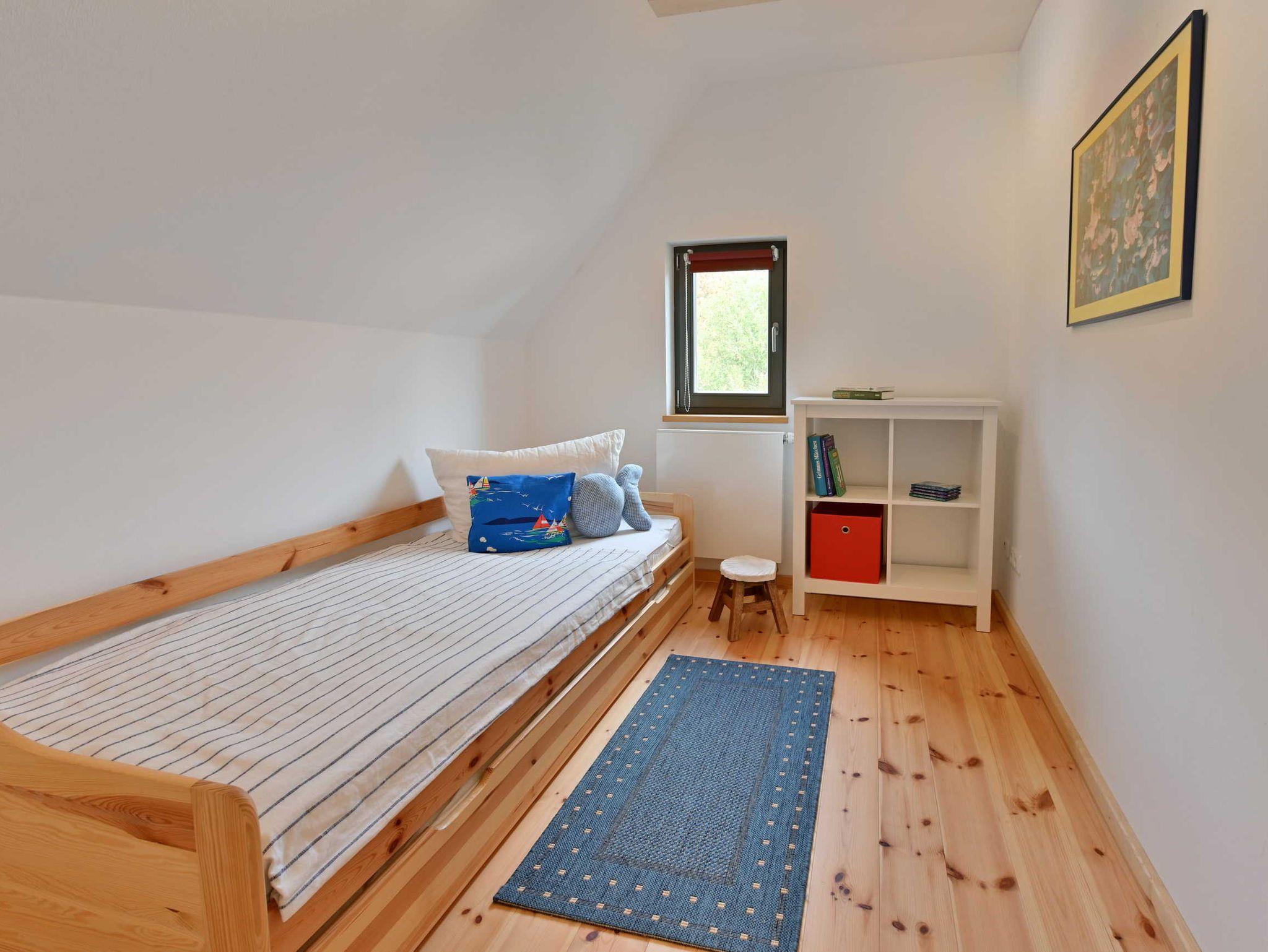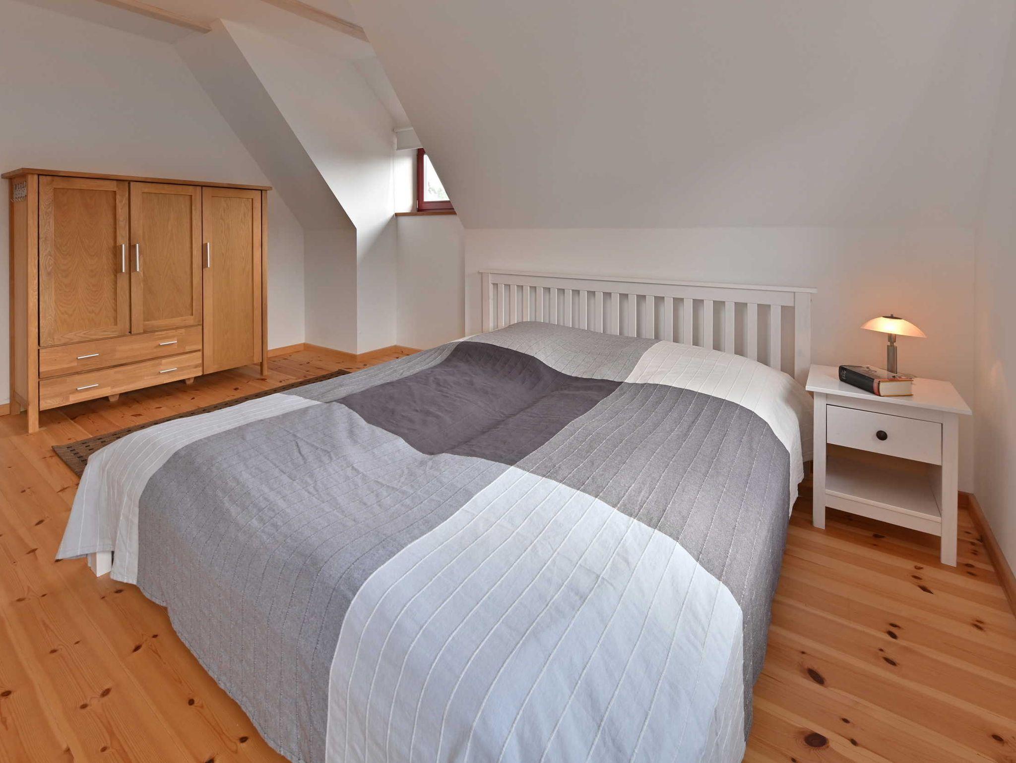 Das Haus verfügt im Obergeschoss über drei geräumige Schlafzimmer - ein Schlafzimmer mit Doppelbett, ein Schlafzimmer mit zwei Einzelbetten sowie ein Kinderschlafzimmer mit zwei vollwertigen Einzelbetten.