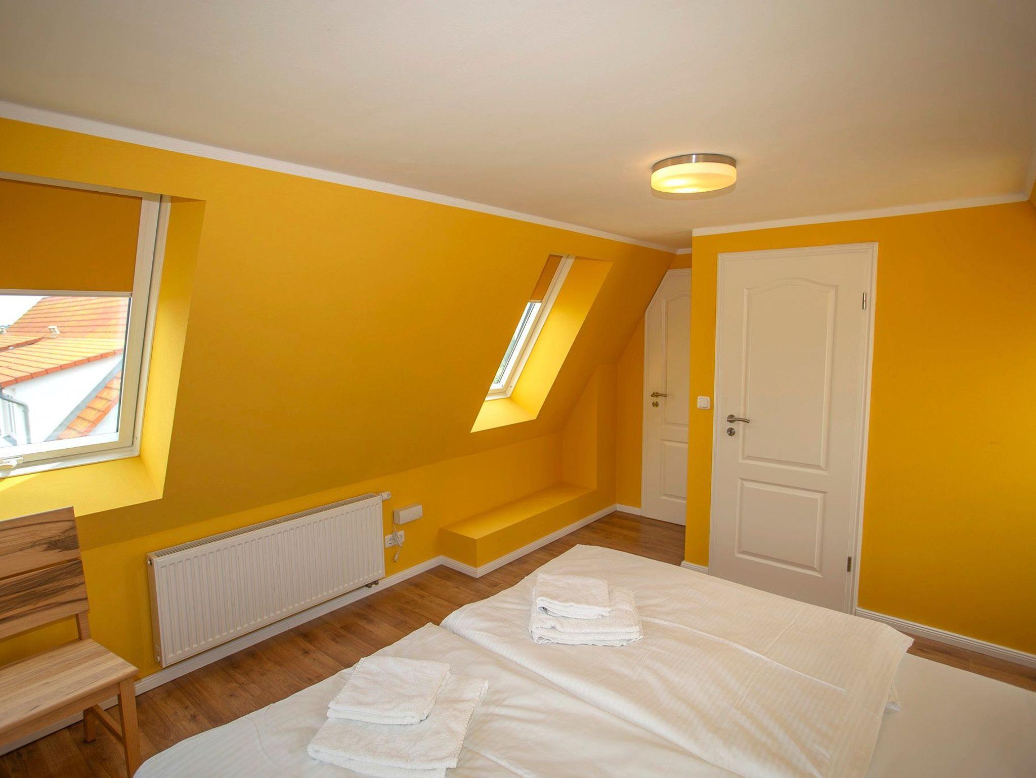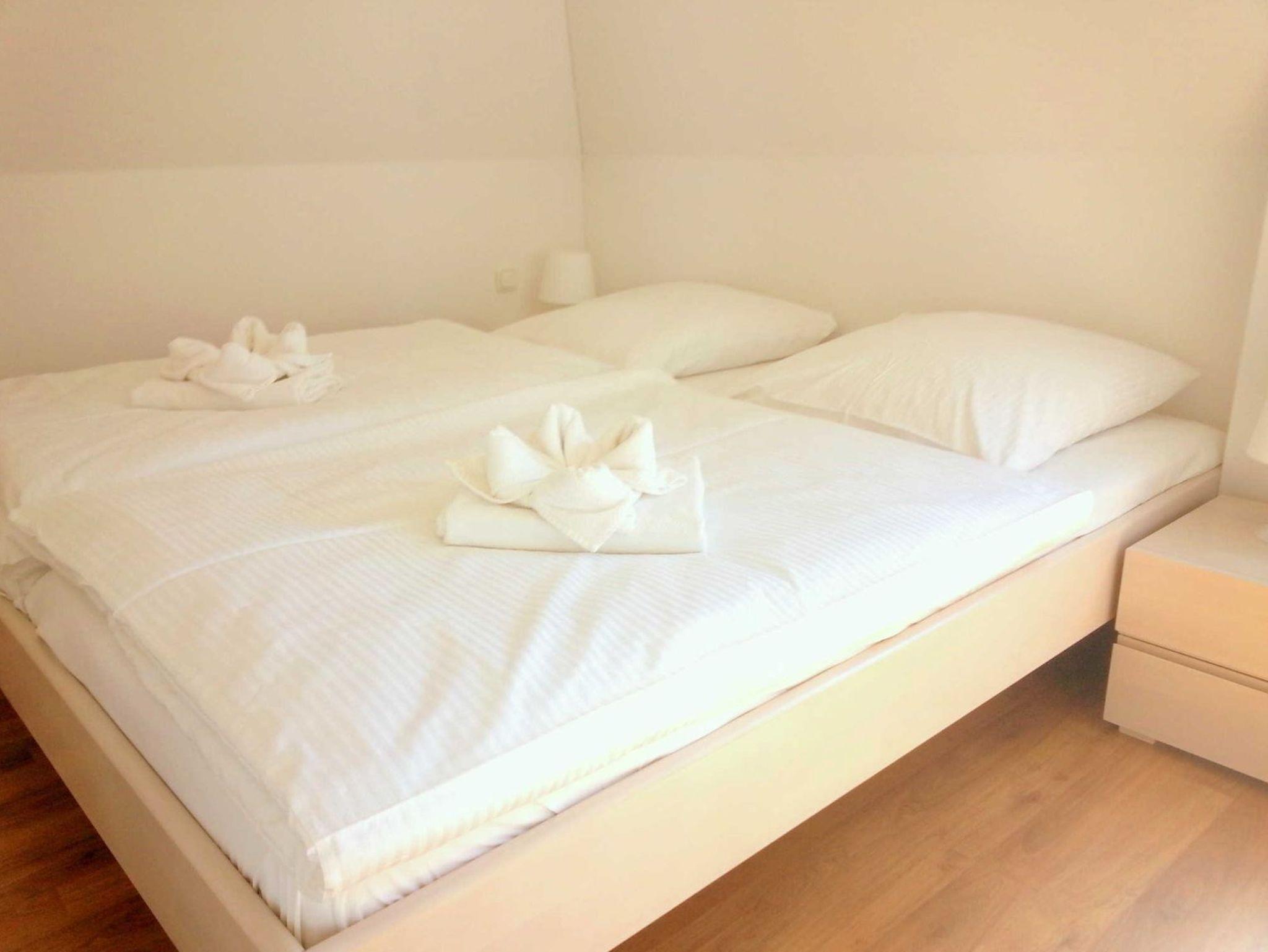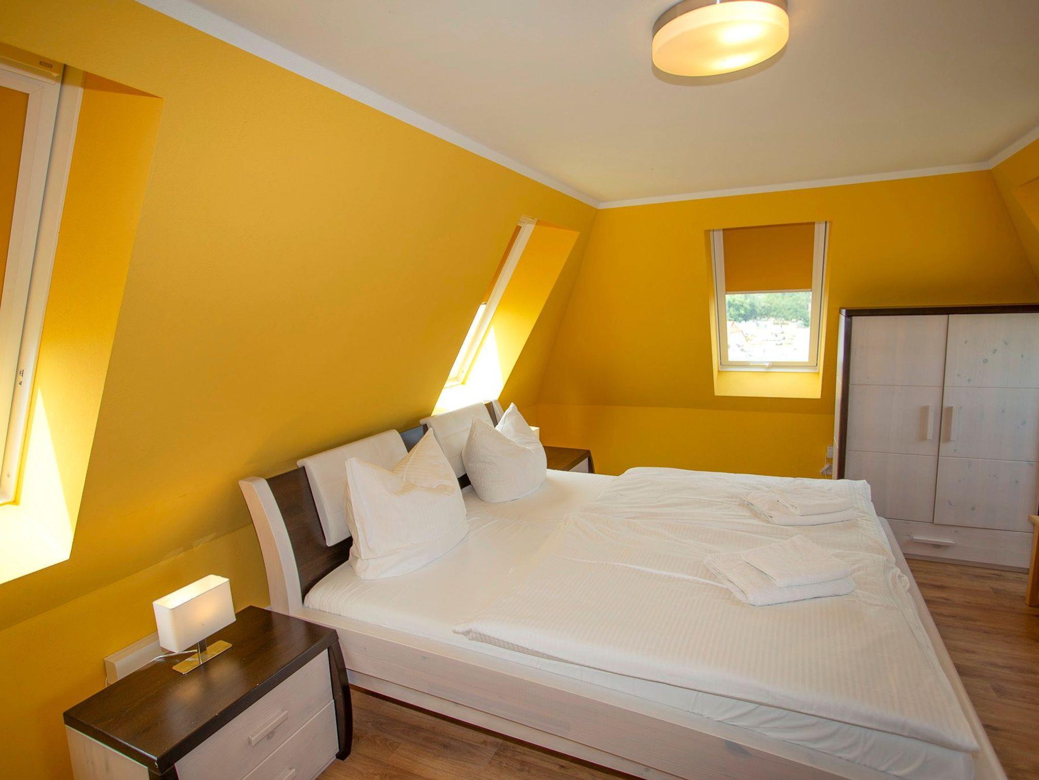 Die Ferienwohnung verfügt über zwei separate Schlafzimmer mit jeweils einem Doppelbett (2,00 x 1,80m, einzelnen 21cm dicken Komfort-Kaltschaum-Matratzen sowie sehr guten Lattenrosten). Ein Schlafzimmer mit großem Kleiderschrank befindet sich auf der Wohnebene und ist separat.