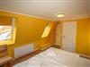 Das zweite abschließbare Schlafzimmer befindet sich im ausgebauten Giebel, hat Fenster nach drei Seiten mit einem einzigartigen Ausblick und verfügt über ein separates WC mit Waschbecken. Es ist mit einem Sideboard ausgestattet.