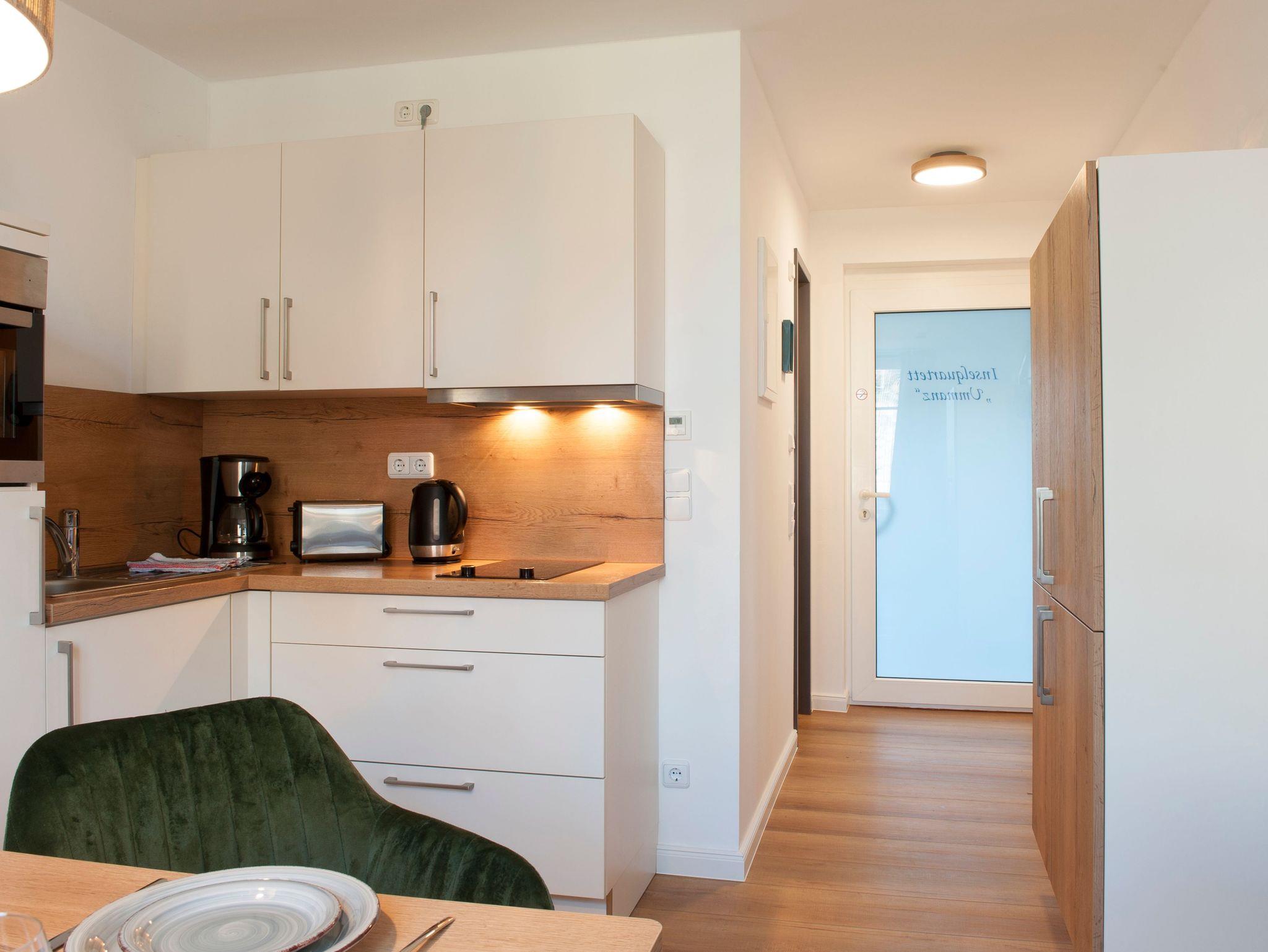 Die 1-Raum Appartements Vilm, Öhe und Ummanz befinden sich in dem Fischerdorf Wiek und sind nur 100m vom Hafen und ca. 5 Gehminuten von der AOK-Kurklinik entfernt. Sie sind zwischen 20 m² und 23 m² groß, im 1. Obergeschoss und jede hat einen eigenen PKW-Stellplatz. Die Küche verfügt über ein 2-fach, Mikrowelle oder Backofen, Kühlschrank mit kleiner Gefriermöglichkeit, Kaffeemaschine, Toaster und Wasserkocher. Das Bad ist mit Dusche ausgestattet. Die Appartements sowie die Ferienwohnung haben selbstverständlich kostenlos WLAN/Internet und mit einer Spielesammlung kann man den Abend gemütlich ausklingen lassen. Zur gemeinschaftlichen Nutzung stehen im Haus eine Waschmaschine und ein Trockner zur Verfügung. Zusätzlich gibt es einen Abstellraum für ihre Angelutensilien, Fahrräder oder zum Trocknen der Outdoor Kleidung bzw. Kite Sachen.