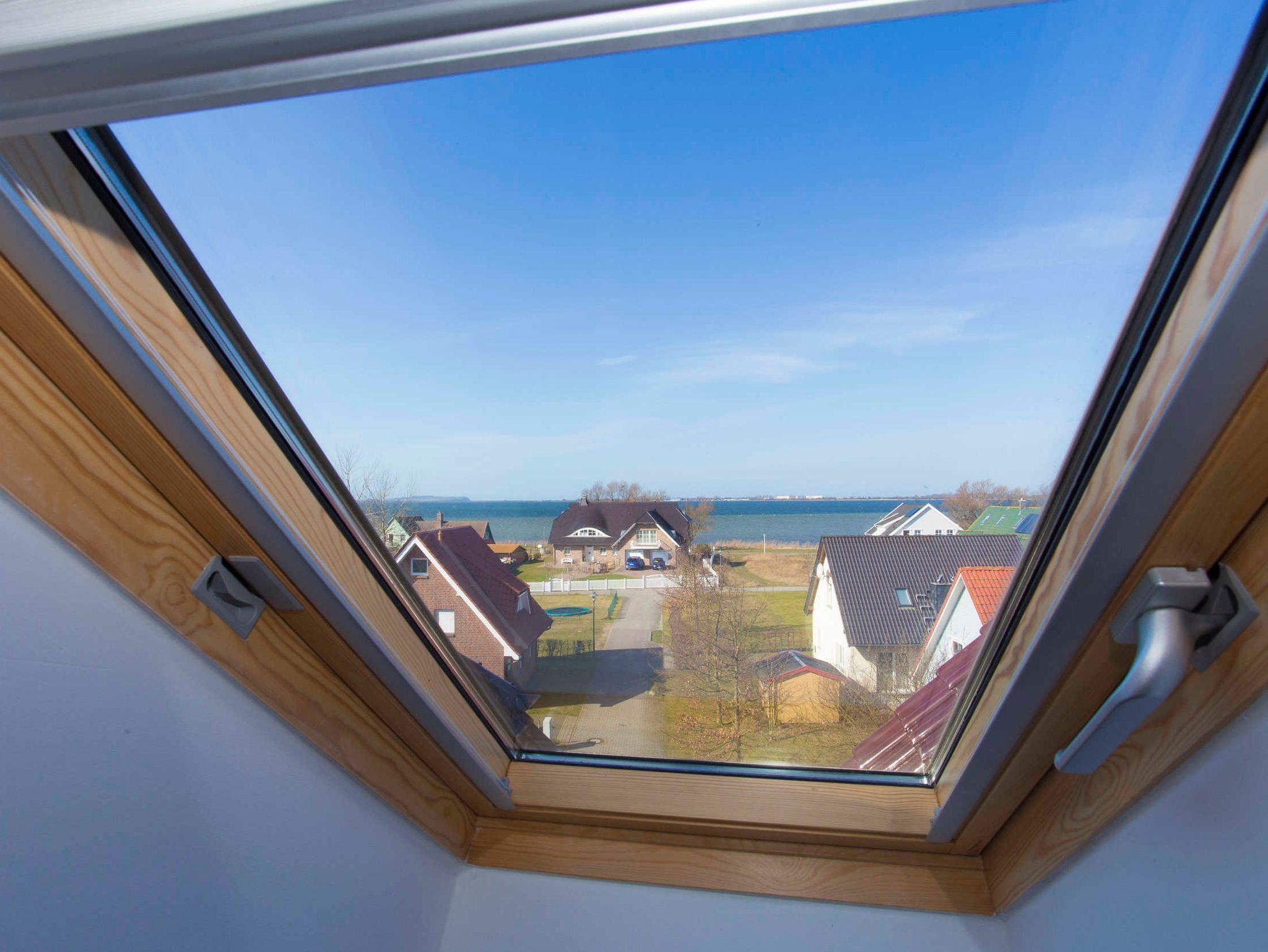 Die modern, hell und individuell ausgestattete 75qm große 3-Raum-Ferienwohnung in Wiek auf der Insel Rügen befindet sich im 2. Obergeschoss im Haus Boddenblick. Sie erstreckt sich über 2 Etagen und bietet einen herrlichen Blick sowohl über den Wieker Bodden als auch über das grüne Achterland.