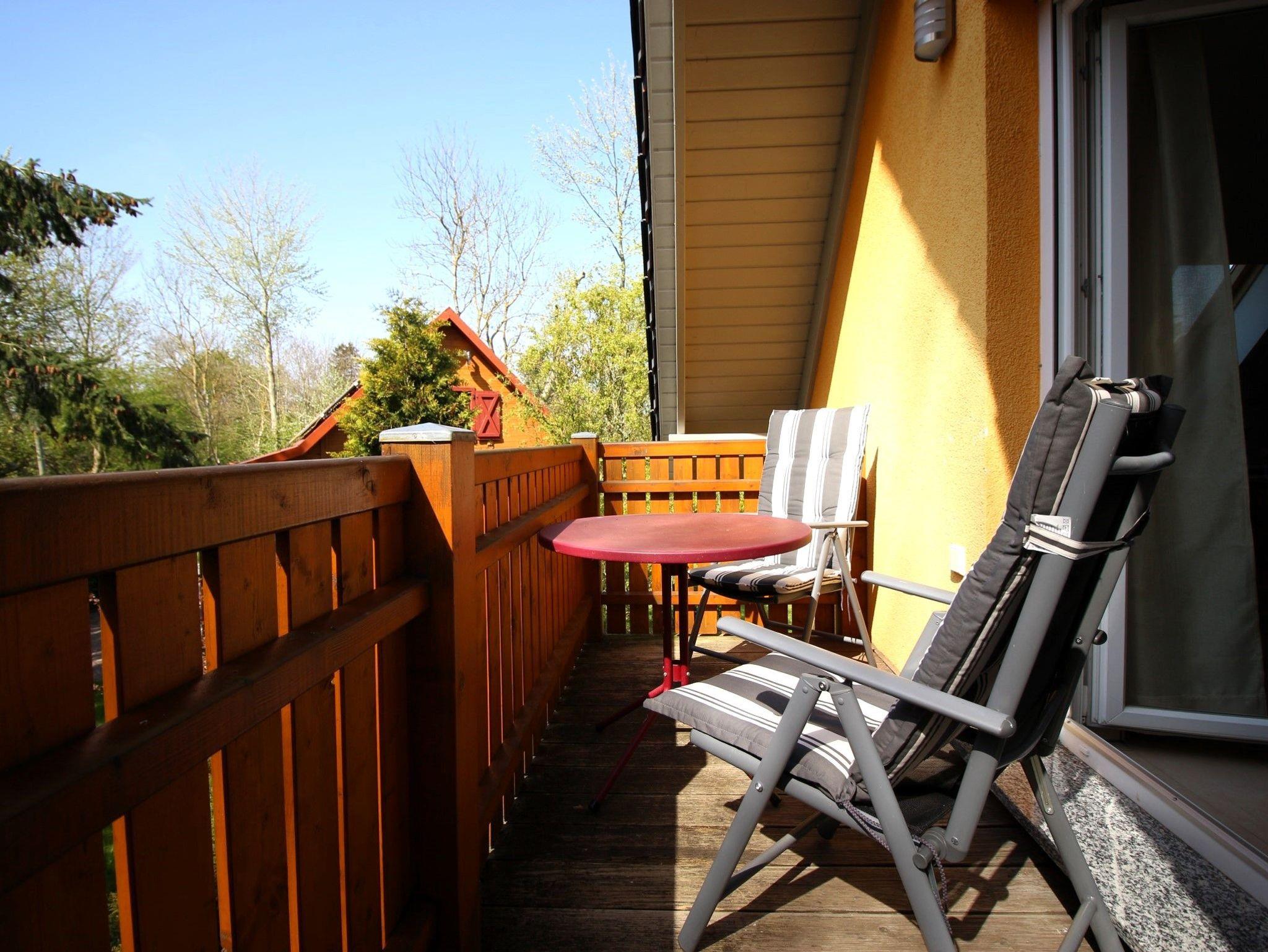 Schöne Ferienwohnung im 1. Obergeschoss mit möbliertem Balkon. Die Wohnung ist über eine Aussentreppe erreichbar. Haustiere/Hunde sind in der Wohnung im Oberschoss nicht erlaubt.