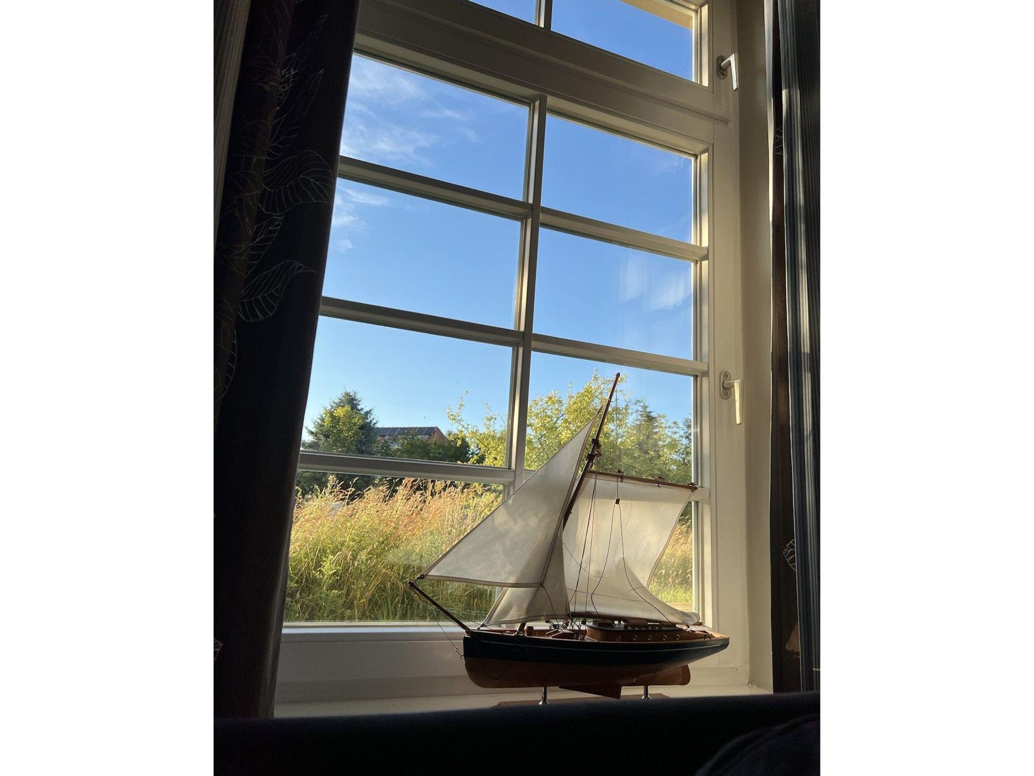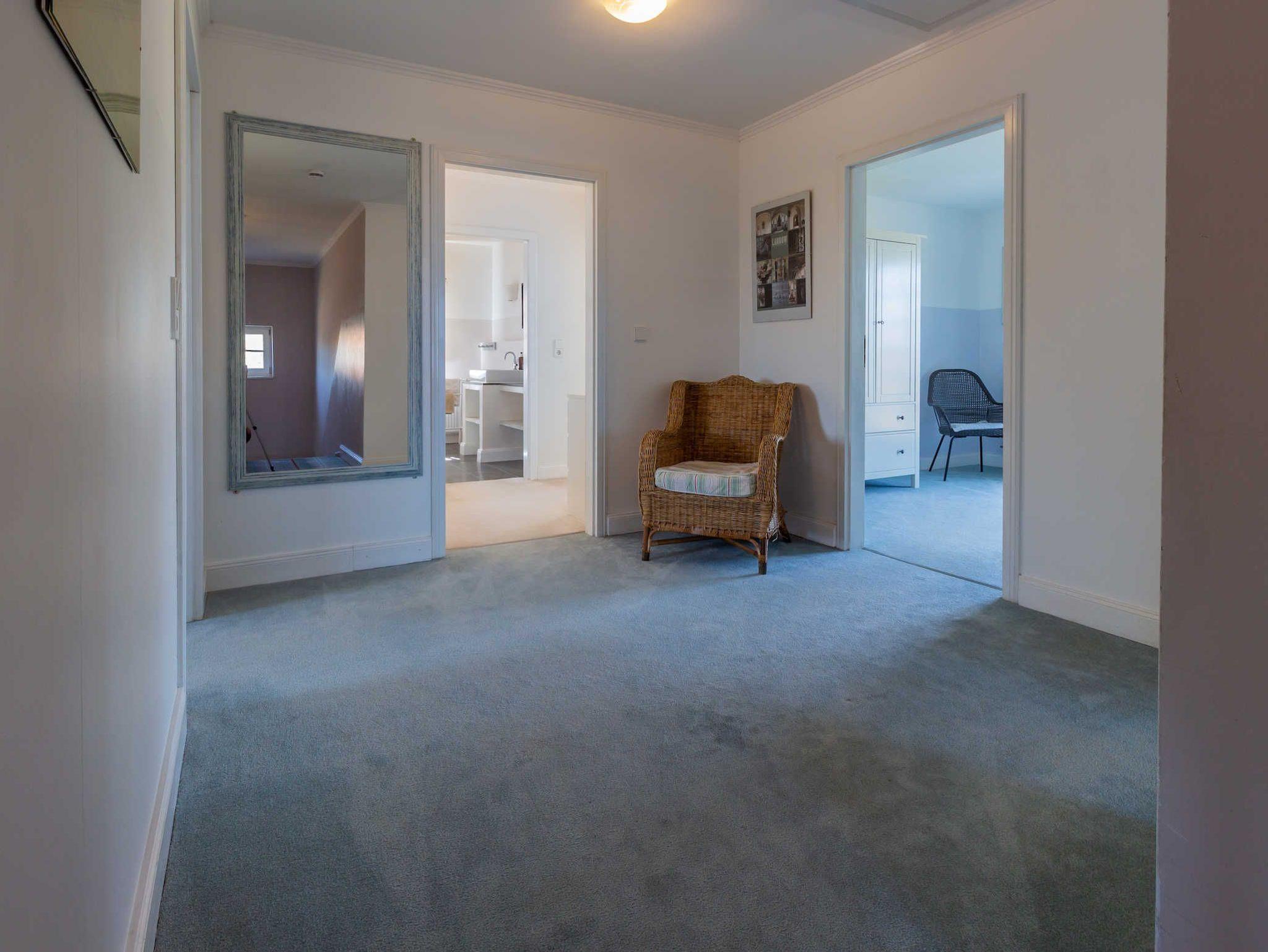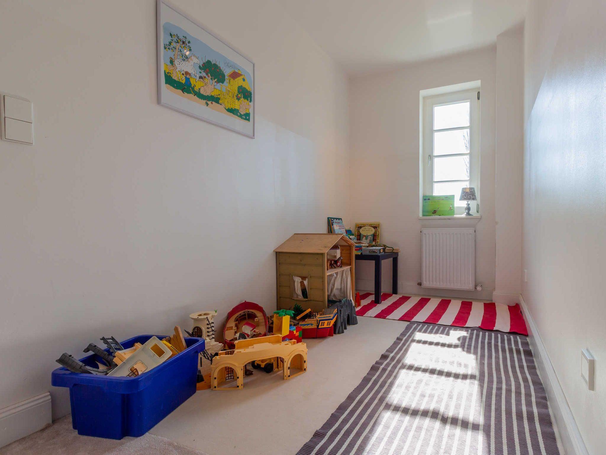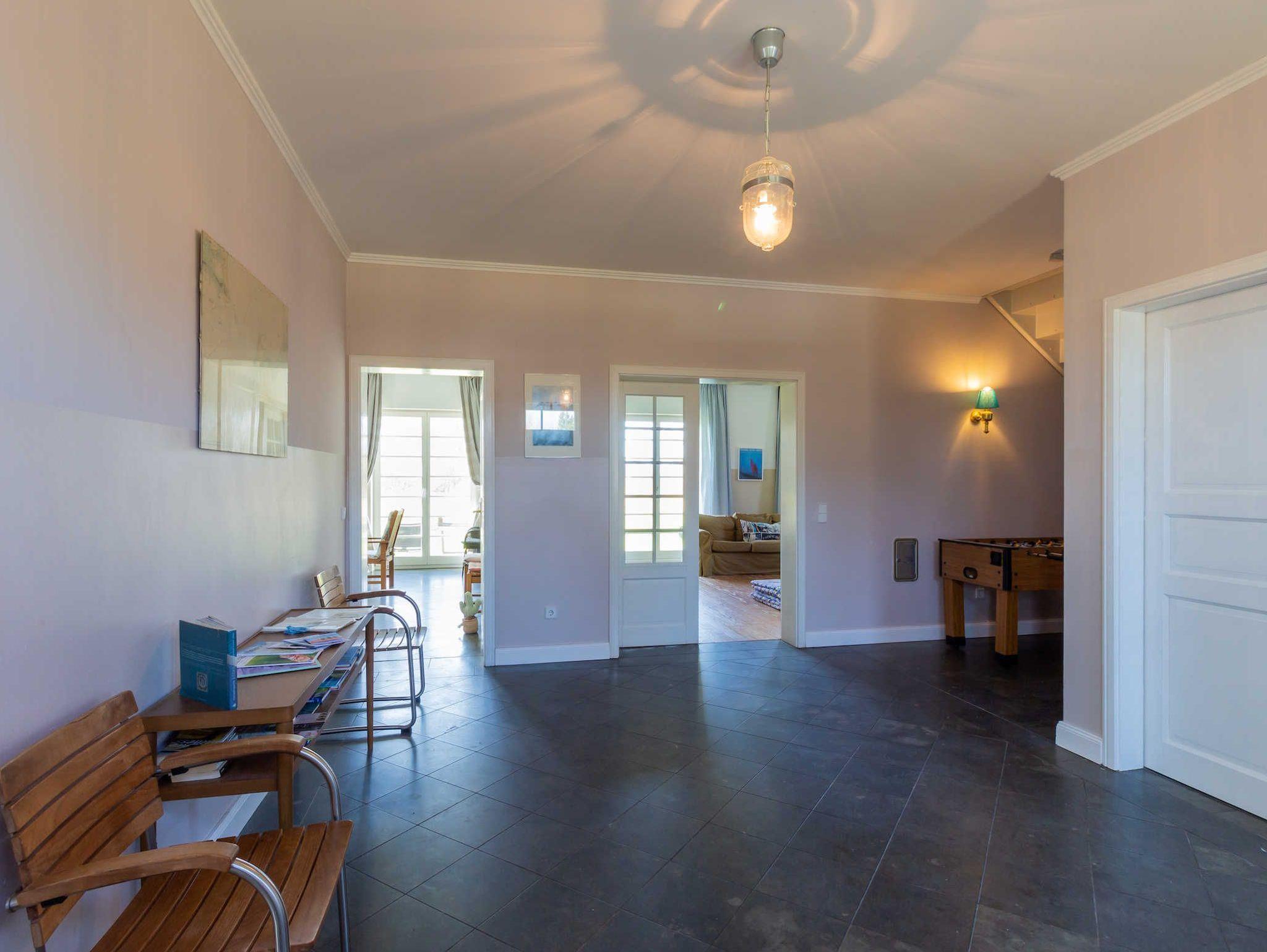 Die 230 m² große Villa hat eine große Eingangsdiele, sechs Schlafzimmer, eine geräumige Küche, ein Wohnzimmer mit offenem Kamin, zwei Bäder, ein Gäste-WC, ein kleines Spielzimmer und viel Garten und Wiese.