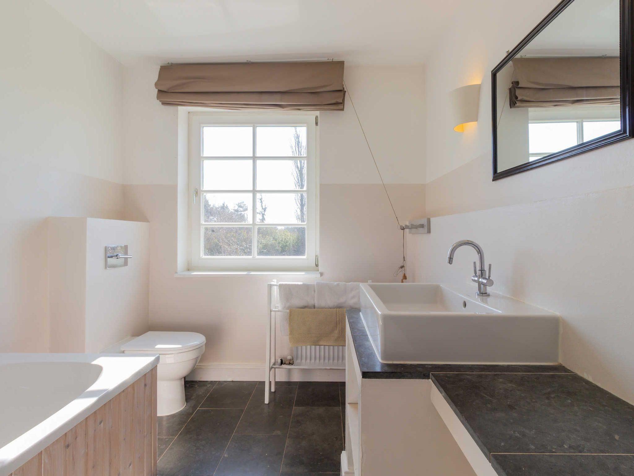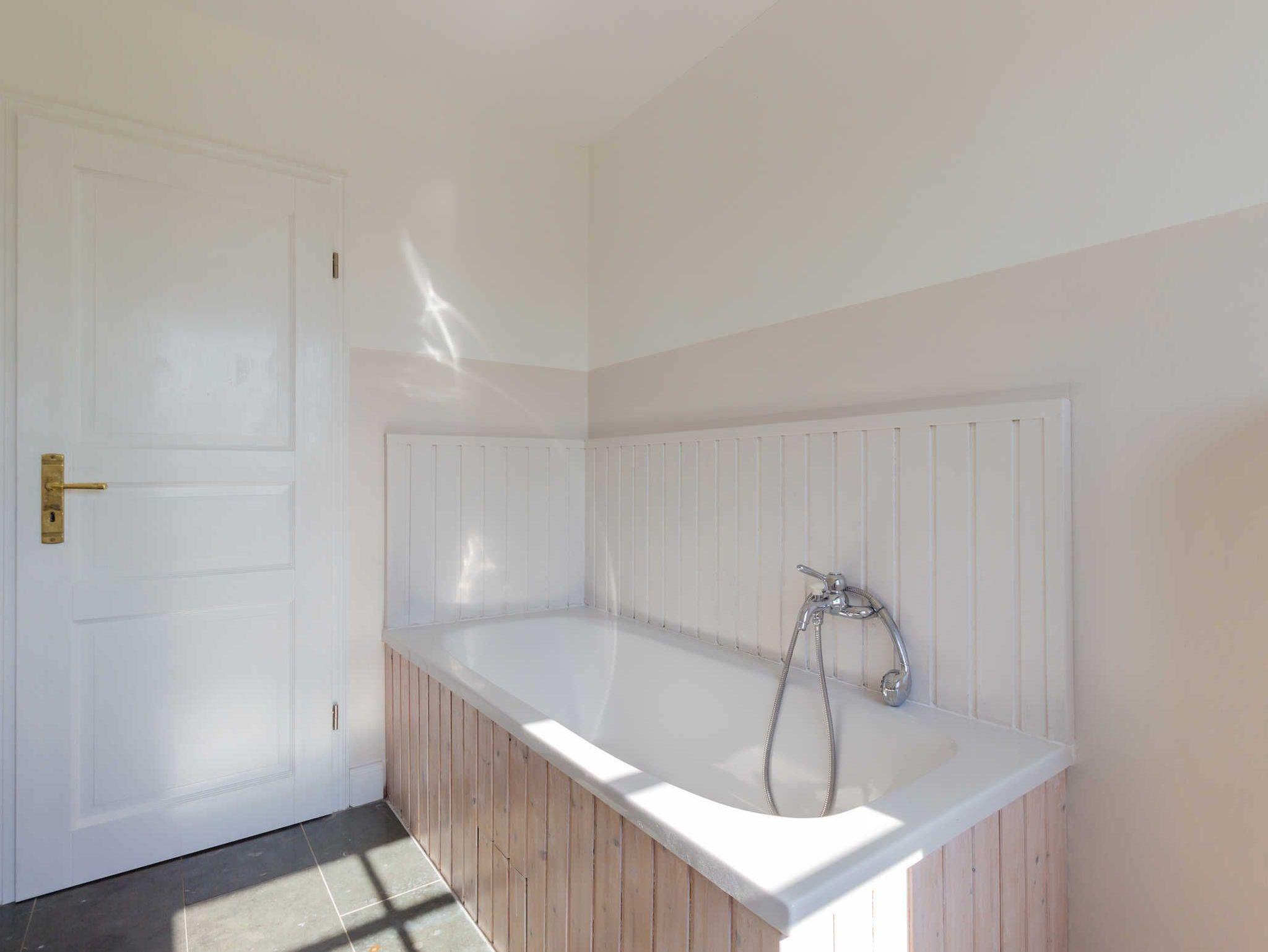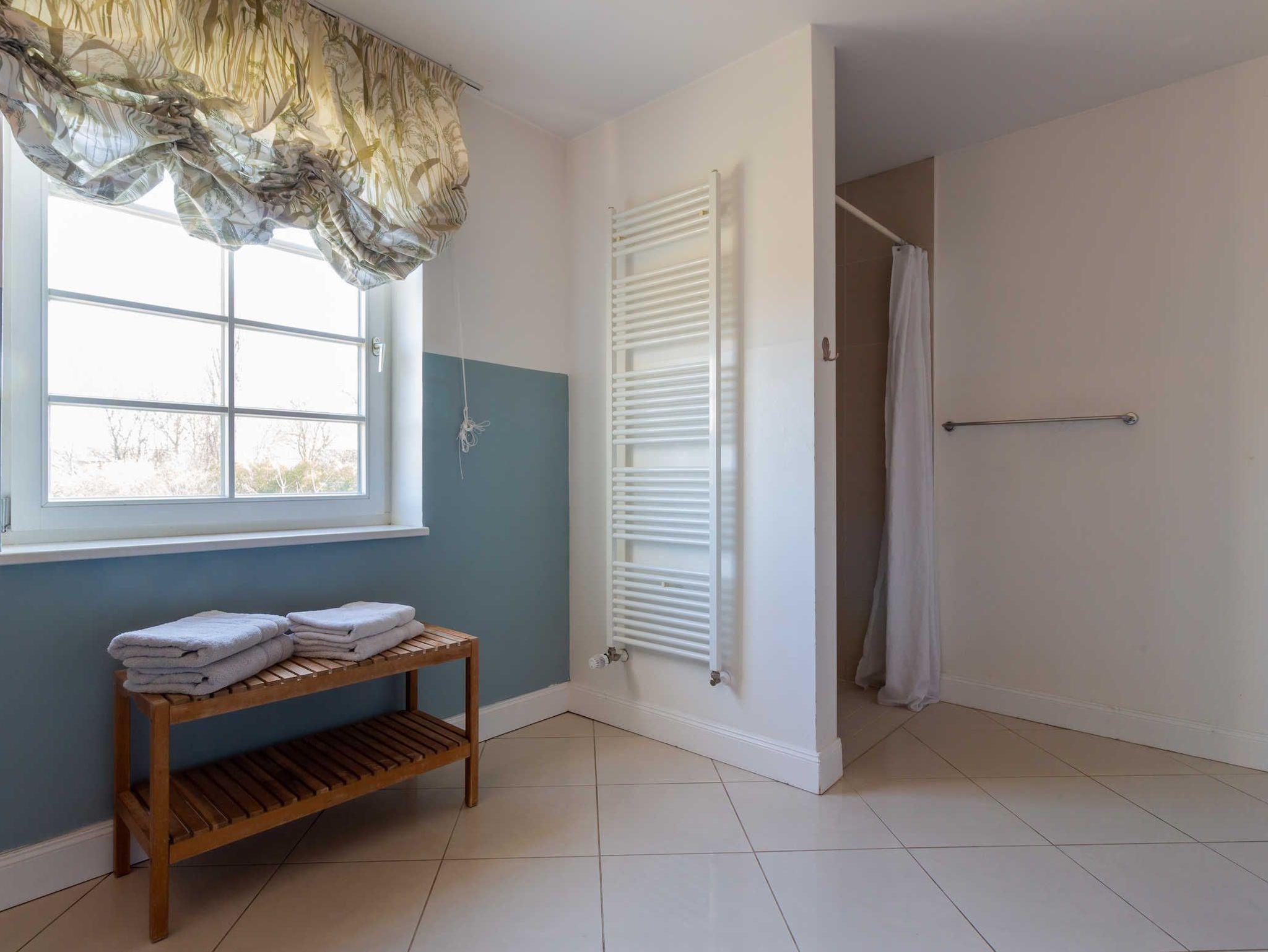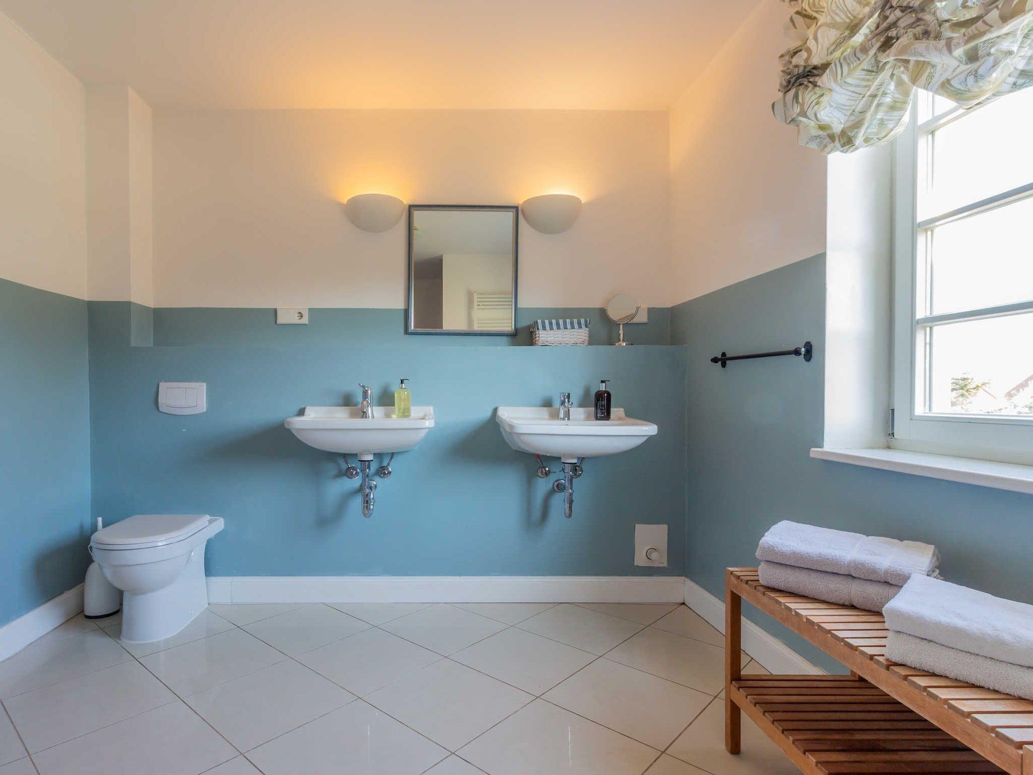 Bad 1 hat eine Wanne, Bad 2 eine Dusche, beide haben Fußbodenheizung.