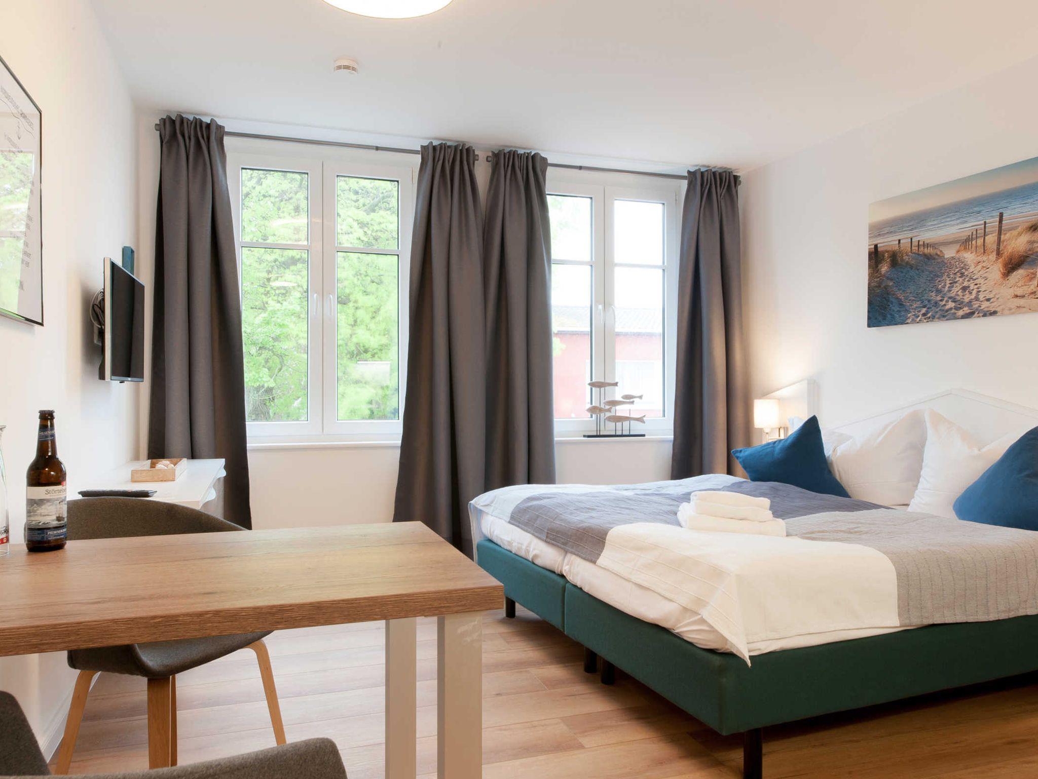 Die 1-Raum Appartements Vilm, Öhe und Ummanz befinden sich in dem Fischerdorf Wiek und sind nur 100m vom Hafen und ca. 5 Gehminuten von der AOK-Kurklinik entfernt. Sie sind zwischen 20 m² und 23 m² groß, im 1. Obergeschoss und jede hat einen eigenen PKW-Stellplatz.