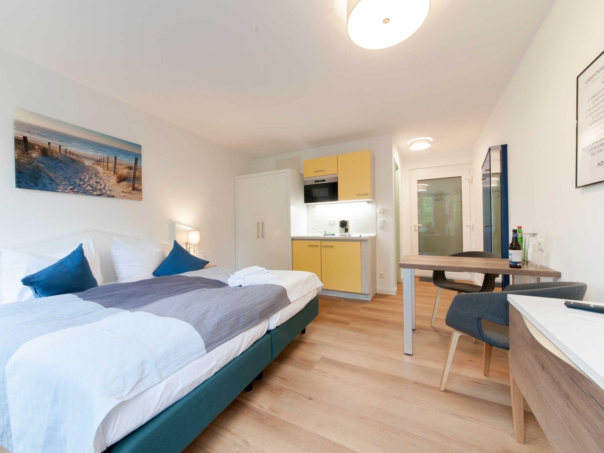 Das 1-Raum Appartement Vilm befindet sich in dem Fischerdorf Wiek auf der Insel Rügen und ist nur 100m vom Hafen und ca. 5 Gehminuten von der AOK-Kurklinik entfernt. Sie ist 22 m² groß und hat einen eigenen PKW-Stellplatz.