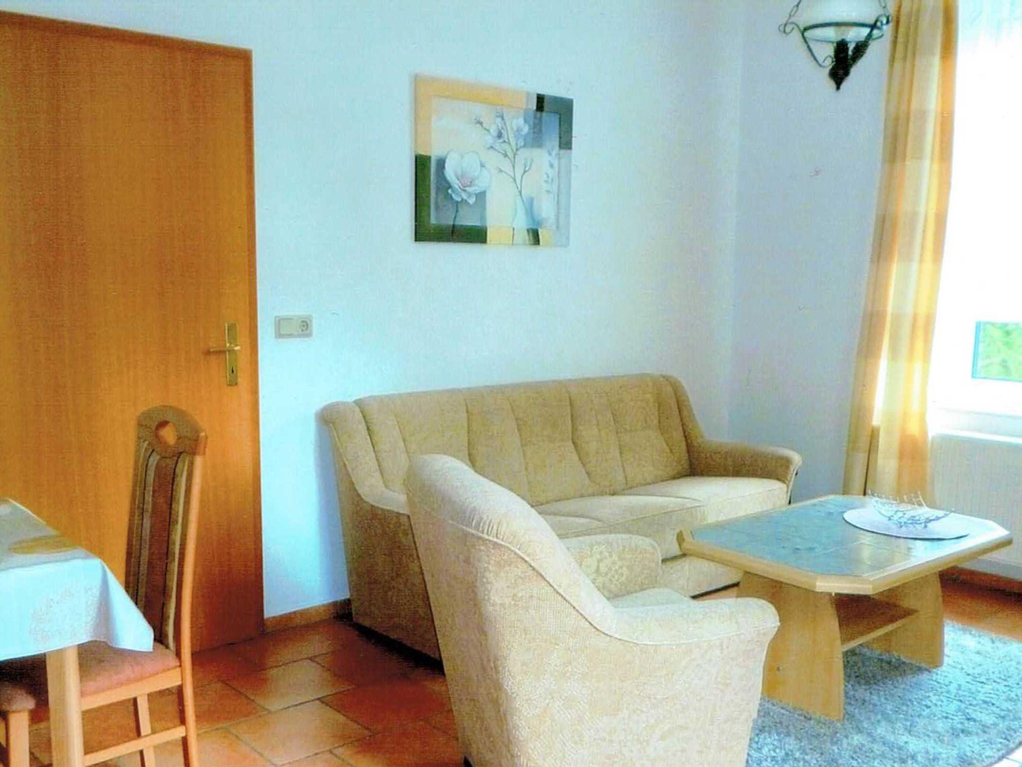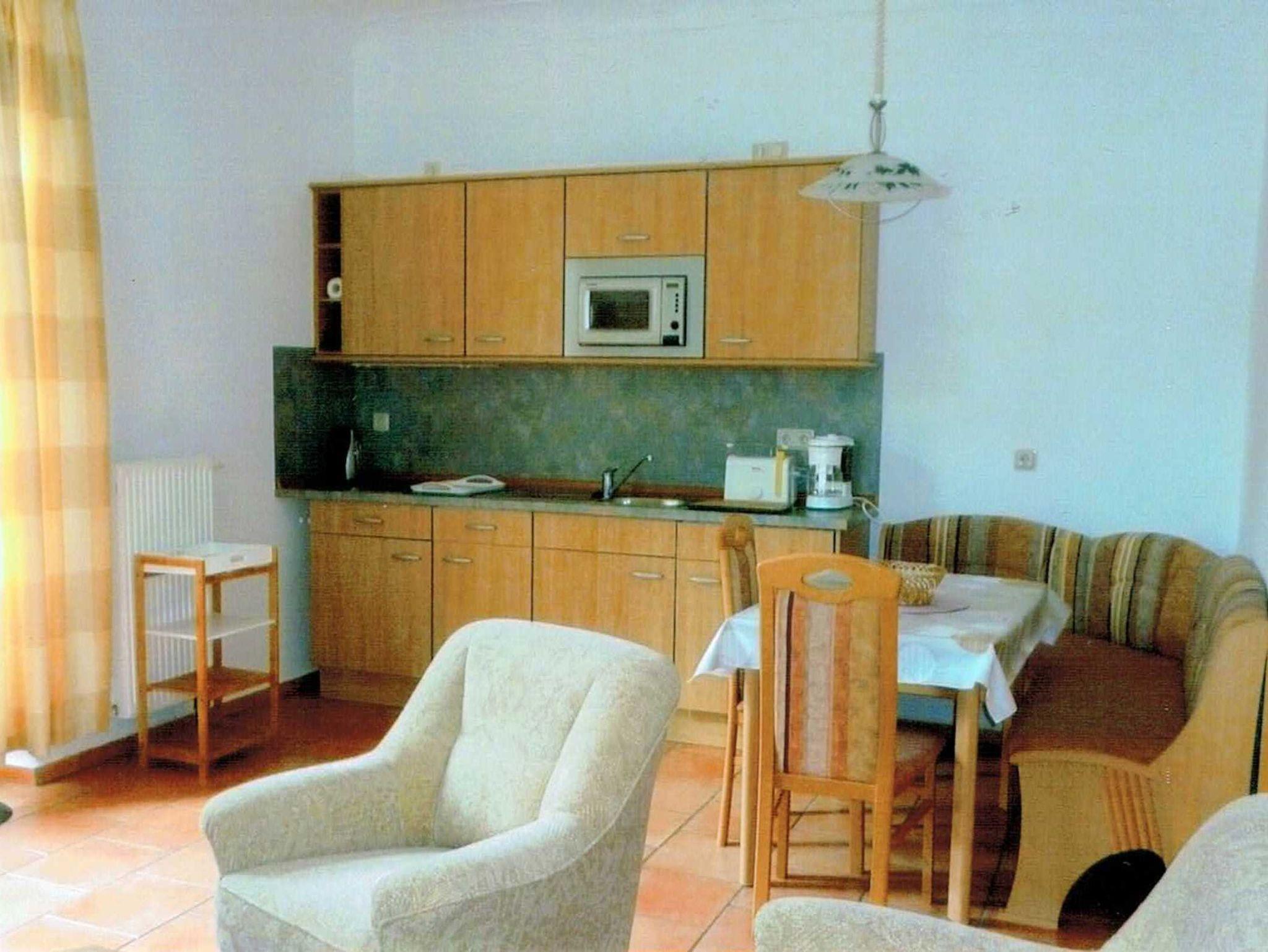 Die gemütlich eingerichtete Ferienwohnung mit einer eigenen Terrasse und separatem Eingang besteht aus einem Wohnzimmer mit der Sitzgruppe, TV einer Essecke sowie der Küchenzeile. Des weiteren steht Ihnen ein Schlafzimmer mit einem Doppelbett zur Verfügung. Bad mit DU/WC.