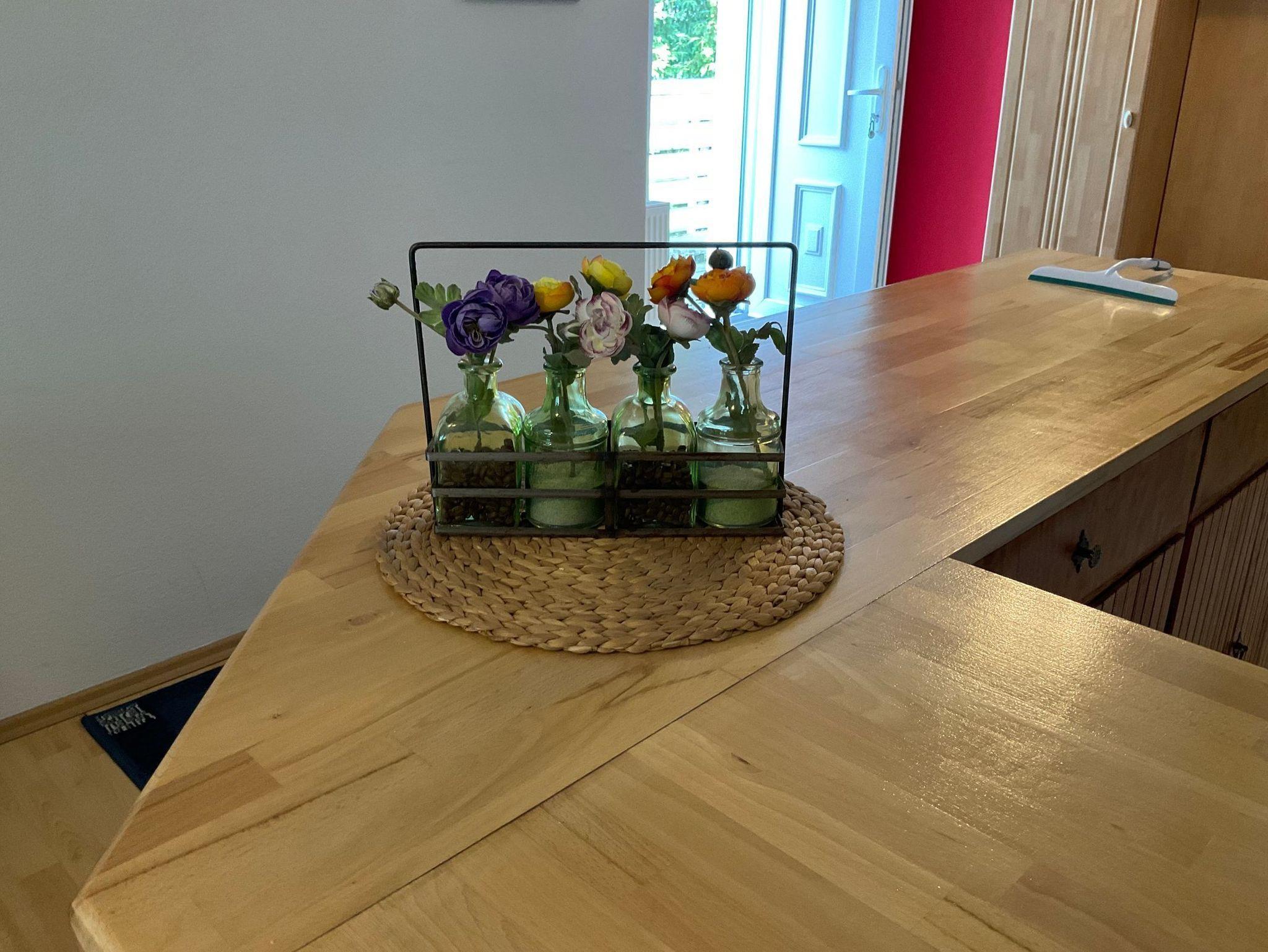 Die Ferienwohnung 4 befindet sich im Obergeschoß und ist über eine Außentreppe zu erreichen. Sie verfügt über einen Wohn-/Schlafraum mit Küchenzeile, einer gemütlichen Sitzgruppe und einem Doppelbett, (Sat TV, Radio). -Bad mit DU/WC. Das großzügige Grundstück läden zur aktiven Erhohlung ein.
