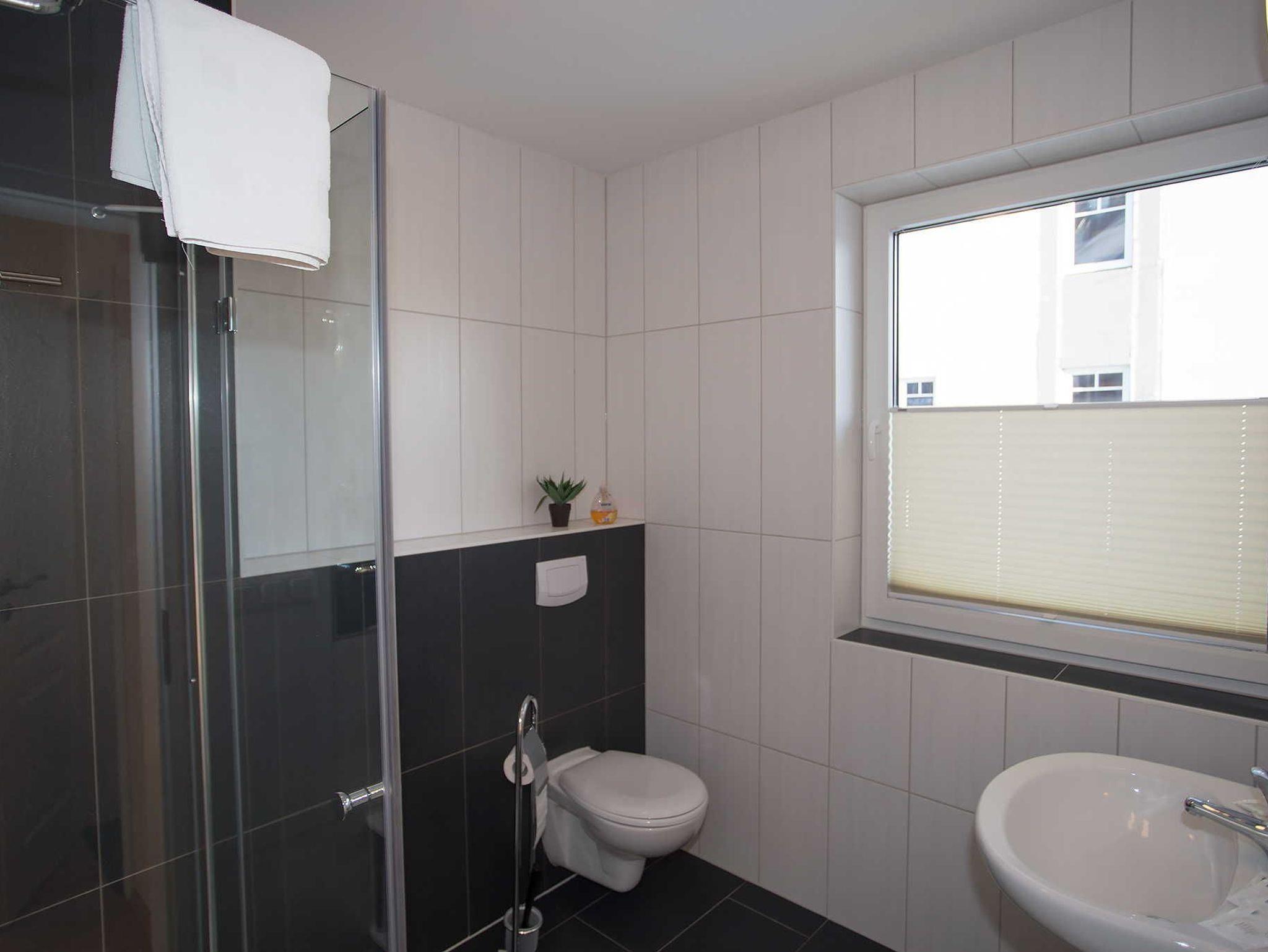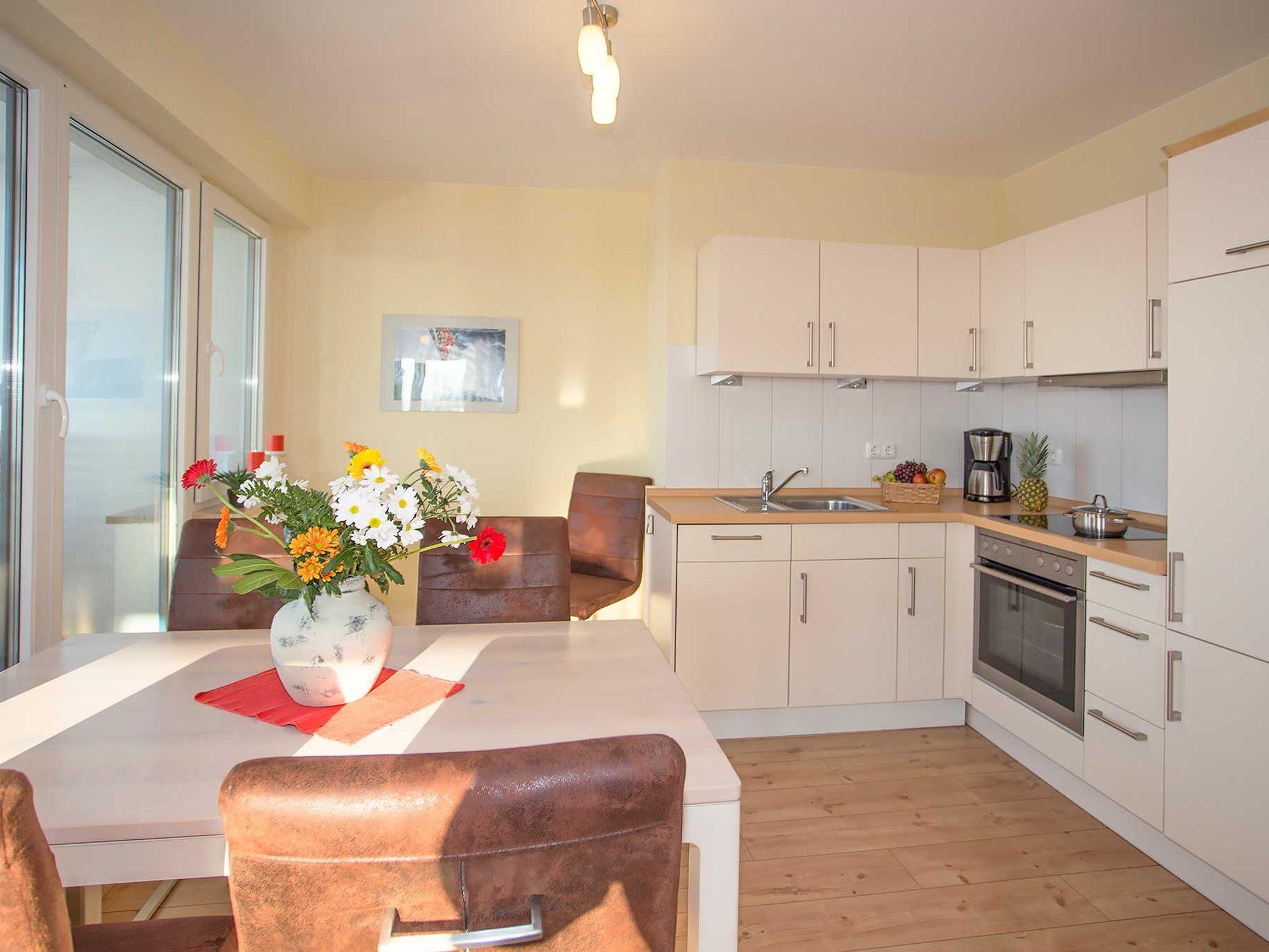 Das Bad hat eine ebenerdige Dusche und ein Fenster (siehe Beispielbild bei den Außenansichten). Die Wohnküche ist voll ausgestattet. In den Ferienwohnungen im Haus Hafenkieker in Wiek darf nicht geraucht werden.
