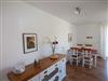 Der Wohnraum ist geschmackvoll eingerichtet und verfügt über einen Flachbild-TV, einem Lowboard sowie einer ausziehbaren roten Couch und einem großen massiven Holzesstisch mit 6 Stühlen. Vom Wohnraum ist der Zugang zur großen Terrasse gegeben.