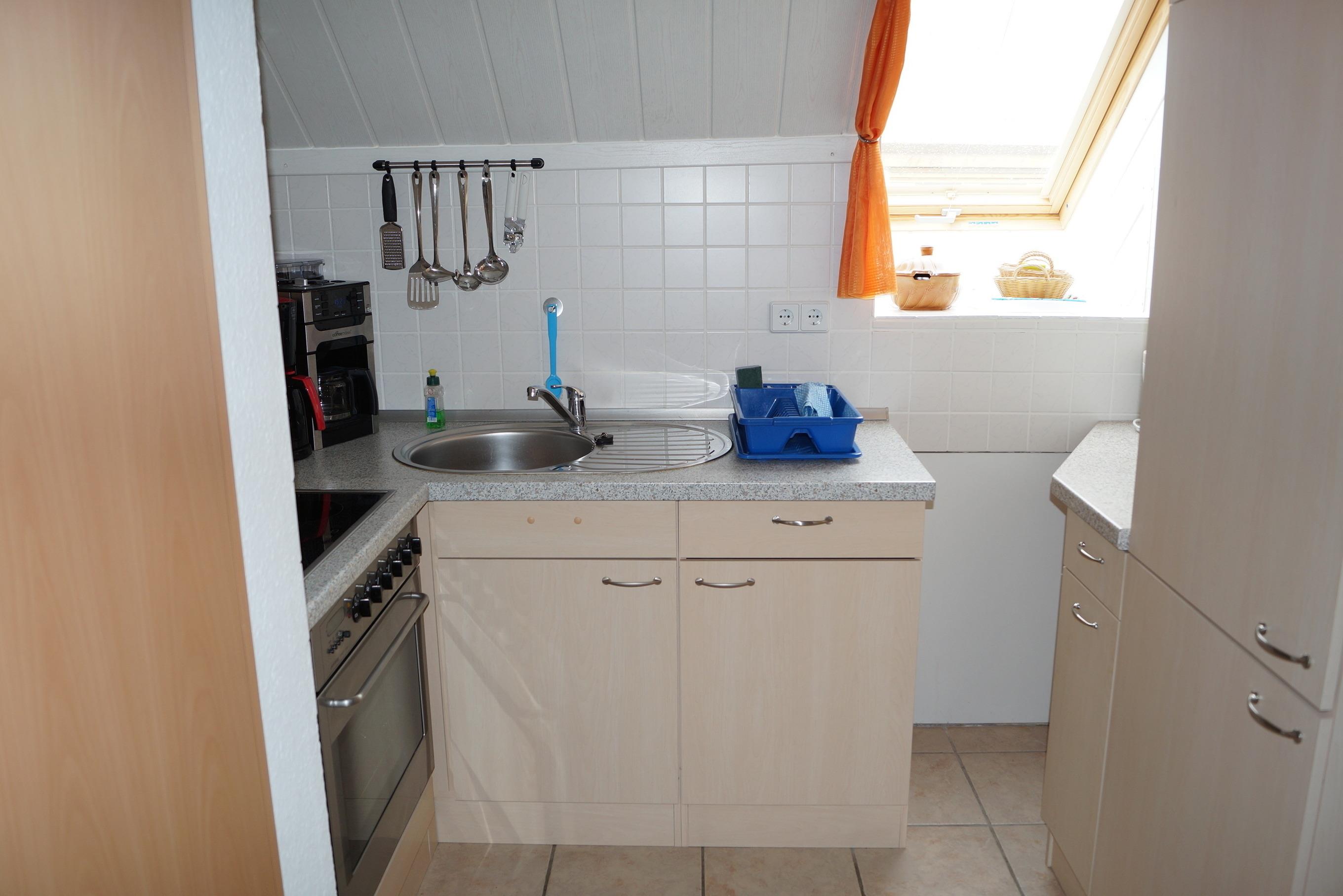 Das Wohnzimmer ist mit einer Couch (für den dritten Gast), einer Essecke sowie mit SAT-TV-Gerät, Radio und DVD-Player ausgestattet. Sie finden eine Küche mit einer Küchenzeile mit Elektroherd (Ceranfeld), Kühl-Gefrierschrank, Mikrowelle , Geschirrspüler und Kaffeemaschine.