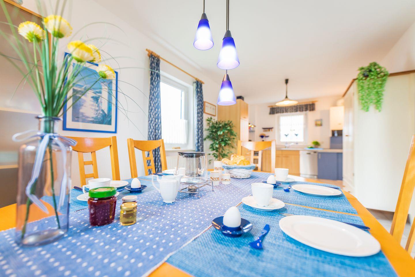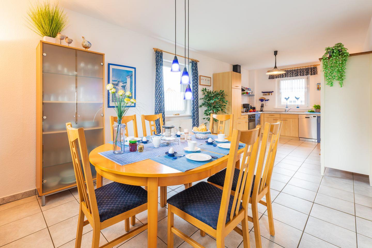 Willkommen im Ferienhaus „Mühlengrund“ – Ihrem Rückzugsort für entspannte Tage mit der ganzen Familie! Das freistehende Haus in ruhiger Lage bietet auf einem großzügigen, teilweise eingezäunten Grundstück viel Raum zum Entspannen – auch für Ihren Hund. Der lichtdurchflutete Wohnbereich öffnet sich direkt zum Garten und zur teils überdachten, möblierten Terrasse, die auch an milden Regentagen zum Verweilen einlädt. Zwei Schlafzimmer im Obergeschoss sowie eine Schlafcouch im Wohnzimmer bieten Platz für bis zu sechs Personen. Die voll ausgestattete Küche ist ideal, um gemeinsam Mahlzeiten zuzubereiten und den Tag gemütlich ausklingen zu lassen. Zwei private PKW-Stellplätze direkt am Haus sorgt für zusätzliche Bequemlichkeit.