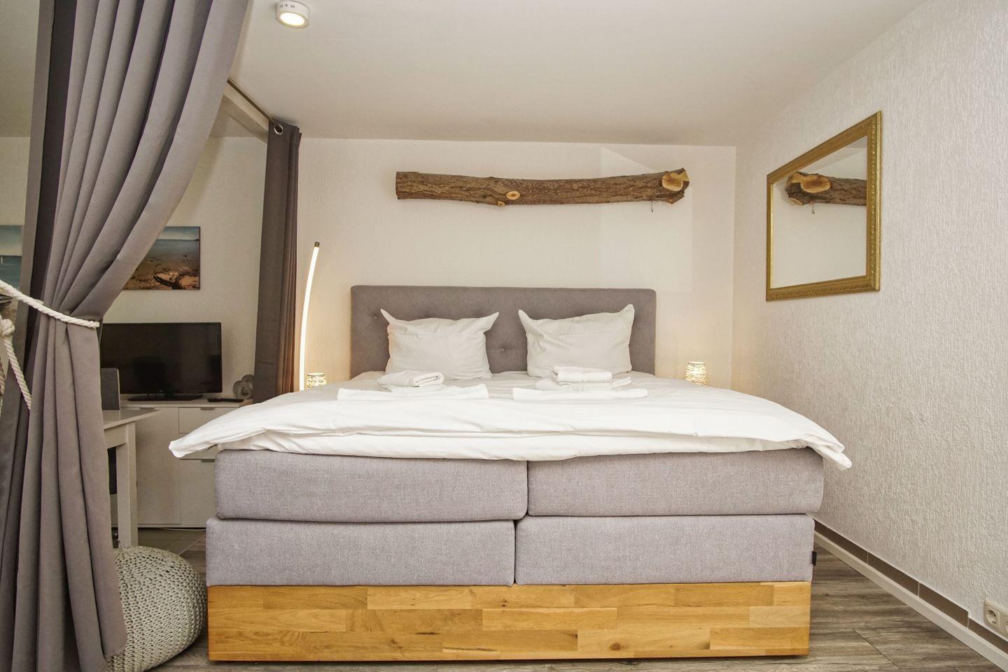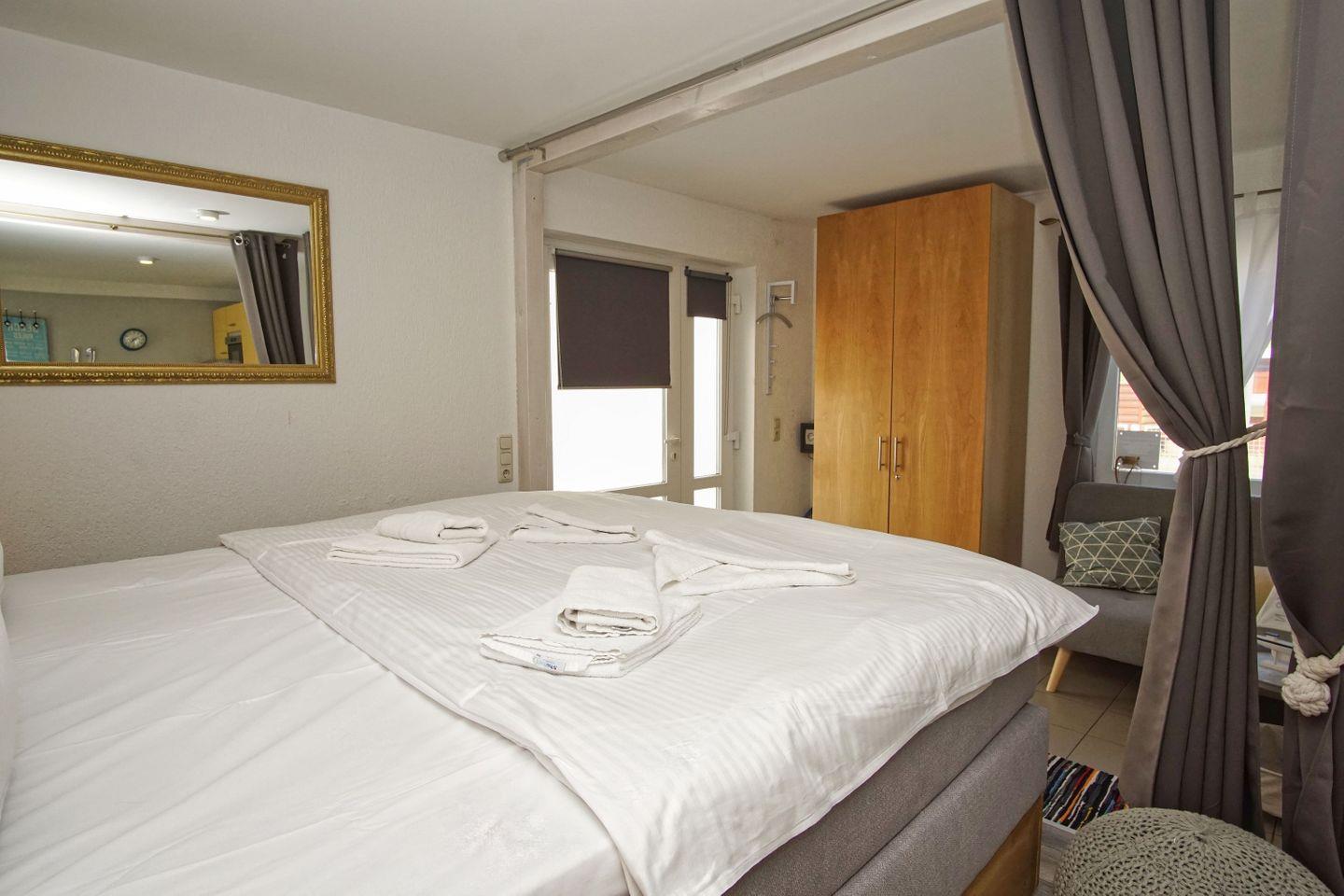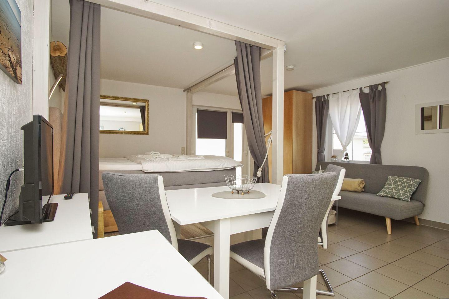 ALLGEMEINE ECKDATEN // 1-Raum-Ferienwohnung für bis zu 3 Personen (vorzugsweise 2 Erwachsenen und ein Kind), 36 m², kleiner Garten mit Strandkorb, Hund willkommen ++