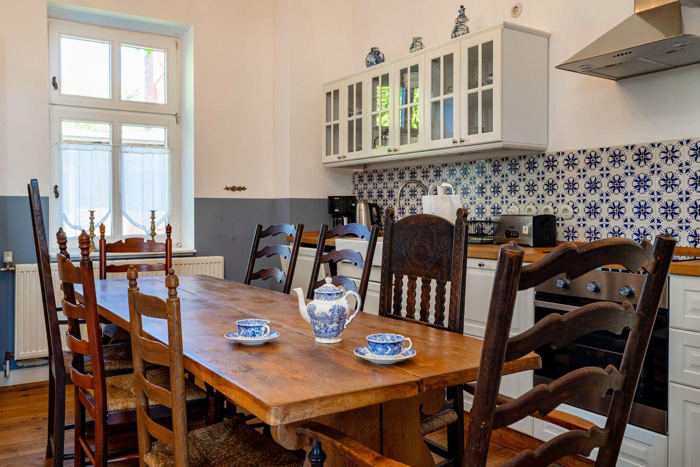 KÜCHE // geschlossenen Küche mit Essbereich, Ceranfeld, Kühlschrank mit Gefrierfach, Spülmaschine, Backofen, Toaster, Wasserkocher, Kaffeemaschine, reichlich Besteck, Geschirr und Küchenutensilien ++