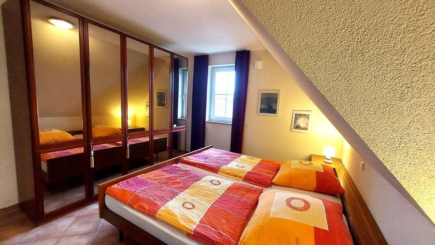 Des weiteren verfügt Ihr Feriendomizil über ein geräumiges Schlafzimmer mit Doppelbett und einem Bad mit DU/WC. Wir halten auch ein Zustell-Kinderbett für Sie bereit.