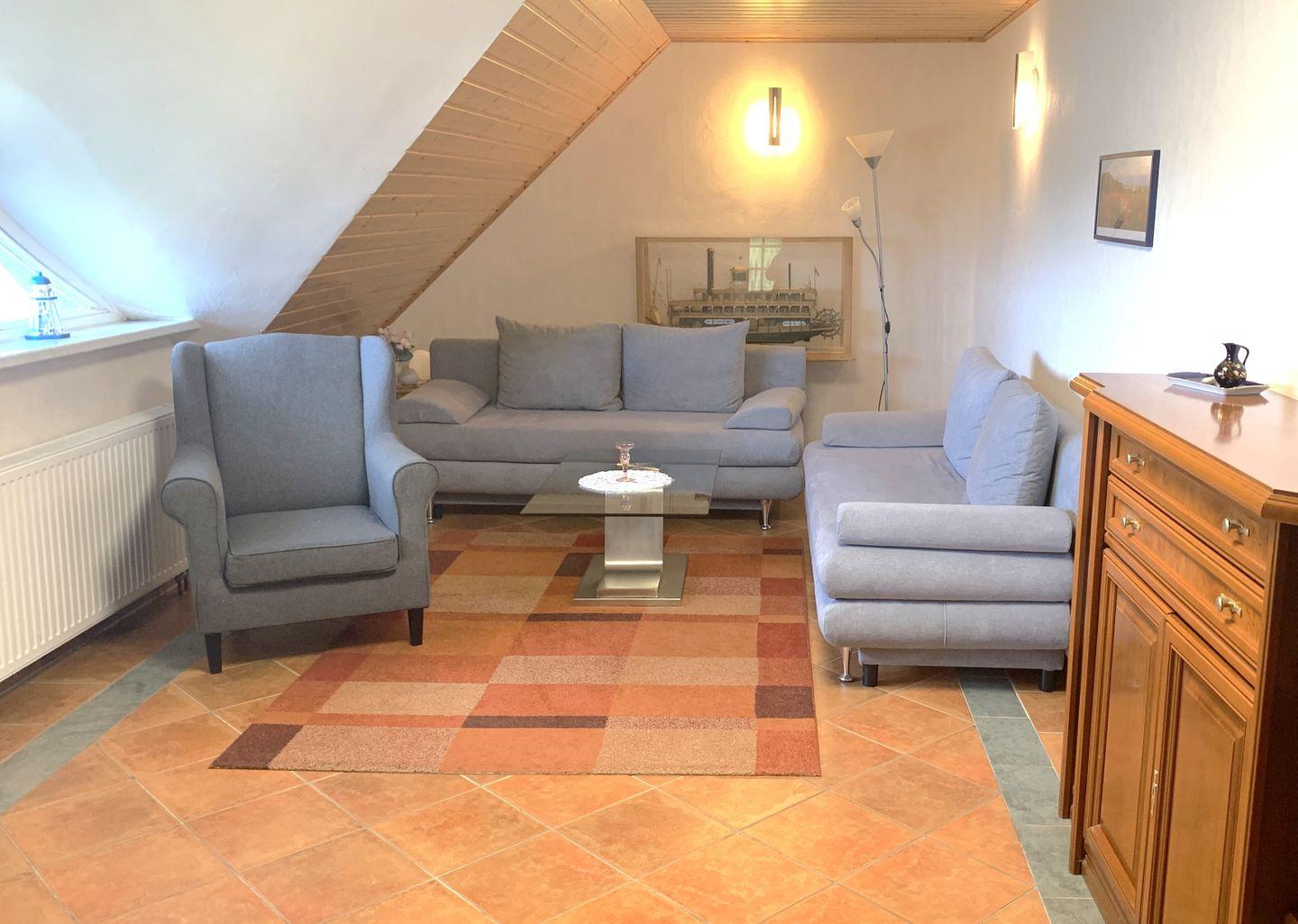 Die Ferienwohnung 3 liegt im Obergeschoss des Hauses Strandlatscher, direkt unter dem Reetdach. Von hier aus genießen Sie einen herrlichen Blick über den Wieker Bodden bis hin zur Insel Hiddensee. Der eigene kleine Strand mit Steg liegt nur wenige Schritte entfernt und lädt zum Baden, Paddeln, Surfen oder Angeln ein - ein idealer Ort für Naturliebhaber und Wassersportfreunde.