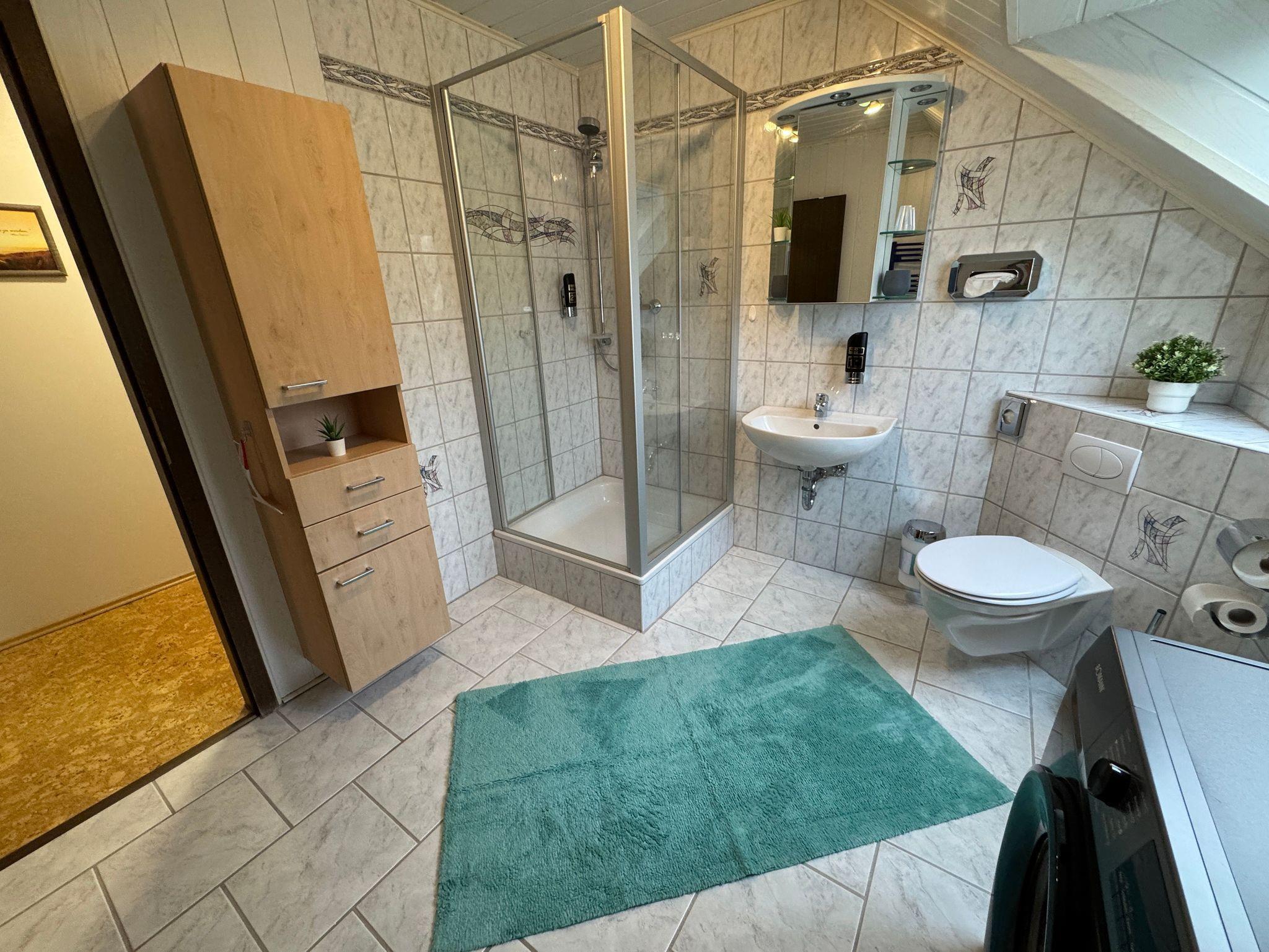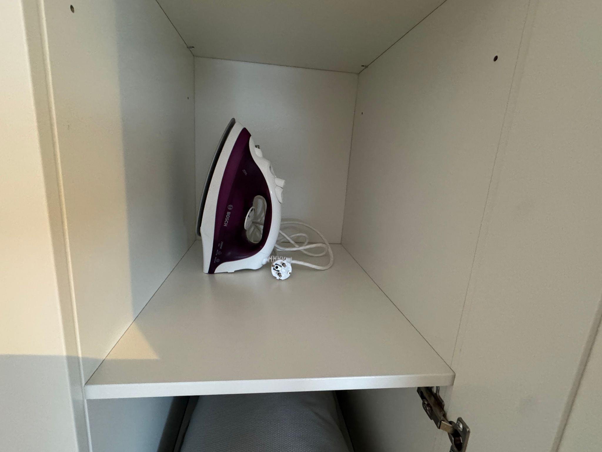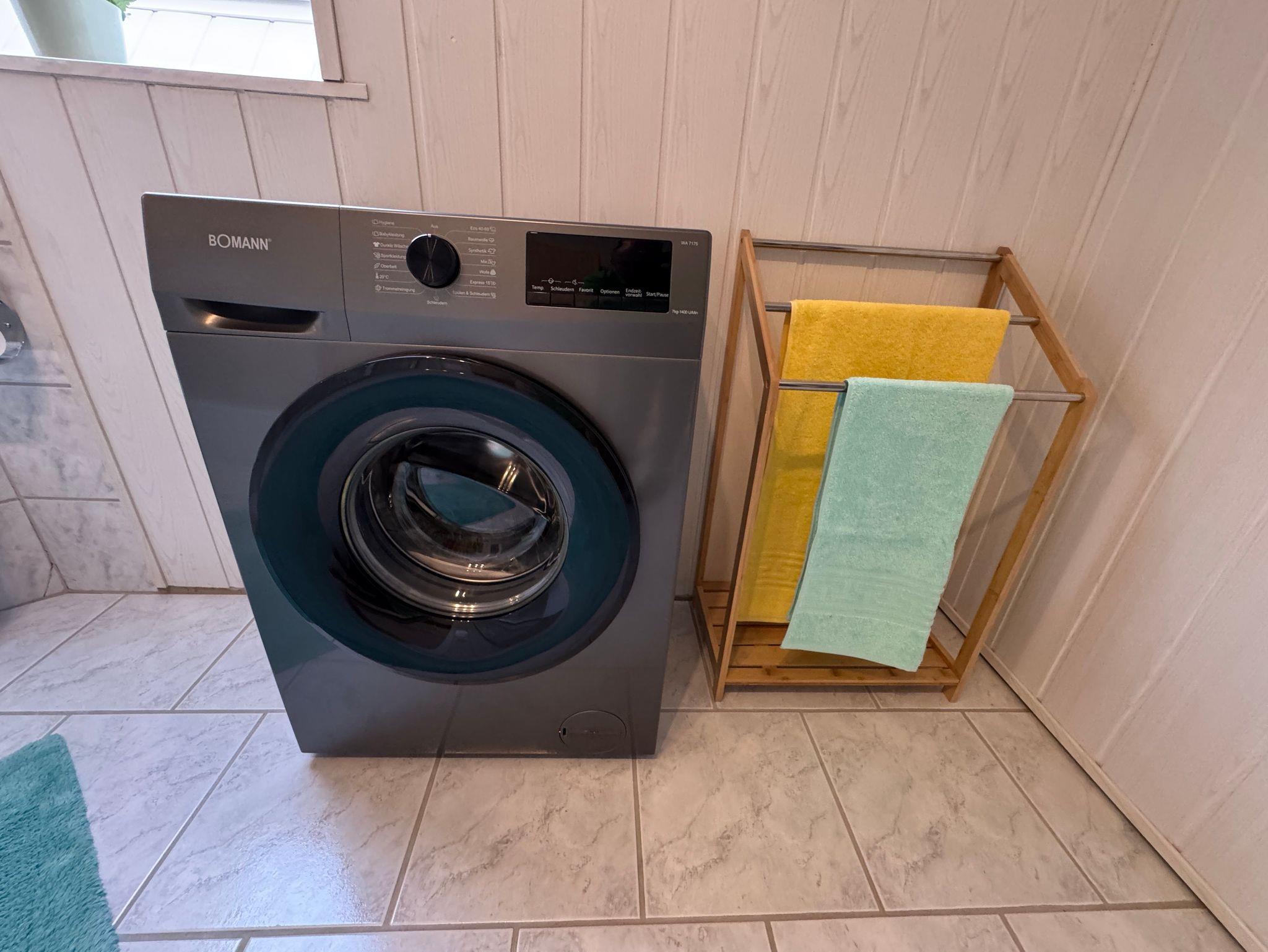 Außerdem sind ein Fernseher, eine Waschmaschine und ein Hochstuhl vorhanden.