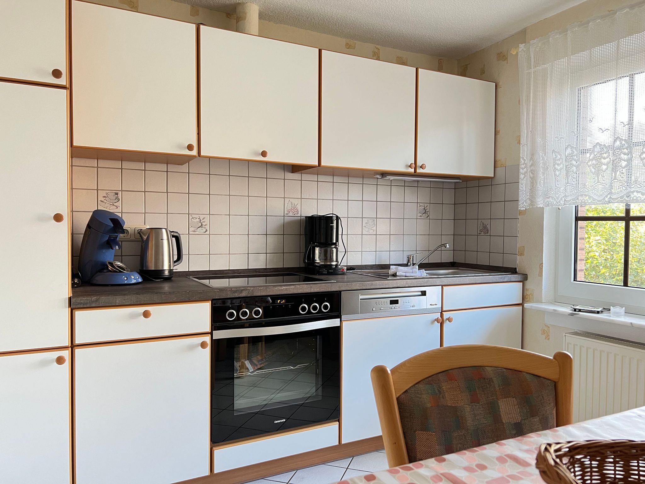 Die Wohnung ist ausgestattet mit einem großzügigen Schlafzimmer im Landhausstil mit Doppelbett, einer Küche inkl. allem was Sie zum täglichen Leben brauchen, einem Bad mit Dusche und WC ( inkl. Waschmaschine ) einer Diele und einem großen Wohnzimmer mit Ledergarnitur, Fernsehecke ( LED-Flachbildschirm u. Blue ray Player , Digitalem Sat - Receiver und einer Stereo-Anlage sowie Smart TV Fernsehn ).