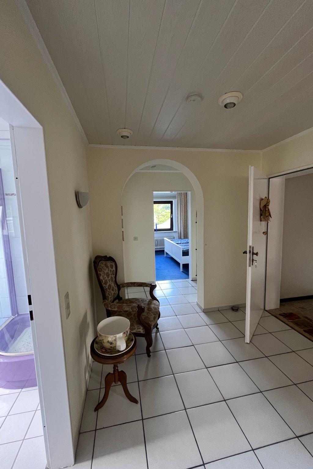 The holiday flat is fully equipped with dishwasher, washing machine, microwave, coffee machine, toaster, flat screen satellite TV, free WLAN, a south-facing balcony for breakfast in the sun, a covered solar-heated pool with a bathing staircase, which facilitates access to the pool. The pool can be used from the beginning of April to mid-September. The covered barbecue and seating area in the garden invites you to spend cosy evenings outside in the fresh air.storage space for bicycles.SPECIAL FEATURES:The wheelchair lift in front of the house and the stair lift in the stairwell provide step-free access to the holiday flat.