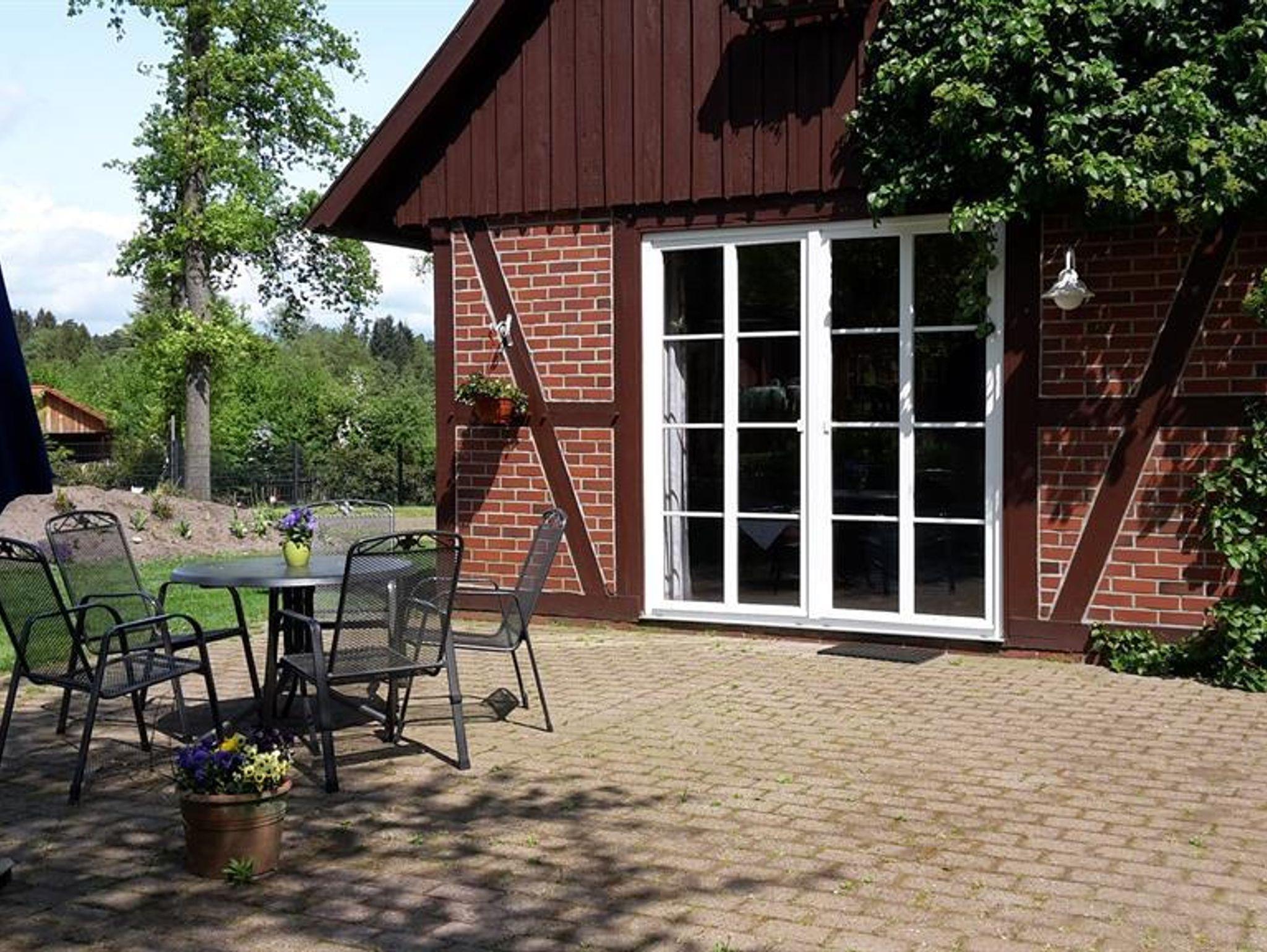 Das gemütliche Fachwerk-Ferienhaus, ein ehemaliges Backhaus, befindet sich separat in einem kleinen Park neben dem Hofgelände am Bauerngarten.