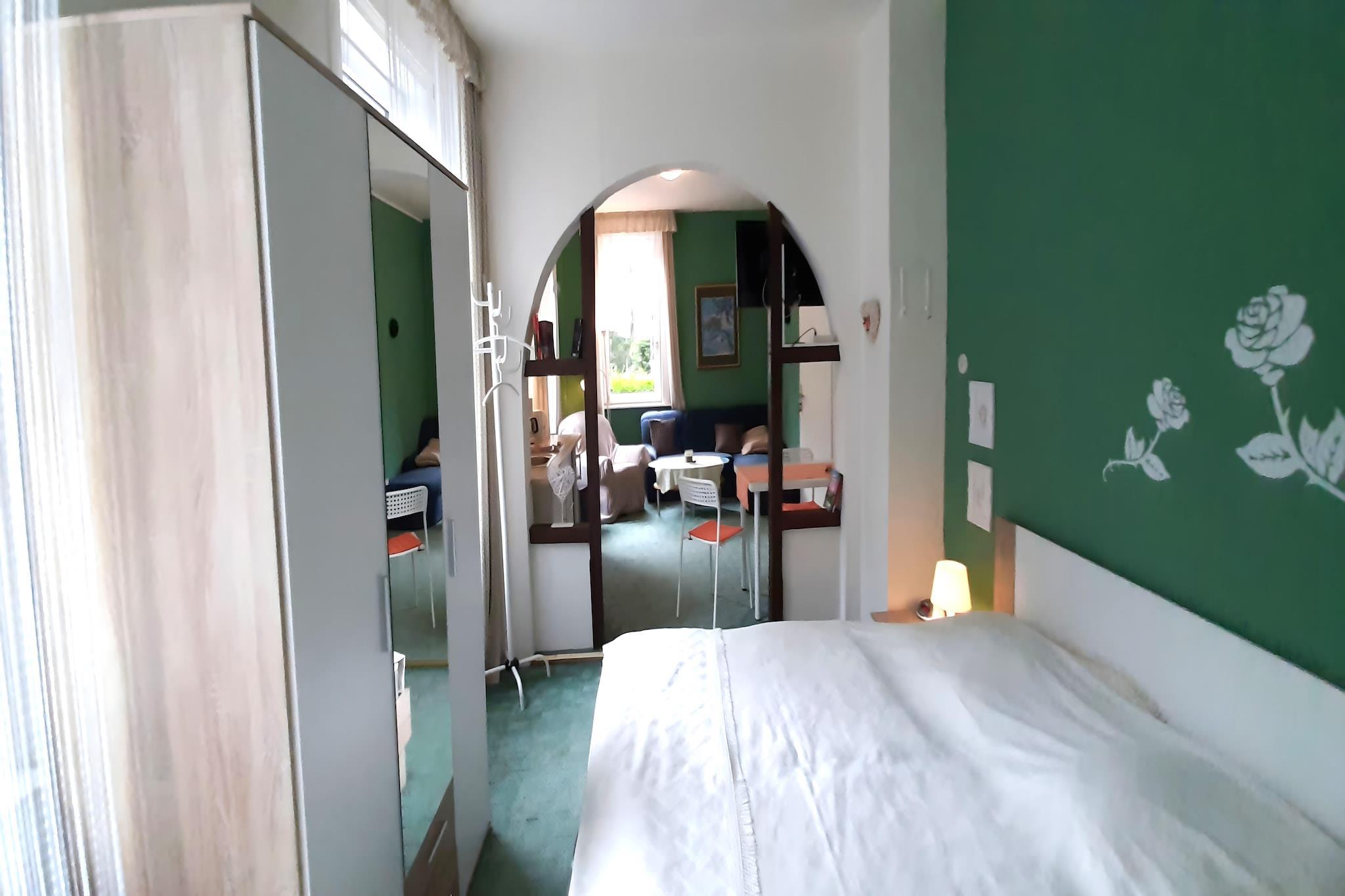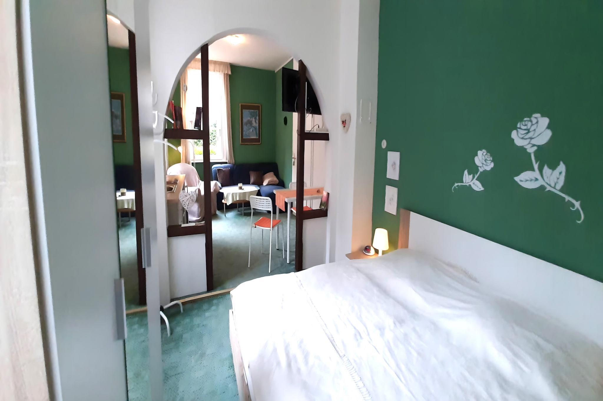 Denne kæledyrsvenlige lejlighed i stueetagen i Wildemann tilbyder et fredeligt tilflugtssted kun 100 meter fra byens centrum og skoven. Ideel for par eller solorejsende, det er en perfekt base for at udforske Harzen-regionens kulturelle og naturlige perler. I nærheden afslører 19-Lachter-Stollen-minen byens minearv, mens det kejserlige palads i Goslar og Gustav Adolfs stavkirke fremviser fantastisk arkitektur og historie. Naturelskere vil nyde naturskønne vandreture til Feigenbaumklippe og Treppenstein. Indvendigt har lejligheden en indbydende stue med spisebord, opholdsområde og kabel-tv. Det åbne køkken er udstyret med kaffemaskine, elkedel, komfur og køleskab - perfekt til at tilberede enkle måltider. Et komfortabelt soveværelse med en dobbeltseng og en-suite badeværelse sikrer privatliv og afslapning. Centralvarme og parkering på stedet tilføjer til bekvemmeligheden, hvilket gør det til en hyggelig helårsferie. Omgivet af skovstier og kun 7 km fra skiløjperne, er beliggenheden ideel til udendørs eventyr. Spisemuligheder i nærheden omfatter det hjertelige Harzer Speisekammer, den indbydende Cafe am Bohlweg Georgiew og den italiensk-inspirerede Piccolo Mondo Hahnenklee.