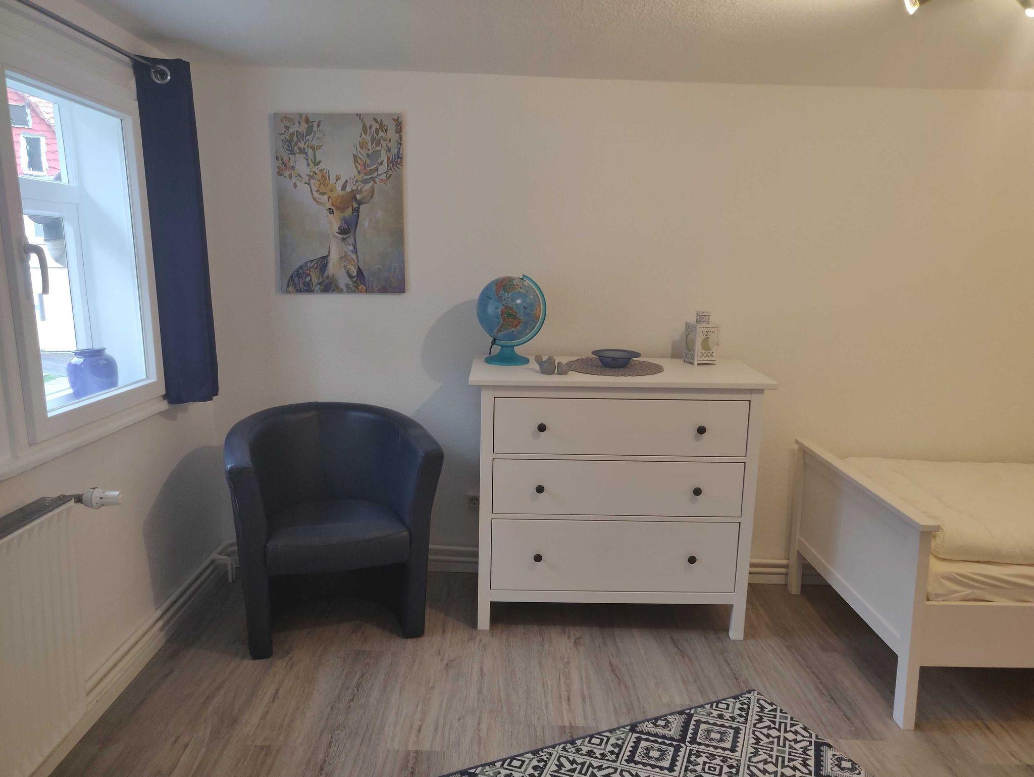 Es handelt sich um ein 100qm großes Haus mit 2 Schlafzimmern (4 Betten) auf 2 Etagen. Die Schlafzimmer befinden sich in der oberen Etage. Da es sich um ein altes, denkmalgeschütztes Haus handelt, hat das Objekt einige Ecken und Kanten und eine niedrige Deckenhöhe von ca. 2,05m.
