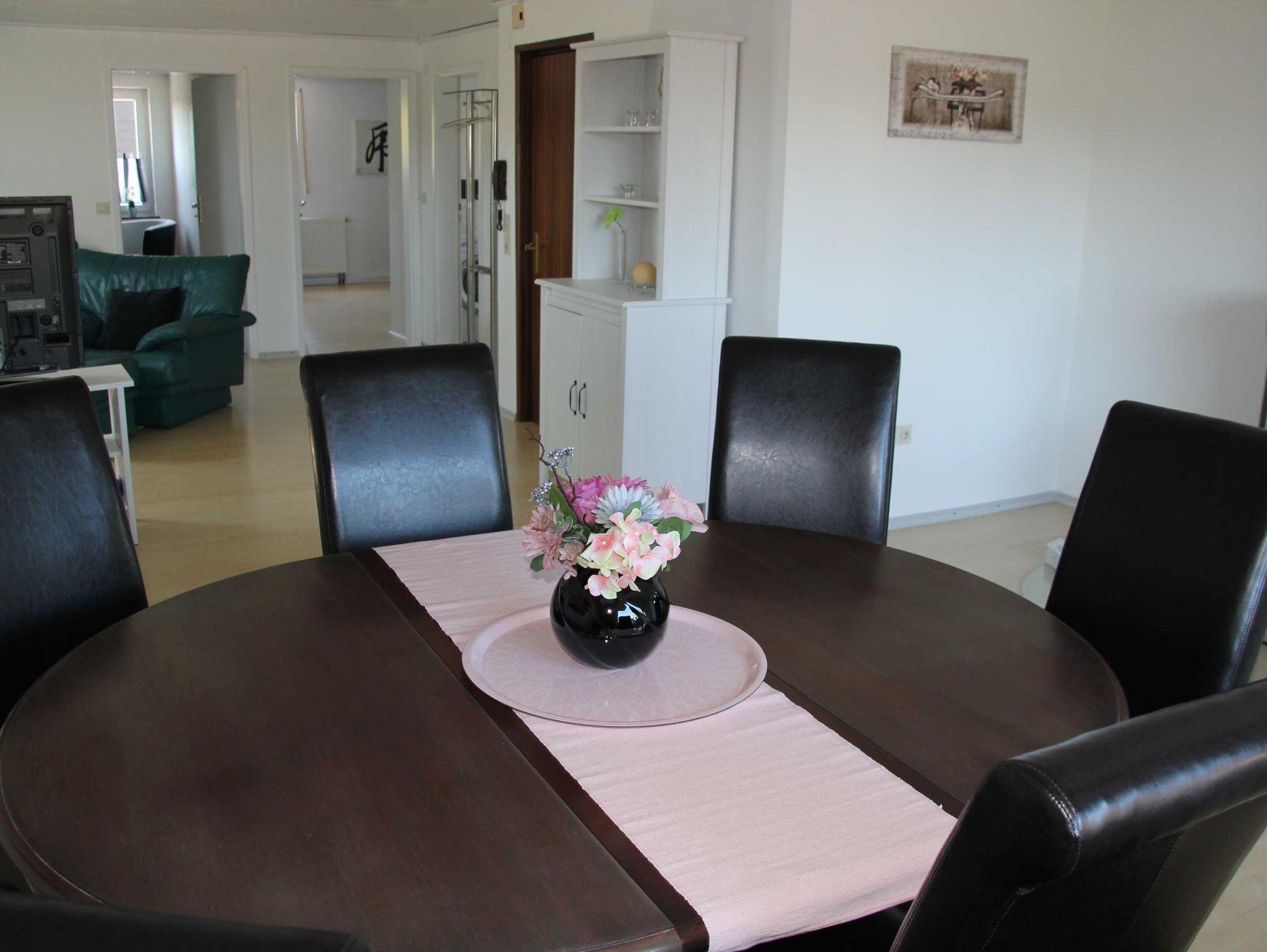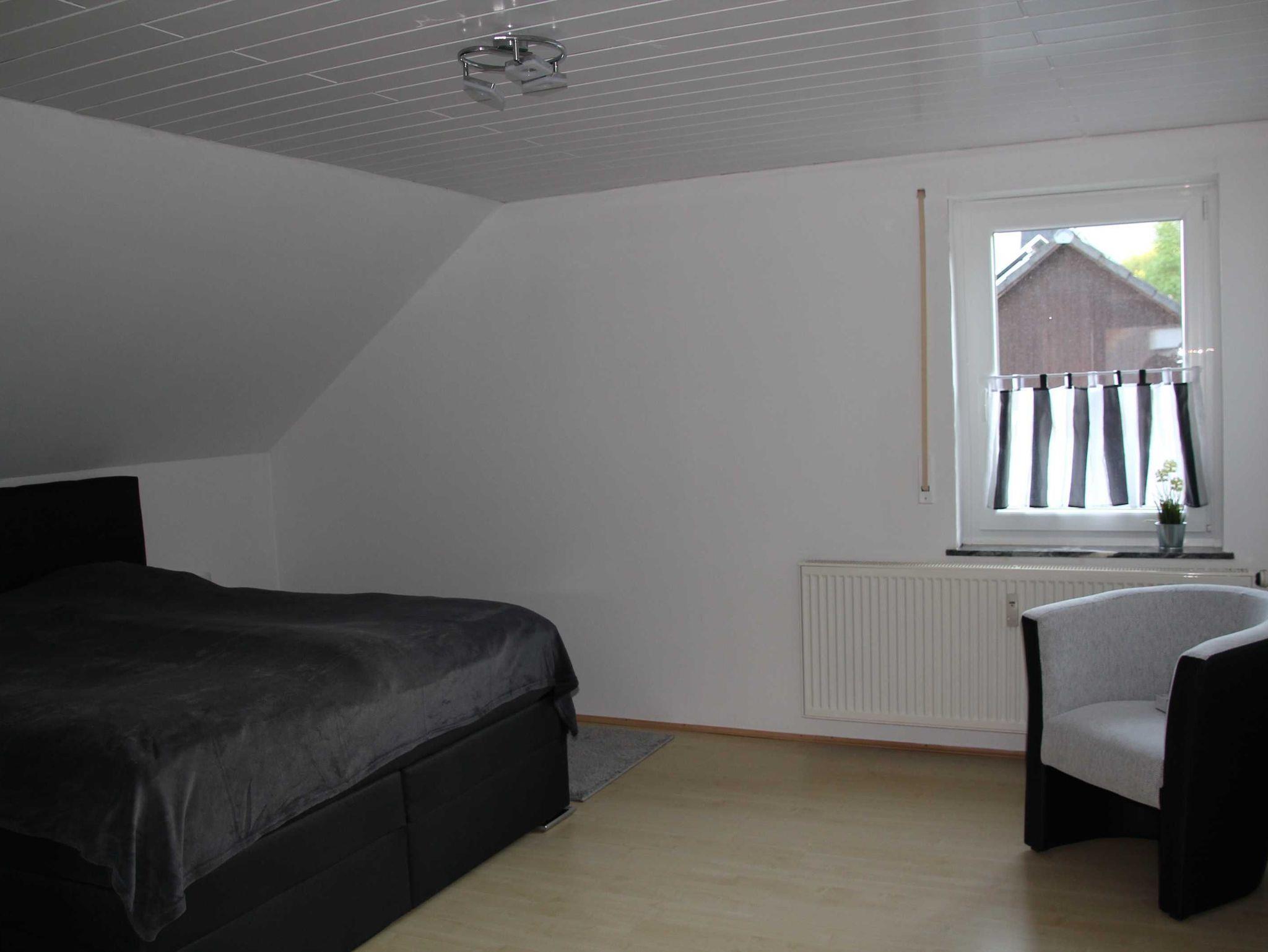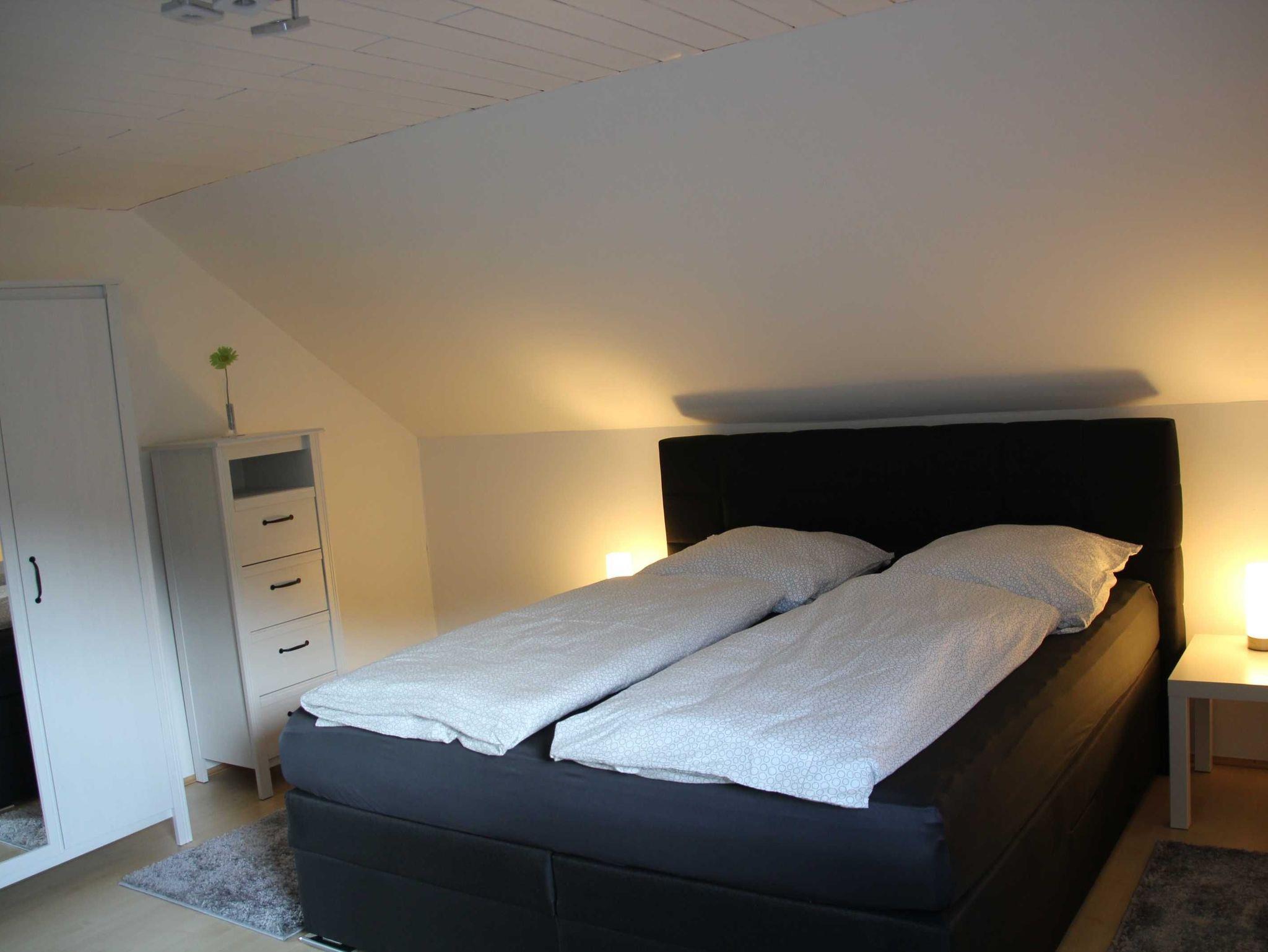Die neu renovierte Wohnung mit ihren großzügigen 120qm, befindet sich im Obergeschoß mit Balkon und hat ausreichend Platz für 4-6 Personen. Sie bietet eine neu eingerichtete Küche und einem großzügigen Wohnzimmer. Zwei große Schlafzimmer mit 180cm Boxspringbetten sorgen für erholsamen Schlaf. Ein 140cm Futonbett im Wohnzimmer für 5. und 6. Person. Großes Bad mit Doppelwaschbecken und einer begehbaren geräumigen Dusche, die Platz für Zwei bietet. Der moderne Kaminofen kümmert sich um die Gemütlichkeit im Winter. Einkaufsmöglichkeiten mit Bäcker sind im Ort vorhanden.