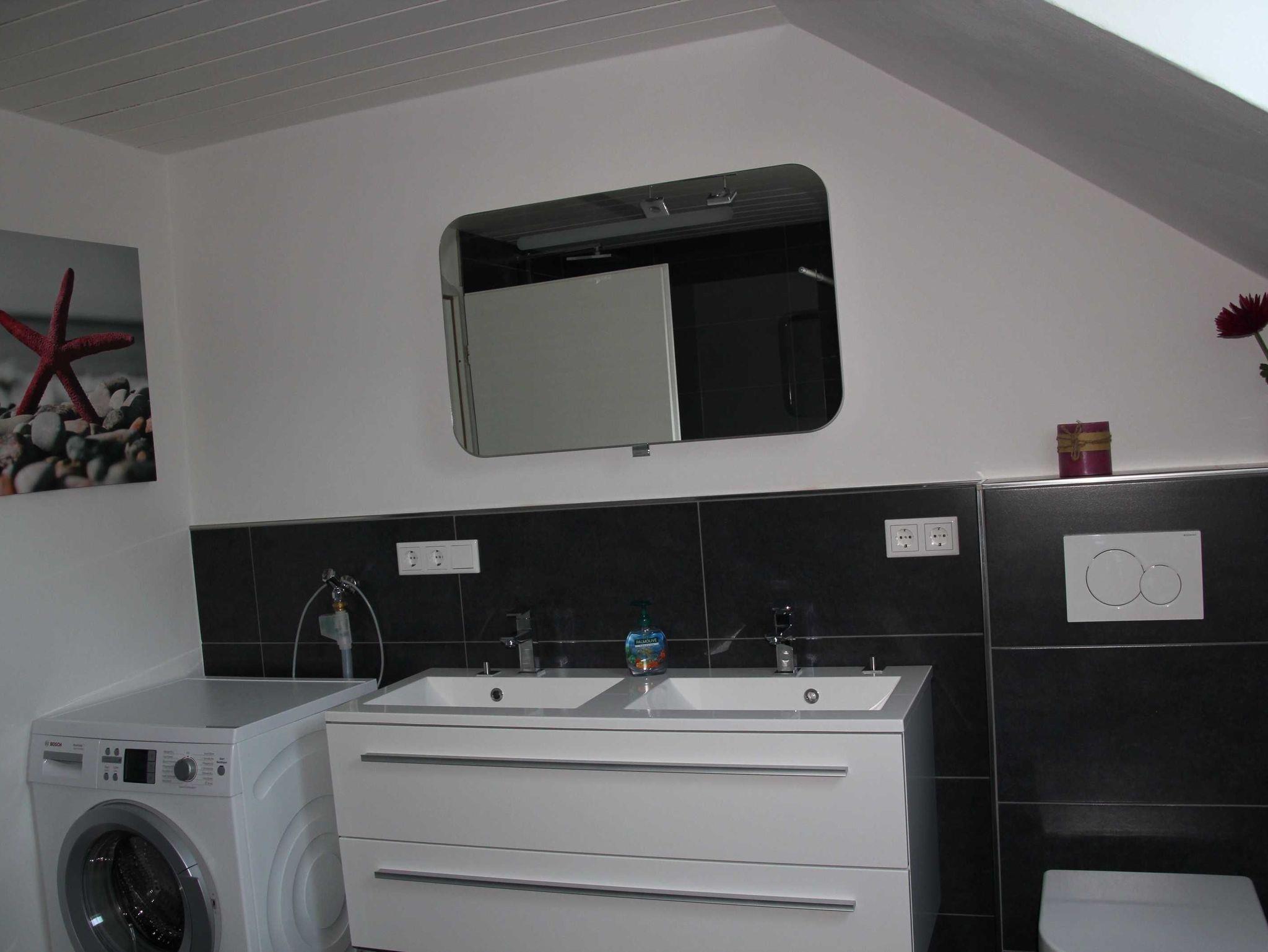 Die neu renovierte Wohnung mit ihren großzügigen 120qm, befindet sich im Obergeschoß mit Balkon und hat ausreichend Platz für 4 Personen. Sie bietet eine neu eingerichtete Küche und einem großzügigen Wohnzimmer. Zwei große Schlafzimmer mit 180cm Boxspringbetten sorgen für erholsamen Schlaf. Großes Bad mit Doppelwaschbecken und einer begehbaren geräumigen Dusche, die Platz für Zwei bietet. Der moderne Kaminofen kümmert sich um die Gemütlichkeit im Winter. Einkaufsmöglichkeiten mit Bäcker sind im Ort vorhanden.