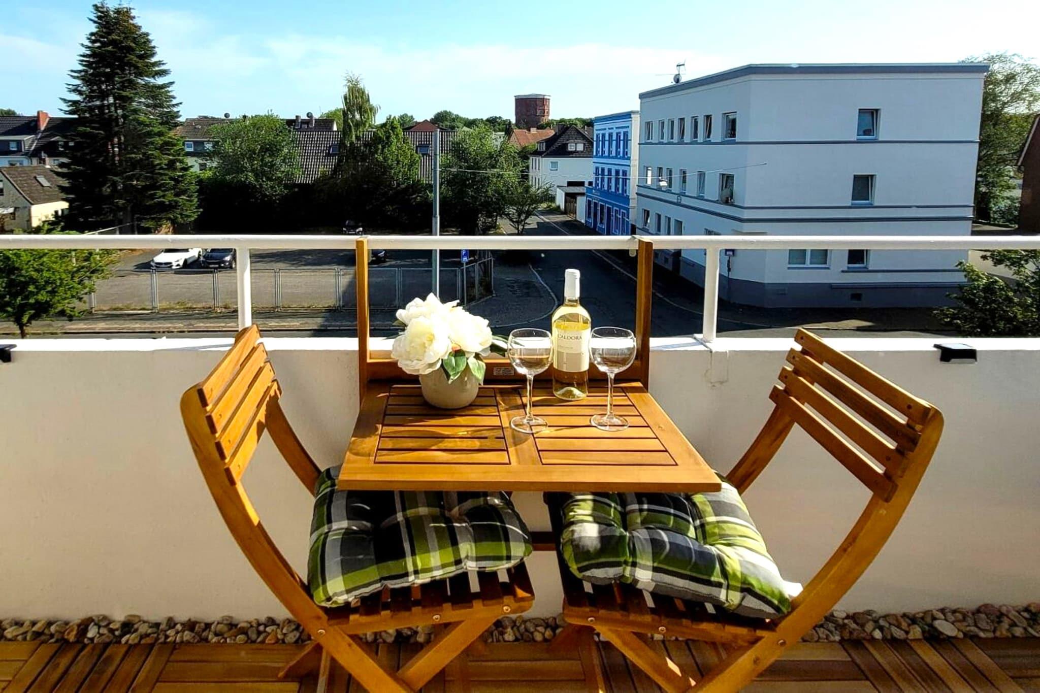 Denne rummelige lejlighed på 2. sal ligger i den pulserende kystby Wilhelmshaven og tilbyder et velafrundet ophold kun 3,1 km fra Nordsøens Südstrand-strand. Ideel til par, små familier eller fjernarbejdere, stuen har en dobbelt sovesofa, tv, spisebord og festspil til hyggelige nætter i. Det fuldt udstyrede køkken inkluderer en kogeplade, ovn, mikroovn, opvaskemaskine, køleskab med fryser, vaskemaskine og mere – perfekt til længere ophold eller selvforplejning. Soveværelset har en king-size seng, tv og opholdsområde, mens badeværelset byder på badekar med bruser, toilet, håndvask og hårtørrer. Yderligere bekvemmeligheder omfatter en balkon, garage, parkering og opbevaring med strygefaciliteter. Med tennisbaner, ridning og søstrande i nærheden, plus butikker, restauranter og caféer alle inden for gåafstand, blander denne beliggenhed bykomfort med udendørs charme. Udforsk Wilhelmshavens maritime arv, slentre Jade Bay, eller slap af i Kurpark - denne lejlighed sætter det hele inden for rækkevidde.