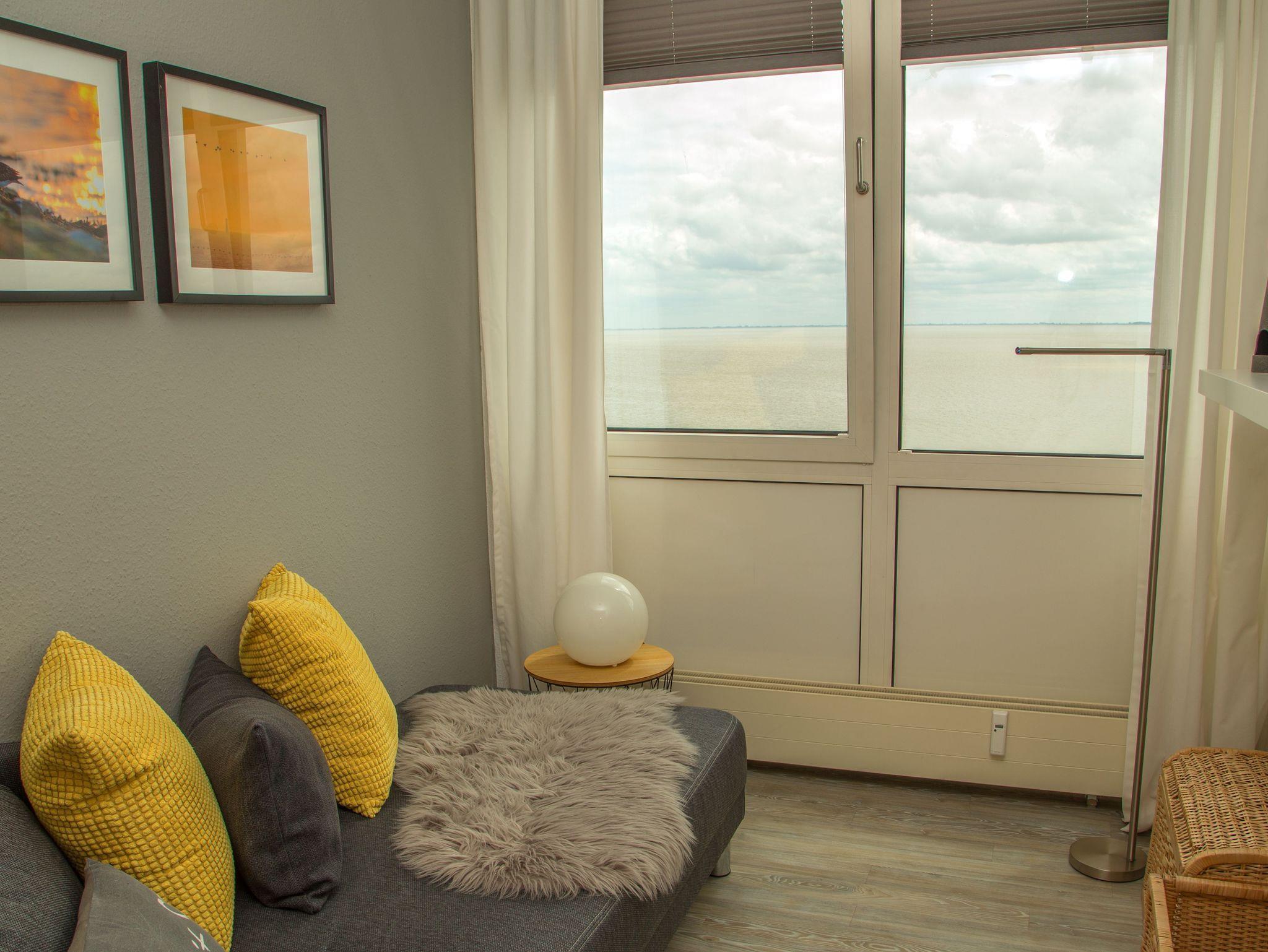 Genießen Sie vom Wohnzimmer aus den weiten Blick über den Jadebusen.